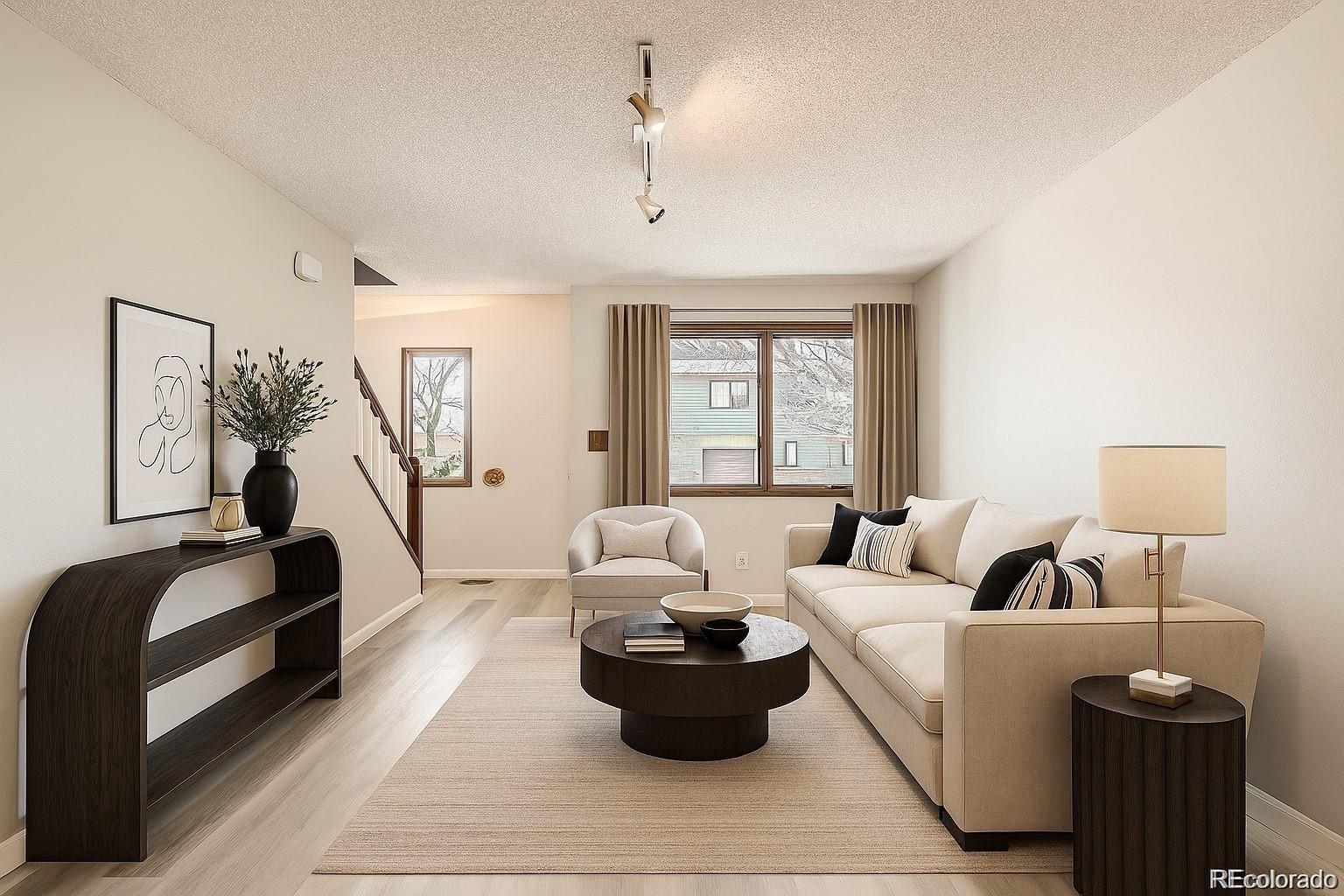 Move in ready! New flooring on main level with fresh paint throughout. The property features 2 spacious bedrooms upstairs along with 2 bathrooms. Laundry and half bath on main level. Basement is perfect space for game room, office and more! If you like the outdoors this is for you! Enjoy walks around the Cottonwood Lake Loop at end of complex or across the street at Kendrick Lake Park! All appliances included! Location has easy access to Hampden/285, C-470, 6th Ave, shopping and so much more! Motivated sellers, come see today!