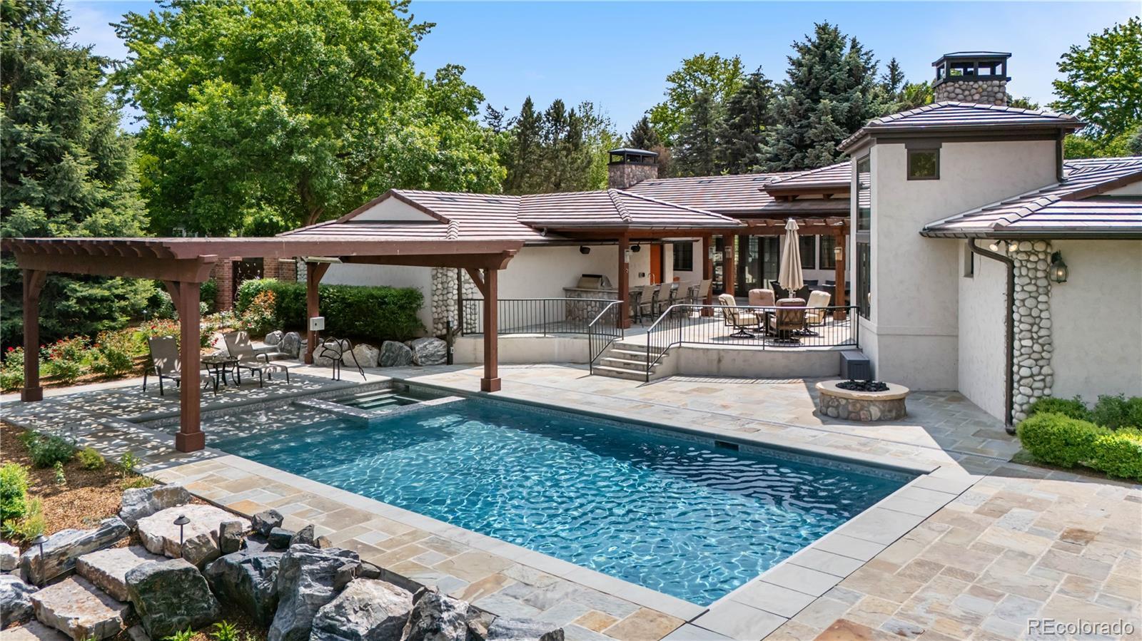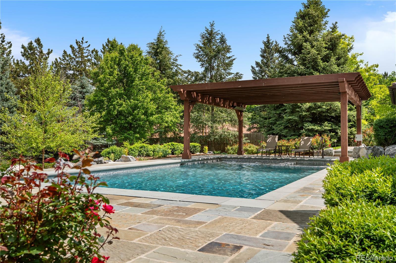 Welcome to 2305 Cherryville Road, a completely reimagined home sitting on one of the most stunning lots in the metro area. This home has undergone extensive renovation, including the construction of a great room with 13-foot vaulted tongue and groove ceilings, fully remodeled kitchen anchored by a Wolf range, Sub-Zero refrigerator, and elegant granite countertops. But the best part may be the spectacular, million-dollar backyard that you need to see to believe; a resort-like pool/hot tub area, full multi-level patio with outdoor kitchen, and meticulous landscaping that includes fruit trees, two water features, seemingly endless flower beds, and complete and total privacy. The great room and open kitchen flow seamlessly to the outdoor living spaces—where French doors open to an entertainer’s paradise. Adjacent to the kitchen are the formal dining area and a cozy den with a gas fireplace, offering the ideal layout for both intimate evenings and larger gatherings. The home features four spacious bedrooms and four baths, along with a dedicated home office designed for privacy and inspiration. The primary suite is a standout, with hardwood floors, fireplace, a custom-built walk-in closet, and a spa-inspired bath. An adjoining office space overlooks the lush backyard and pool, while more French doors provide direct access to the patio,creating a private retreat within your own home. The finished lower level adds flexibility and space, featuring a generous family room and a versatile bonus area perfect for a media room, home gym, or game room. Outside, the grounds are nothing short of exceptional. Mature trees provide shade and seclusion and tranquil water features complement the picturesque pool and patio. It’s a backyard sanctuary designed for both relaxation and entertaining—beautifully private, yet effortlessly grand. Minutes from the Highline Canal Trail and shopping. 2305 Cherryville Road offers the kind of living that simply can’t be replicated.