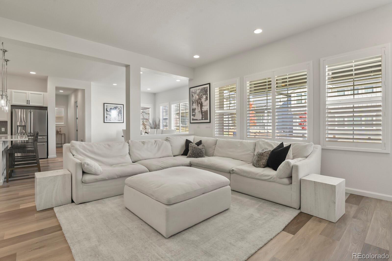 Welcome to your dream home. Located on serene cul-de-sac. Where luxury meets livability in Castle Rock’s coveted Maranta! This stunning 4- bedroom, 4- bathroom offers 3,440 finished sq ft plus a 1598 sq ft unfinished basement with 10 ft ceilings ready for your personal touch. Thoughtfully designed and move in ready, every upgrade is already done, lush professional landscaping, fenced in back yard, plantation shutters throughout, whole-home water filtration and softener system, wisper-quiet garage doors, a charming farmhouse sink, and double ovens in the chef’s kitchen. Soaring ceilings, light and bright open floor plan that connects to great room, with walls of windows. Quartz-adorned kitchen, and covered patio, perfect for seamless entertaining or quiet evenings at home. The spa-inspired primary suit offers a peaceful retreat, while the glass-door flex room and spacious secondary bedrooms with walk-in closets provide versatility for today’s lifestyle. Enjoy breathtaking sunsets, resort-style community amenities, and access to top-rated Douglas County schools. This exceptional Maranta home blends modern luxury, comfort, and convenience, all without the wait of new construction. Welcome Home!