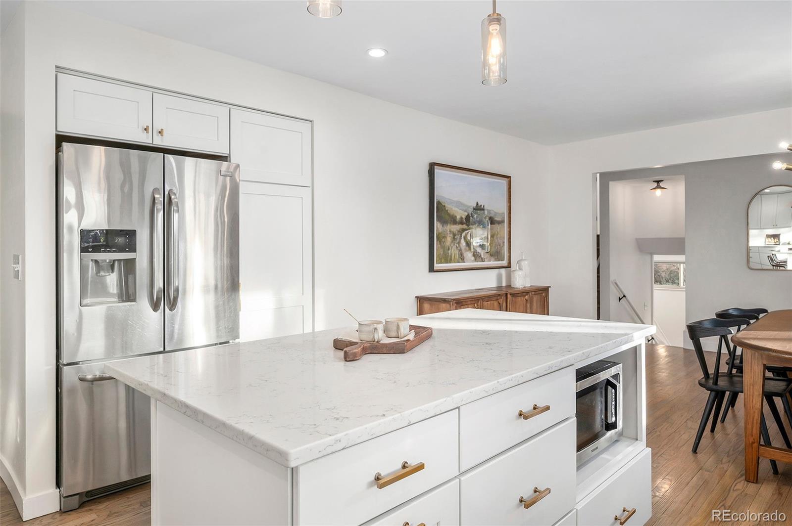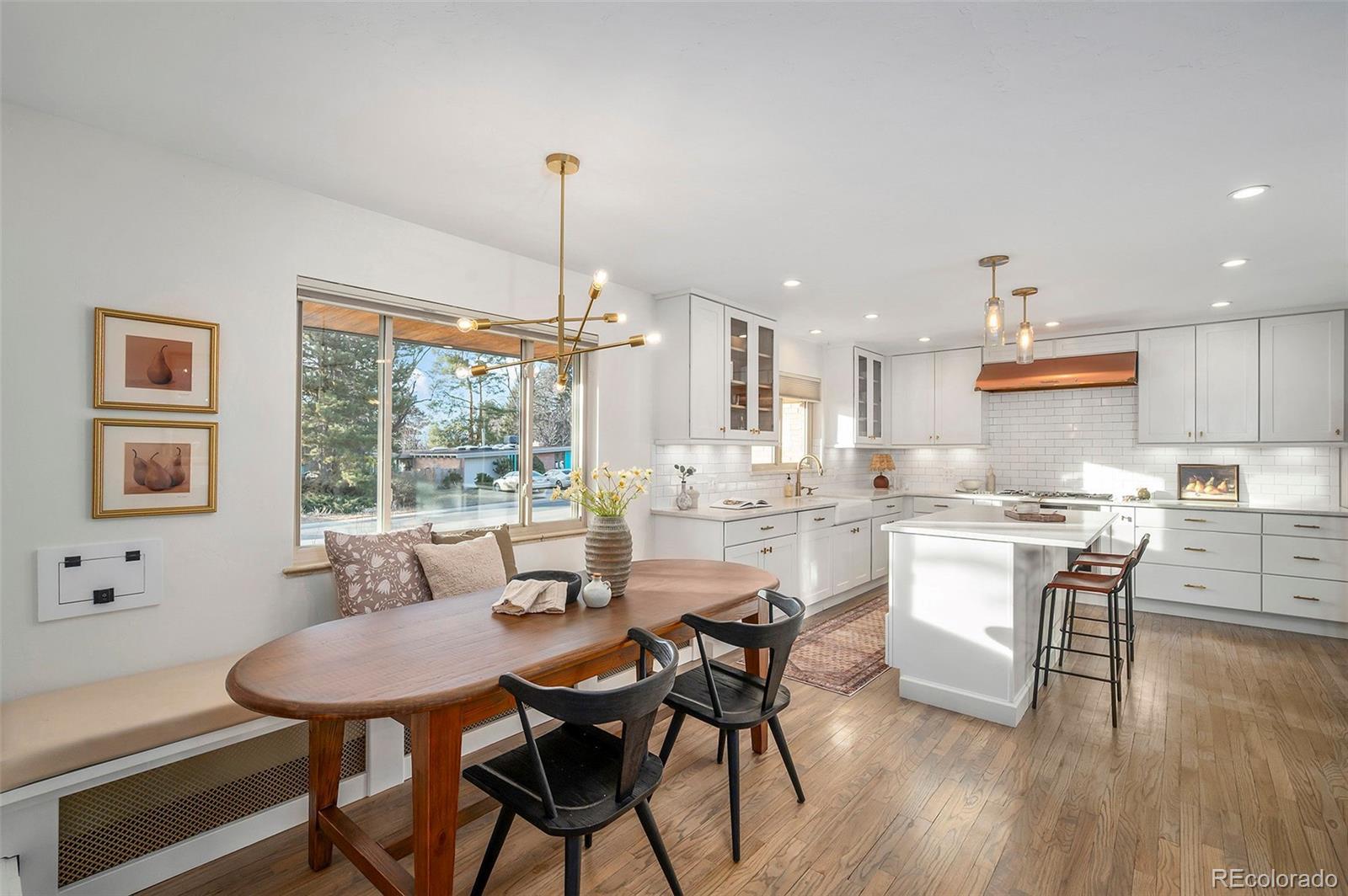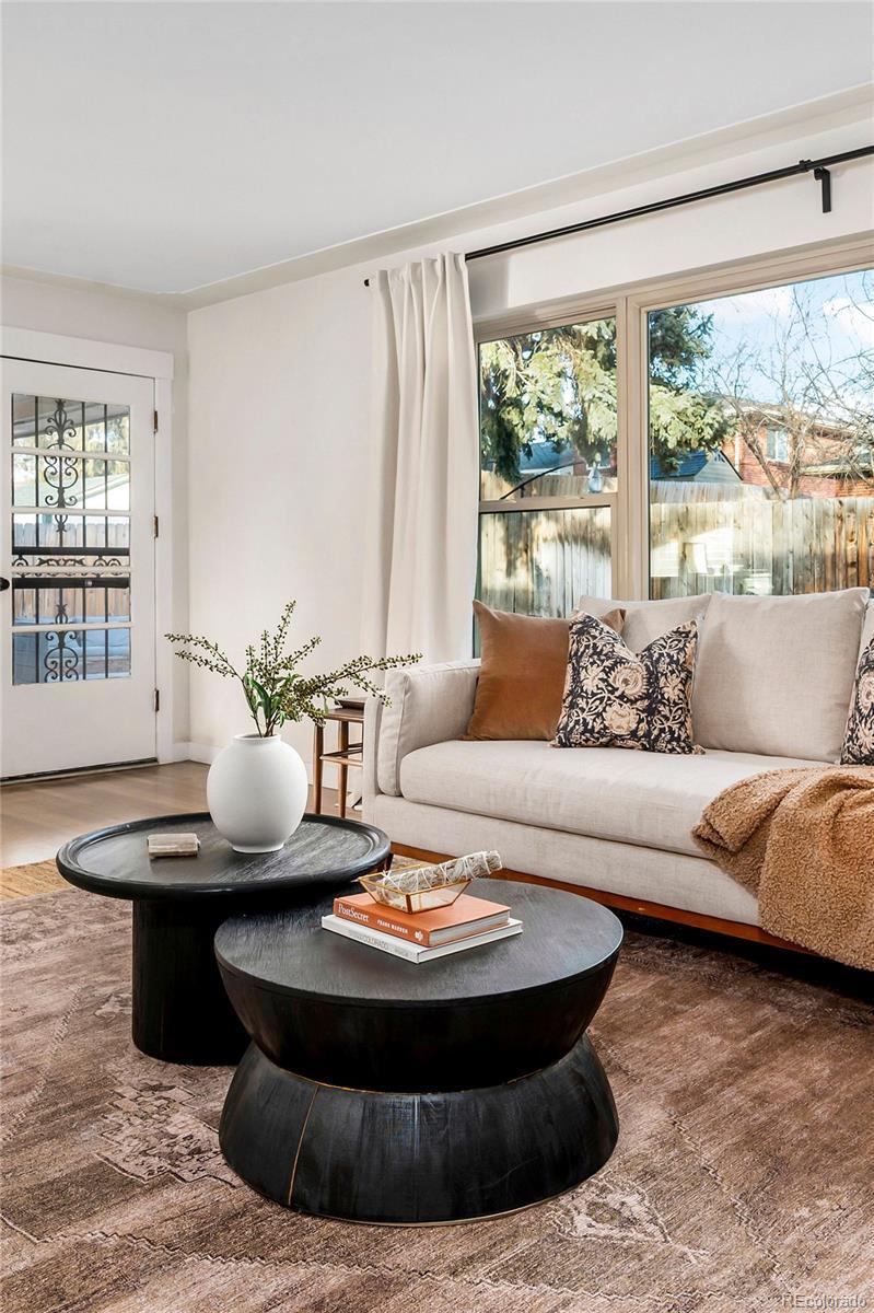On a spacious 7,800 SF lot feeding into award-winning Slavens K–8, this fully remodeled home offers just under 2,400 SF of thoughtful, design-forward living. Hardwood floors, timeless finishes, and preserved architectural character define the well-designed interior. The main level centers around a beautifully remodeled kitchen featuring a large island, the original copper hood, and a picture-perfect dining area, all flowing into a spacious family room anchored by a striking flagstone fireplace. A mudroom/laundry room and convenient powder room connects to the 2-car garage — complete with extensive storage — for everyday convenience, while direct access leads to the private, tree-filled backyard, ideal for entertaining and enjoying Colorado’s outdoor lifestyle. Up a short flight of stairs are two spacious bedrooms and a large remodeled bath with double vanity, while the home’s bathrooms showcase elegant marble and quartz finishes throughout. The garden-level lower floor is filled with natural light and includes an additional living area with a comfortable TV/lounge space featuring custom built-ins and beautiful shiplap detailing, along with a bedroom and bath, offering excellent flexibility for a variety of uses. Well maintained and move-in ready, this home blends architectural authenticity with comfortable, functional living in a premier location — minutes from Platt Park, Harvard Gulch, and directly across from the iconic Arapahoe Acres mid-century modern neighborhood.