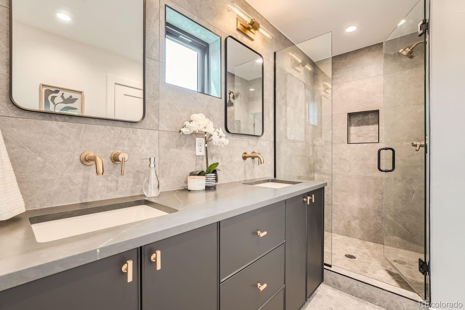 SINGLE FAMILY HOME WITH LOCKOFF BASEMENT IN SUNNYSIDE!! This beautifully crafted residence offers a perfect blend of modern amenities and classic charm. With 3 bedrooms, 4 bathrooms, an office, and a stunning rooftop deck, this property is designed to provide comfort and style. Exterior entrance to the basement has a second living room with bedroom and bath perfect to host a guest and a possibility of a lock off unit at the top of the stairs for the ability to rent the basement out for extra income. The kitchen is equipped with high-end appliances, quartz countertops, and ample storage space. Next to the kitchen is an open concept living area that creates a seamless flow throughout the main level. On the second level the primary bedroom is accompanied with an ensuite bathroom, a Juliet Balcony and walk in closet. The second bedroom is also paired with an en suite bathroom. An office/flex space on the 3rd floor provides great natural light and a roof deck with unobstructed views of downtown. The backyard patio has a gas hookup for a bbq grill or fireplace with an added space for yard activities. Fantastic location and a fantastic home!
