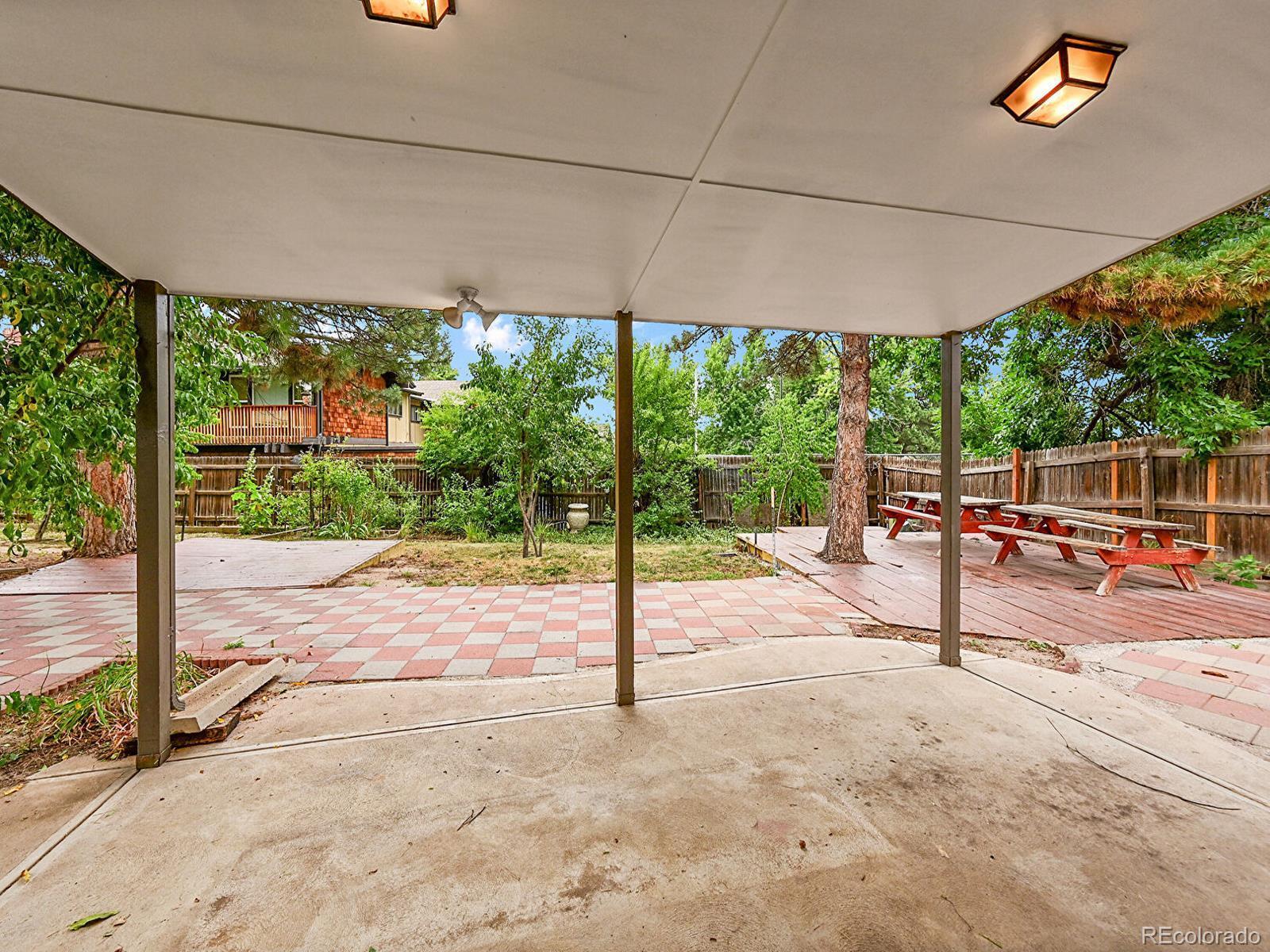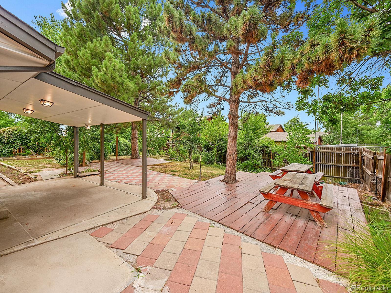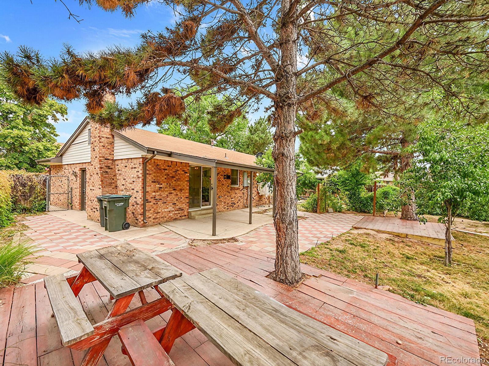 Welcome to 14231 E. Wyoming Place, a classic ranch with expansive outdoor entertaining space! This 3-bed, 2-bath home offers a functional layout, mature landscaping, and space to grow both inside and out. Set on a spacious .2-acre corner lot in a quiet cul-de-sac, the front boasts a brick exterior, mature trees and shrubbery, and a covered porch ideal for morning coffee. Step inside to a light-filled living room that connects seamlessly to the dining area for effortless hosting. The adjacent kitchen features a picturesque window overlooking the lush backyard and ample counter space for cooking intricate meals, while connecting to the open family room for casual conversation or lively entertaining. A standout original wood-burning fireplace in a brick surround and substantial built-in bookcases add warmth to the cozy family room, where sliding patio doors open to a generous backyard made for functional indoor-outdoor living. The primary suite includes a walk-in closet and a bright three-quarter en suite bath, while two additional bedrooms overlook the backyard and share a full hall bath. Downstairs, a finished flex space offers added versatility for an office, home gym, or non-conforming fourth bedroom, plus a large unfinished area with a built-in workbench for projects or storage. Your go-to spot for summer get-togethers, the backyard boasts a covered patio, extended deck, and a lush setting with mature trees and garden beds for the perfect outdoor retreat. Life here comes with perks, with tennis courts, playgrounds, a pool, and Village Green Park just steps away! Even better, shopping, dining, golf, Cherry Creek State Park, and easy access to DIA and Downtown Denver are all close by.