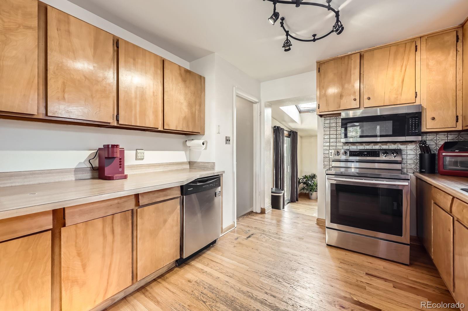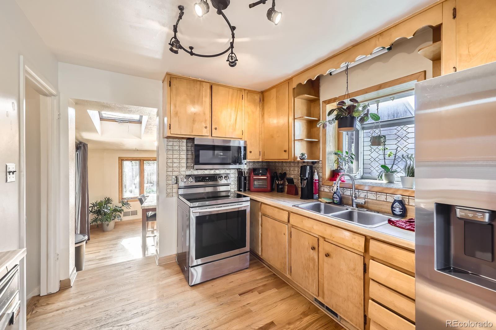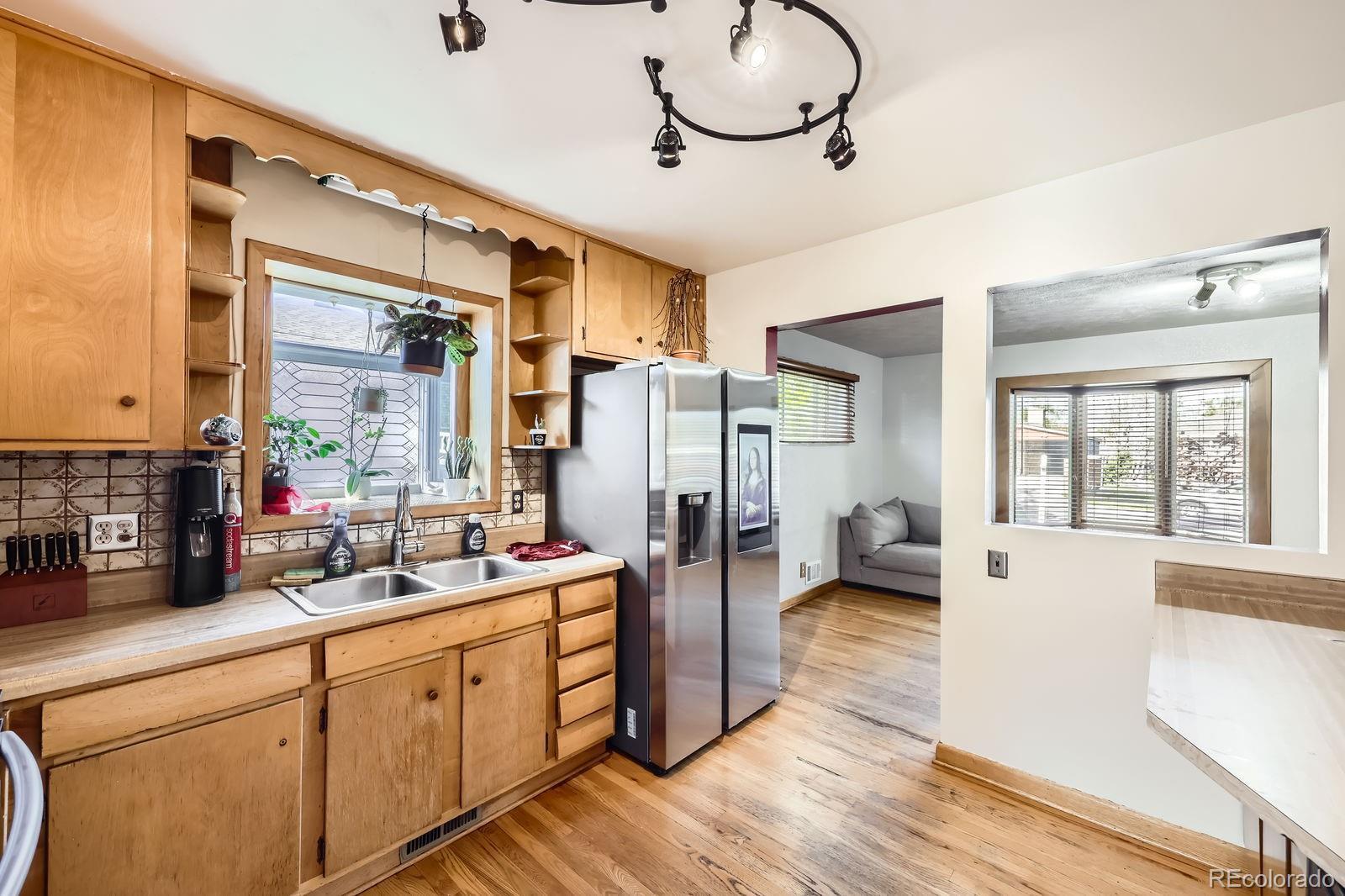 Welcome to this bright and inviting 3 bedroom, 2 bath brick ranch offering comfort and convenience in a highly accessible location. This home features an oversized two car garage with ample storage, a long driveway with plenty of parking, and no HOA restrictions. On the main level, enjoy the natural light pouring in through skylights and beautiful bay windows. The galley kitchen offers generous counter space, abundant cabinetry, and a convenient passthrough to the living room for easy entertaining and open flow. A formal dining room and attached enclosed sunroom provide flexible space for hosting or relaxing year-round. The primary suite offers privacy and comfort with multiple oversized closets and a bonus room that can be used as a home office, hobby space, or formal sitting area perfect for creating a personalized sanctuary that fits your lifestyle. Head downstairs to the finished basement, which expands your living space with two additional bedrooms, a bathroom, a cozy living area, and a dedicated laundry space. Enjoy outdoor living in the huge, low maintenance, fully fenced yard, with privacy for entertaining or quiet evenings. Additional highlights include a new furnace, a newer roof, and a fantastic commuter friendly location with quick access to multiple major highways perfect for getting to downtown Denver, Boulder, or anywhere in between. Don’t miss out on this opportunity schedule a showing today!