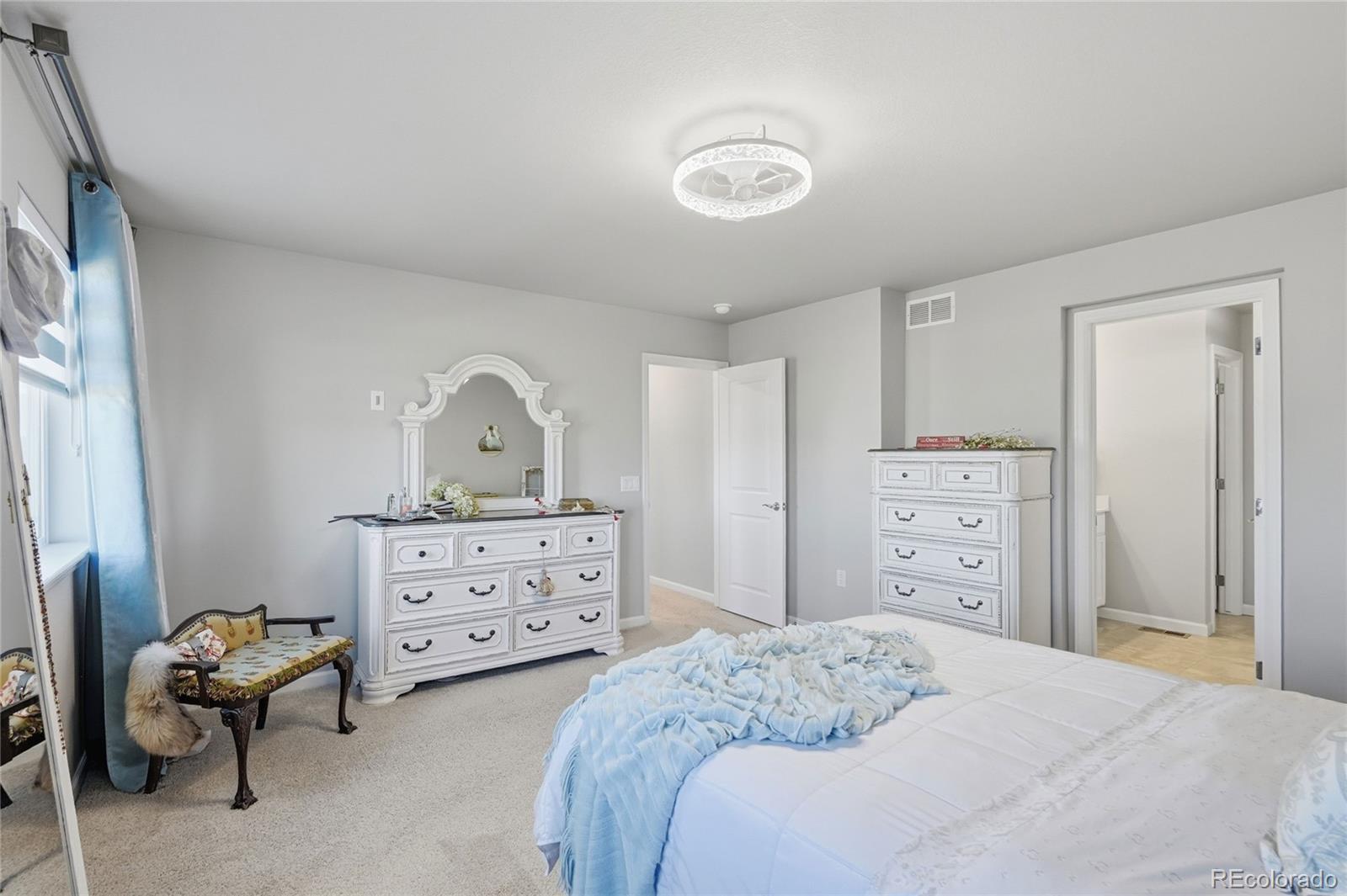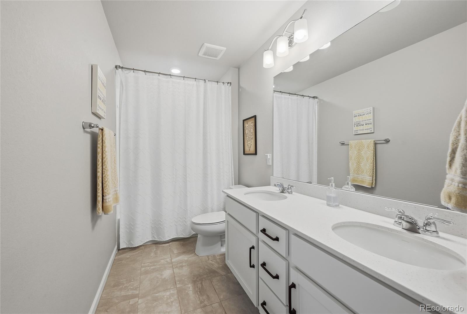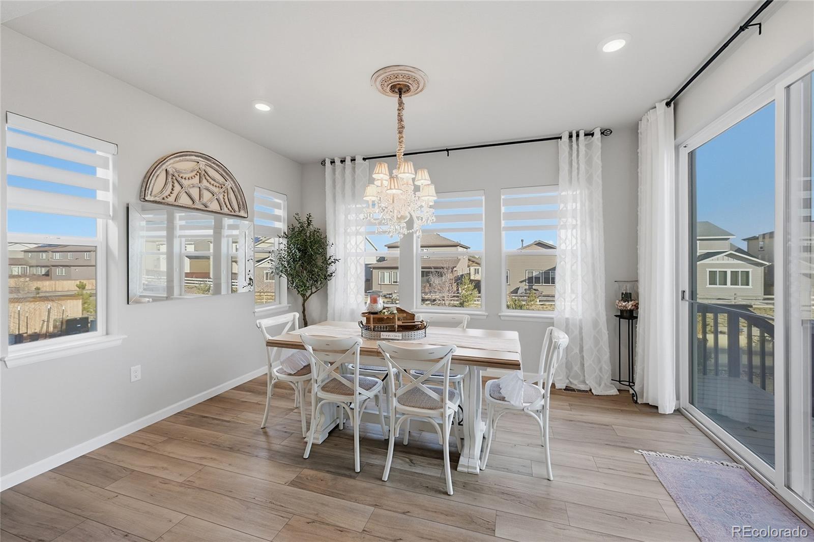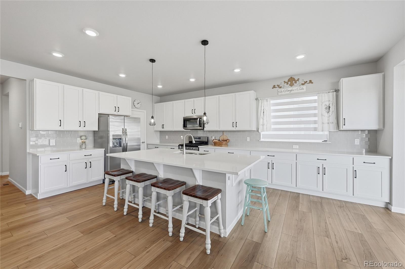 Welcome home to this beautifully upgraded Century Communities residence in the highly desirable Enclave at Pine Grove in Parker. From the moment you step onto the welcoming covered patio, you’ll notice the home’s stylish, contemporary design and thoughtful attention to detail throughout. This gorgeous 4-bed, 3-bath home offers approximately 2,375 sq ft of well-planned living space with premium upgrades at every turn. The heart of the home is the stunning chef’s kitchen featuring an oversized quartz island, tile backsplash, abundant cabinetry, stainless steel appliances.The open-concept layout seamlessly connects the kitchen, dining, and living areas, creating a warm and inviting space ideal for gatherings. The family room is highlighted by a beautiful butcher-block mantle over a modern gas fireplace, complemented by upgraded waterproof LVT flooring, upgraded soft gray color paint pallet and stylish silhouette type window shades throughout the home. A main-level bedroom or office and full bath offer flexible living options for guests or remote work. Upstairs, you’ll find a spacious primary suite with a luxurious ensuite bath featuring a walk-in shower, dual-sink vanity, tile flooring, and a lg walk-in closet with custom shoe storage. The upper level also includes two additional bedrooms, a full bath, an oversized loft ideal for a media room, game area, or home office, and a convenient laundry room with washer and dryer included. The lower level offers a livable, insulated, and painted basement space with LVT flooring throughout — perfect for entertaining, a workout area, or additional living space. Step outside to enjoy a generously sized backyard with a great patio for entertaining, upgraded front and back landscaping, and a serene greenbelt backdrop that gives the feel of a private retreat. This move-in-ready home combines comfort, style, and location. Why buy a new construction home when you can have this 2 yr new home with all the upgrades? Truly a must-see!