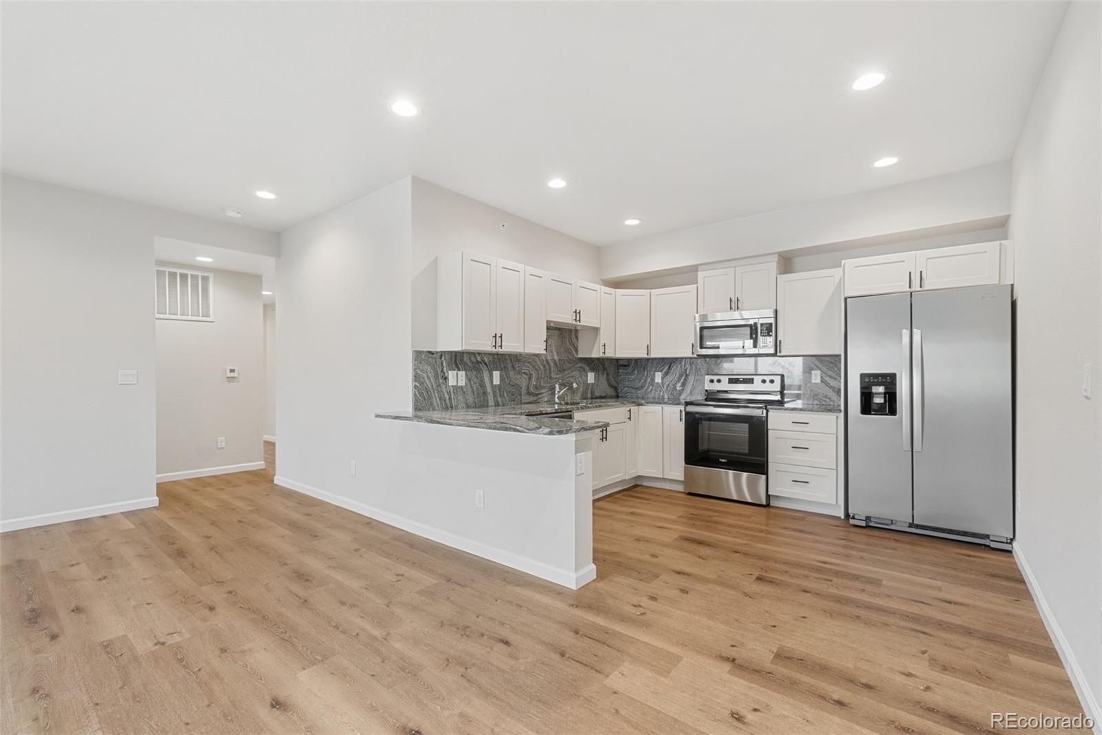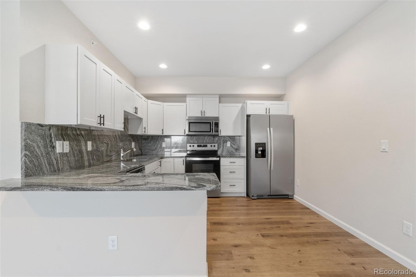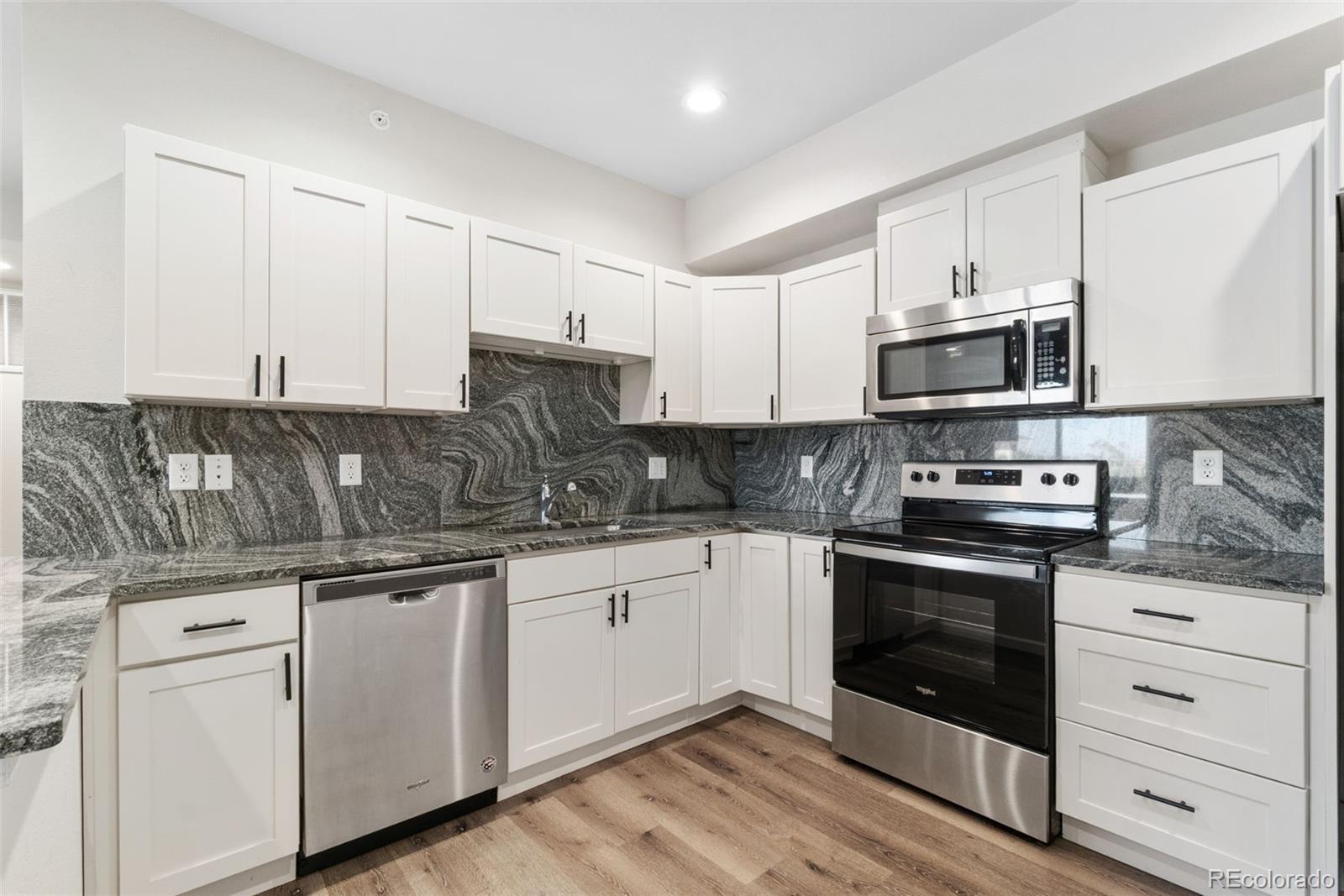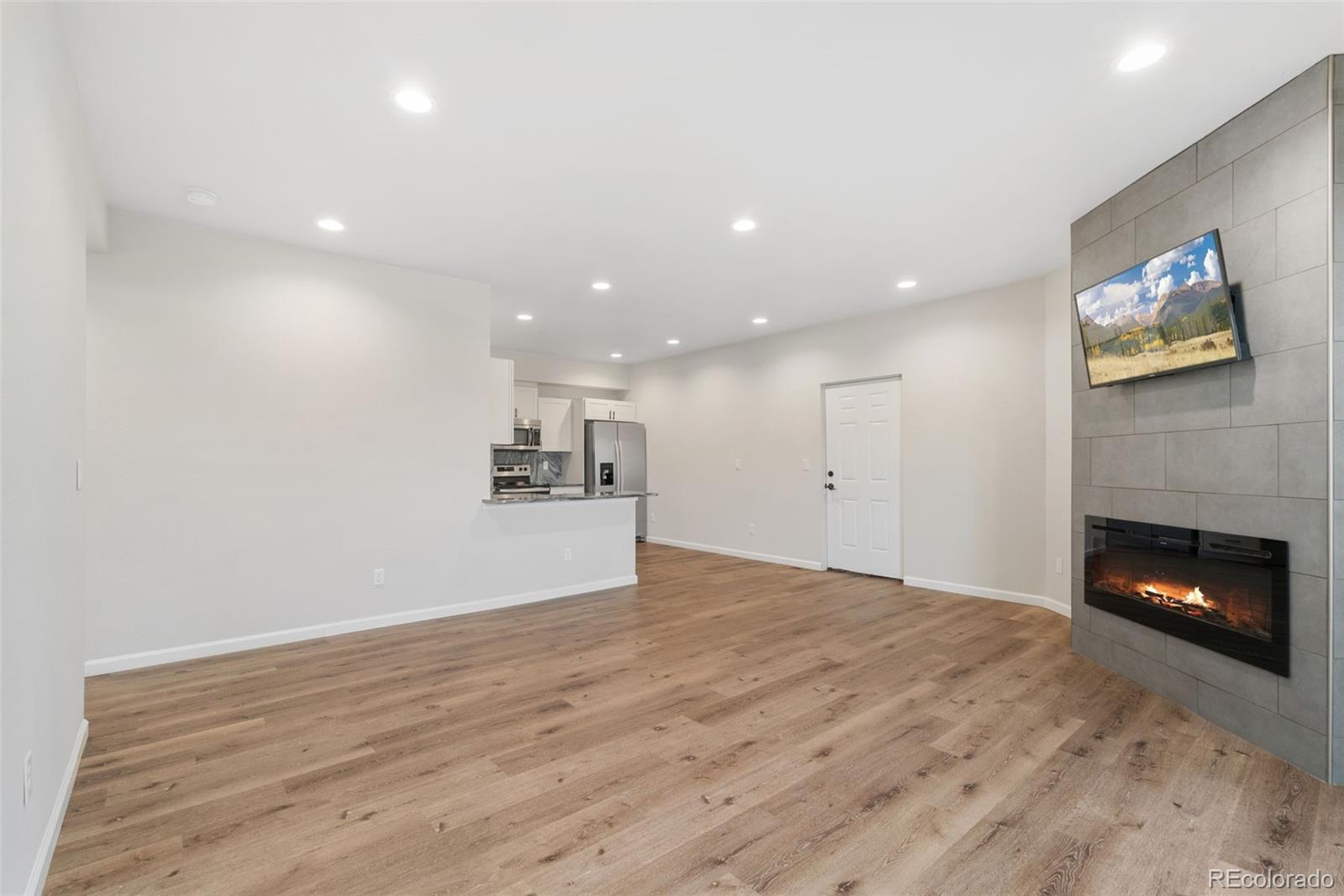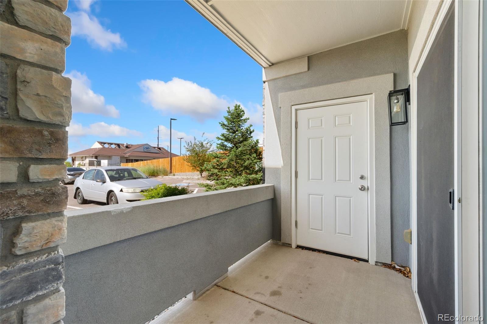Settle into easy living with this spacious main floor condo, offering the best of both comfort and accessibility with secured, indoor entry and an ideal layout that blends functionality with style. This 3-bed, 2-bath unit offers a lock-and-leave lifestyle that is perfect for anyone seeking a hassle-free living environment. Step inside to an open-concept floor plan featuring durable, stylish LVP flooring that connects the living, dining, and kitchen areas into one inviting, easy-to-use space. The living room is anchored by a stylish fireplace, perfect for relaxing or adding a touch of ambiance to your quiet evenings. The modern kitchen makes both cooking and entertaining a breeze, featuring quartz countertops, stainless steel appliances, and plenty of workspace for prepping your favorite meals. All bedrooms are comfortably carpeted to keep things soft underfoot. The primary suite includes an ensuite bathroom and a walk-in closet, providing ample storage space and convenience. Enjoy the fresh air from your covered patio, complete with a storage closet to keep tools, gear, or seasonal decor neatly tucked away. The laundry area also offers plenty of extra room for storage, making it easy to stay organized and clutter-free. Parking is ample, ensuring that residents and guests always have a place to park. This feature. Centrally located near Denver, DIA, and the Metro area, this spot makes commuting a breeze while keeping you close to dining, shopping, and everyday essentials.