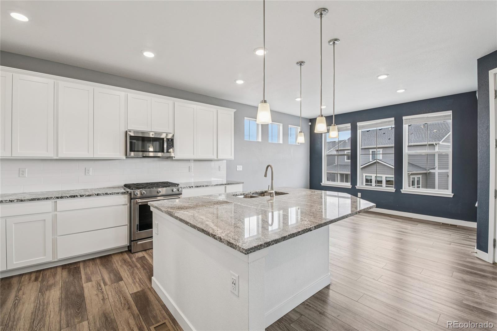 Discover the perfect blend of luxury, space, and community in this beautifully upgraded 4-bedroom, 3-bathroom ranch in sought-after Barefoot Lakes. Situated on a professionally landscaped 9,736 sq ft lot, this home showcases modern finishes, an open-concept layout, and exceptional indoor-outdoor living. The bright main level features a spacious chef’s kitchen with quartz countertops, stainless steel appliances, a large pantry, breakfast nook, and oversized eat-in island—ideal for everyday living and entertaining. A generous dining area and mudroom off the garage add both style and function. Step outside to enjoy the covered deck, pergola, and expansive concrete patio—perfect for gatherings or relaxing evenings The private primary suite offers a large walk-in closet, dual vanities, and convenient direct access to the laundry room. Three additional bedrooms and two full baths provide flexible space for guests, family, or a home office. The low-maintenance backyard is spacious and full of potential for play, pets, or gardening. Enjoy all that Barefoot Lakes has to offer, including miles of scenic trails, over 100 acres of water for paddle-boarding and fishing, and The Cove clubhouse featuring a resort-style pool, fitness center, courts, and community spaces. Colorado living at its finest—this one is not to be missed!