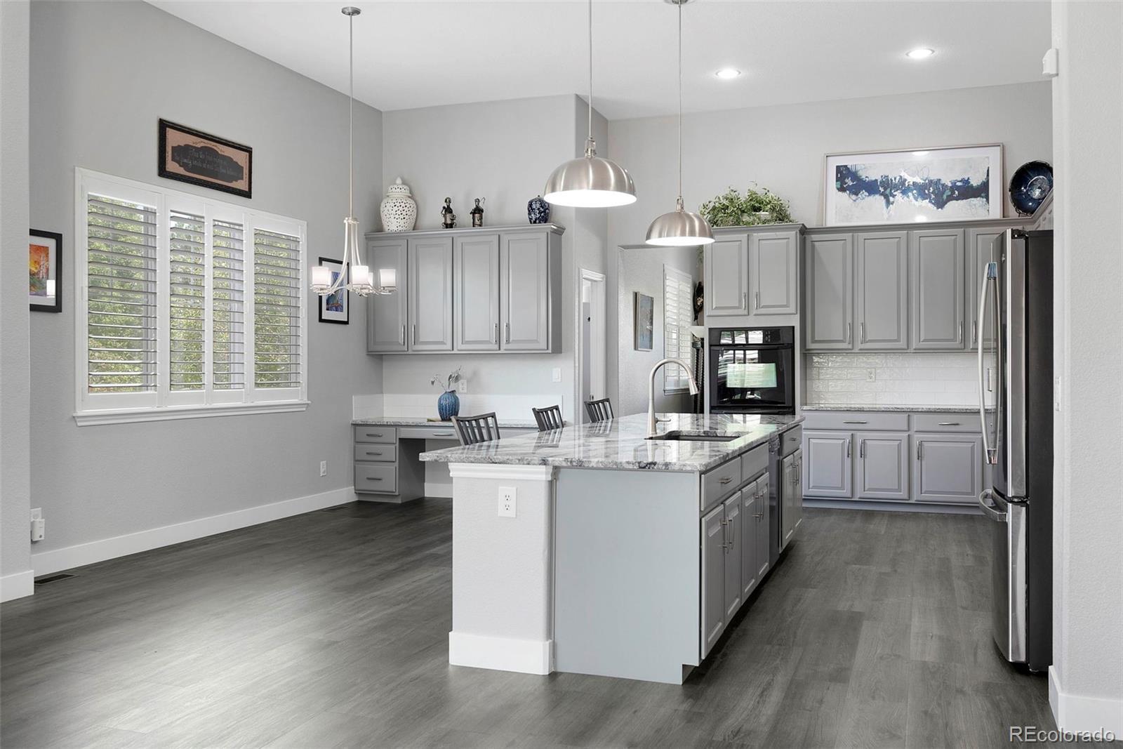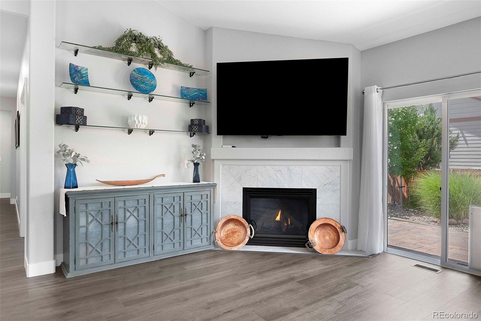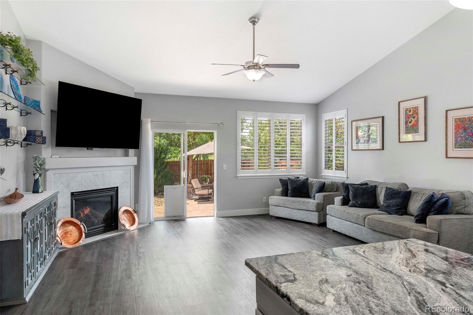 Welcome to your dream home nestled in the highly desirable Marshall Lake community. This fully updated ranch-style home offers the perfect combination of modern design, functional living, and outdoor lifestyle, just steps from trails, hiking paths, open space, and the lake. Every inch of this home has been thoughtfully upgraded with contemporary finishes. The bright, open-concept layout is filled with natural light and features luxury vinyl flooring, plantation shutters, and a cozy gas fireplace. The newly remodeled kitchen is a showstopper—complete with modern cabinetry, designer lighting, sleek countertops, and ample space for entertaining or everyday living. The main level offers three spacious bedrooms and two beautifully updated bathrooms. The primary suite is a serene retreat, boasting a freestanding soaking tub, double vanities, and a spacious walk-in closet. Head downstairs to discover a fully finished basement (completed in 2020) with incredible flexibility. Enjoy a second fireplace, full kitchenette, stylish ¾ bath, and expansive space for a home theater, gym, multi-generational suite, or game room. Step outside to your own private backyard oasis—complete with a hot tub, mature trees for privacy, and room to relax or entertain under the stars. The exterior was freshly painted in June 2025, offering a polished, move-in ready look. An oversized garage with epoxy-coated floors, a 9’ tall door, and soaring ceilings is perfect for a car lift, workshop, or extra storage. Located just minutes from shopping, dining, and top commuter routes, this home offers both peaceful living and convenience. Don’t miss this rare opportunity to own a stylishly renovated ranch in one of Thornton’s most scenic neighborhoods.
