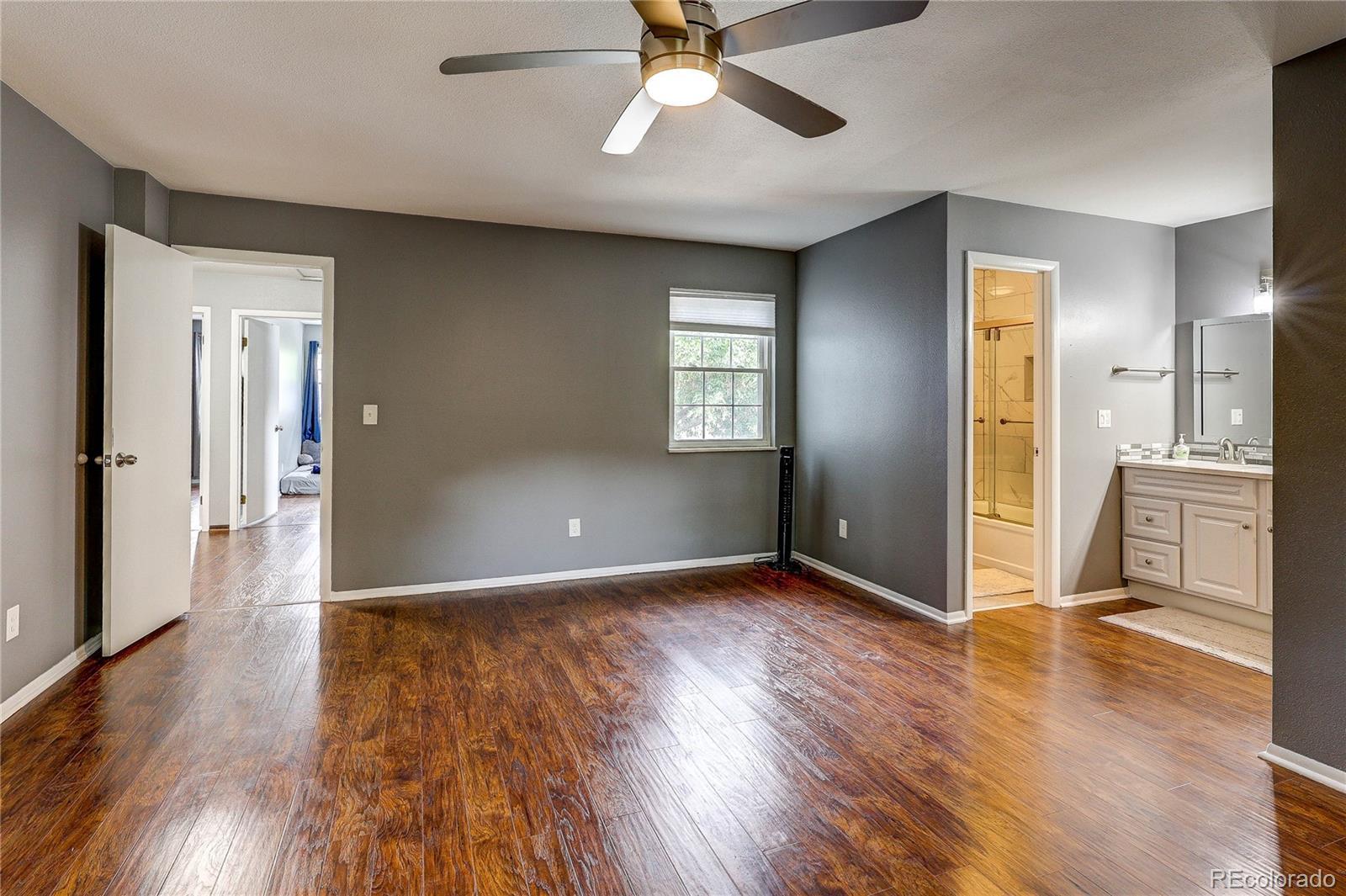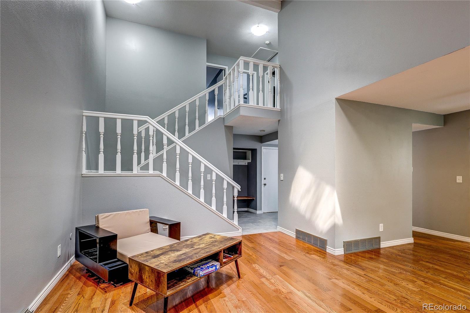 Exceptional value, spacious living, and move-in ready for the holidays and 2026. Heather Ridge South community is a wonderful tree filled neighborhood with an exceptional low-cost hi-value HOA. A stylish and open-flowing vaulted ceiling townhome style condo in a large 2-story design. Features 3-bdrms, 4 baths, a full basement and an oversized 2-car attached garage. With 2,374 sqft, you will have room to grow, live, and entertain. The heart of this home is the open updated kitchen with large service island that opens to the dining and living rooms – it flows so nicely. New quartz counter tops, appliances, and rich wood laminate flooring makes for easy but stylish living. All newer windows and sliders. Newer mechanicals checked and certified. The second level overlooks the main level living room/fireplace as well as it features the largest primary bedroom to be found for this price range -- and above. All bathrooms updated-remodeled, especially the primary bedroom with 2-sink vanity, private shower/tub and a large walk-in closet. Cherry Creek schools and an 18-hole community golf course are two of many reasons to call this home. HOA’s fees lowest for value in surrounding areas, no deferred maintenance, and almost $900,000 in funds/Reserves. Nearby food stores (Costco, Whole Foods, Kings), restaurants, parks and recreation, and Interstate access to DIA and DTC. HRS is part of the Heather Ridge Metro District that owns and operates the public golf course and restaurant facilities. Visit its website to read Metro Matters magazine, a monthly publication for all 10 HOAs news and metro district.