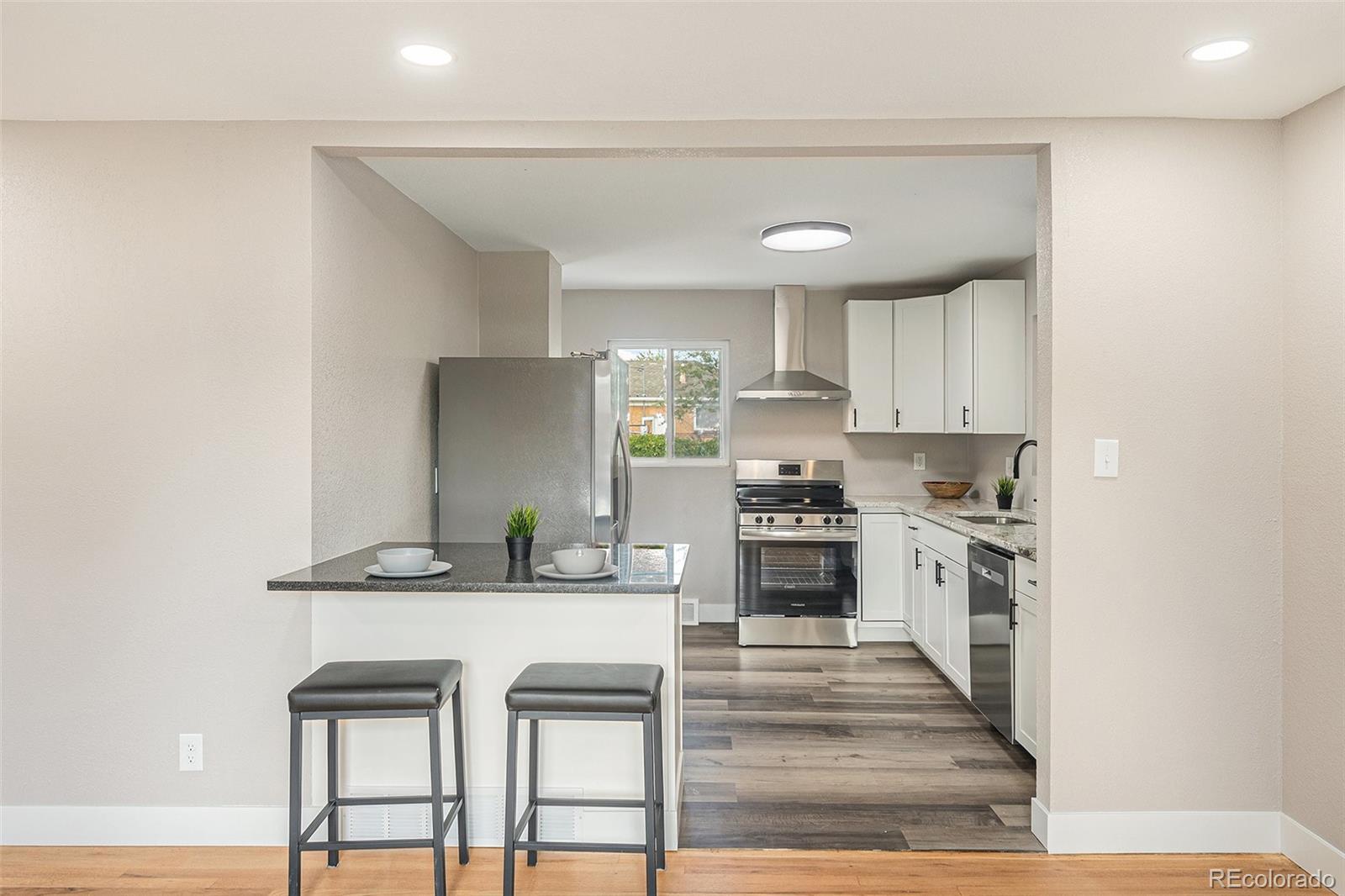 This beautifully remodeled brick ranch shines with updates inside and out. From the freshly landscaped yard with new sod and rock to the newly poured concrete patio and spacious backyard, this home is designed for gatherings, play, and relaxation. Step inside to a stunning new kitchen featuring all-new cabinetry, granite countertops, an island with seating and storage, and brand-new appliances. Every detail has been refreshed, including new windows, exterior doors, LED lighting, bedroom doors, and fully remodeled bathrooms with new tile, vanities, and hardware. The finished basement adds even more living space with new laminate flooring, a second family room, and two additional bedrooms. Outside, you’ll appreciate the covered carport, large storage shed, and plenty of room for your lifestyle needs. With easy highway access, nearby shopping and dining, and quick access to the light rail, this home makes commuting to Denver or Boulder a breeze—plus, you’re just minutes from the outdoor activities Colorado is known for. Truly move-in ready, this home offers both style and convenience—you won’t be disappointed!