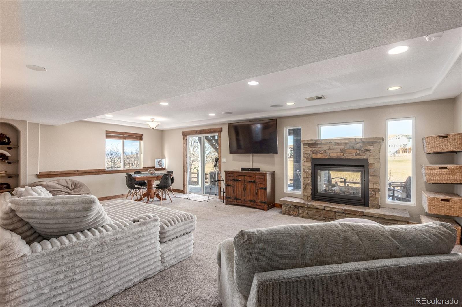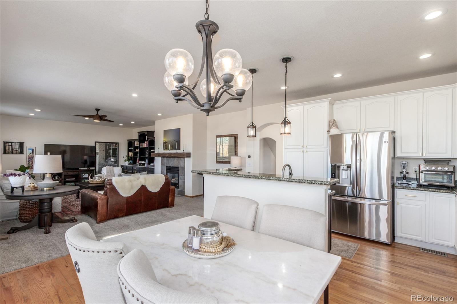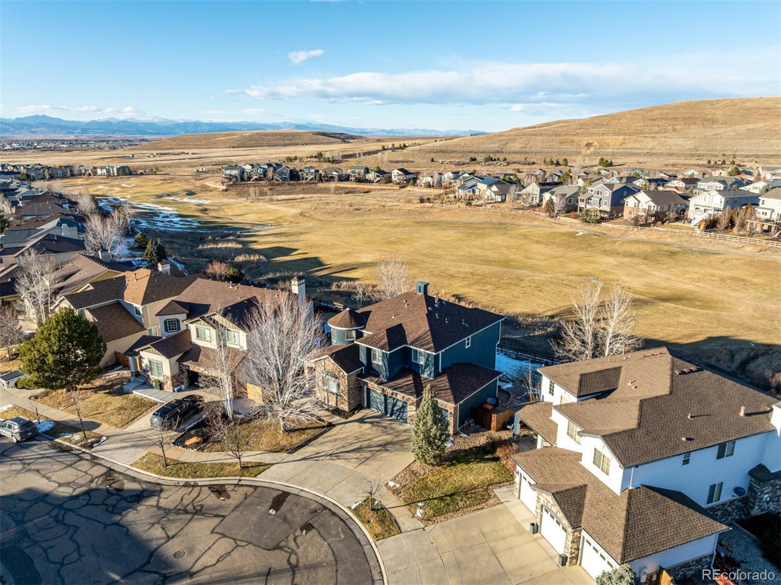 Luxury Golf Course Retreat with Panoramic Views in Vista Ridge! Discover the perfect blend of luxury and comfort in this stunning 6-bedroom, 4-bathroom residence situated on a premier lot overlooking the 15th fairway of the Colorado National Golf Club. From the moment you enter, you are greeted by an open-concept layout featuring soaring vaulted ceilings and gleaming wood floors. The main level is designed for modern living, featuring a dedicated private office—perfect for working from home. The gourmet kitchen is a chef’s dream, anchored by a center island and flowing seamlessly into a light-filled great room with fireplace. Step out from the kitchen onto the deck to enjoy alfresco dining against a backdrop of breathtaking Front Range mountain views. The upper level is thoughtfully designed with four spacious bedrooms, including a private primary retreat with a spa-like 5-piece bath and walk-in closet. The convenience of an upstairs laundry room makes daily living a breeze for the whole family. The exceptional walk-out basement is an entertainer’s dream, boasting a large family room with a cozy two-way fireplace, a full bar, and a versatile den/bedroom. This level also includes a private guest bedroom and a 3/4 bathroom, offering the perfect setup for guests or a teen suite. Step out from the basement to a covered patio and professionally landscaped yard overlooking the golf course. Peace of mind comes standard with a new roof and HVAC system installed in late 2023. Beyond the resort-style amenities of Vista Ridge—including two pools, a fitness center, and tennis courts—you are just minutes from the charm of Historic Downtown Erie. Enjoy a vibrant community lifestyle with award-winning dining like 24 Carrot Bistro, local favorites like The Old Mine, and a year-round calendar of events from the Farmers Market to Boo! on Briggs Street. This home isn’t just a place to live; it’s a lifestyle.