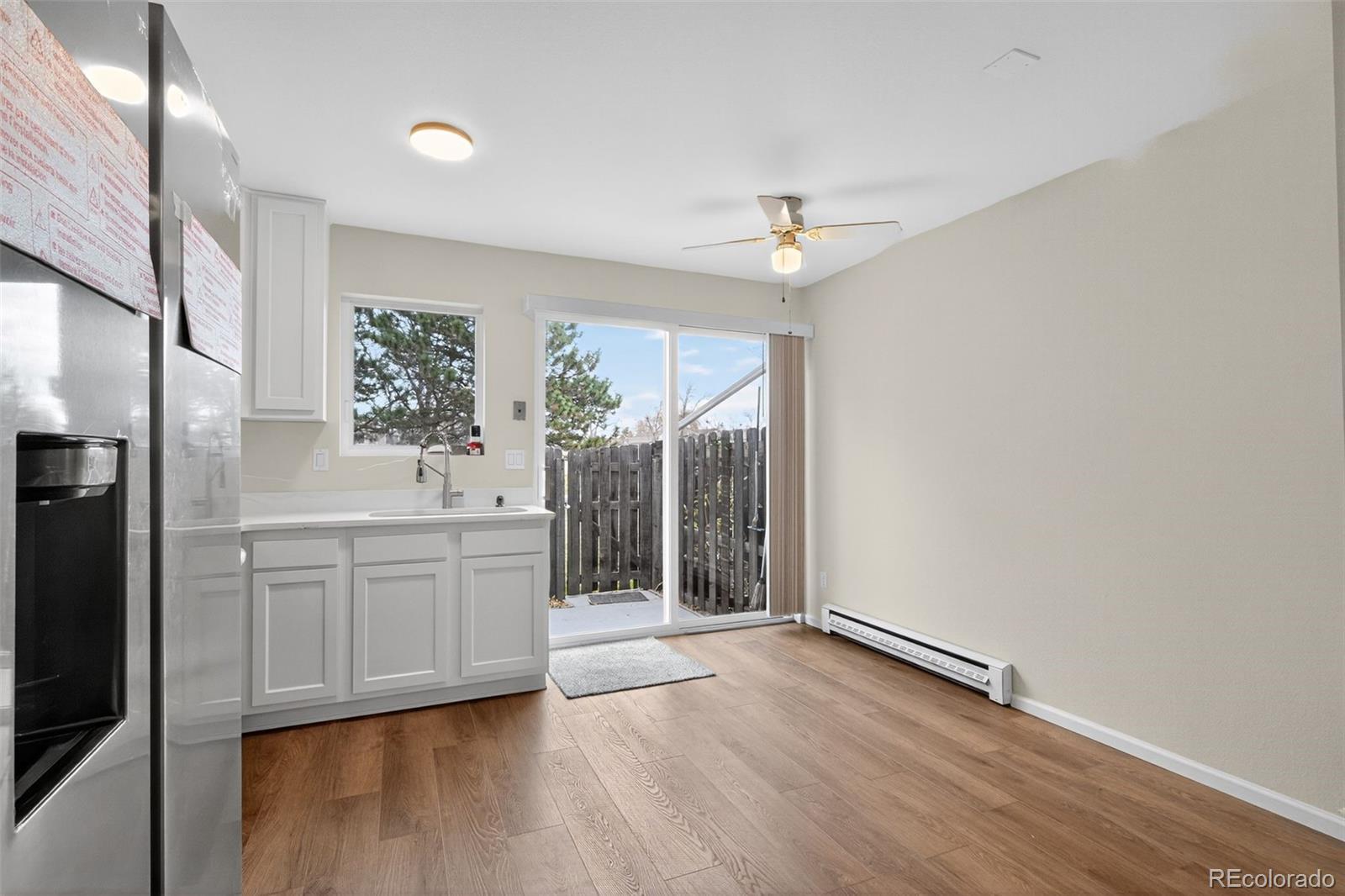Discover this beautifully updated, move-in-ready 2-bedroom, 2-bath townhome in Fort Collins! Step inside to find new LVP flooring and carpet throughout, complemented by a freshly painted interior (Summer 2025) . The open-concept living and dining area is bathed in natural light and features a ceiling fan, creating a warm and inviting atmosphere. The heart of the home, the kitchen, boasts newly installed shaker-style cabinets and a stunning quartz countertop , along with all essential appliances. Everyday tasks are simplified with the in-unit washer and dryer. Upstairs, both bedrooms are spacious and bright, offering comfortable retreats with ceiling fans. The home also features window and sliding door blinds throughout. The updated bathrooms (Summer 2025) offer a modern touch. A fantastic bonus room in the basement provides flexible space for an office, extra bedroom, or whatever suits your needs. Enjoy outdoor living in the enclosed front and back patio areas. Benefit from new attic insulation per code (Summer 2025), updated lighting with modern switches and outlets (Summer 2025), and enhanced security with lockable carport cabinets for extra storage. The exterior has been recently transformed (Fall 2024) with a new roof, durable composite siding, new gutters, a fresh coat of paint, and energy-efficient Milgard V300 Trinsic windows with a transferable warranty. Low-maintenance living is yours with a private entrance and convenient access to nearby shopping, dining, parks, and trails. This townhome is ideal for first-time buyers, investors, or anyone seeking a comfortable and practical residence in a prime location.Don’t miss the opportunity to make this delightful townhome your next home!