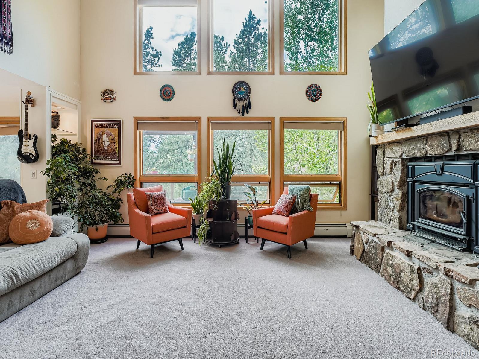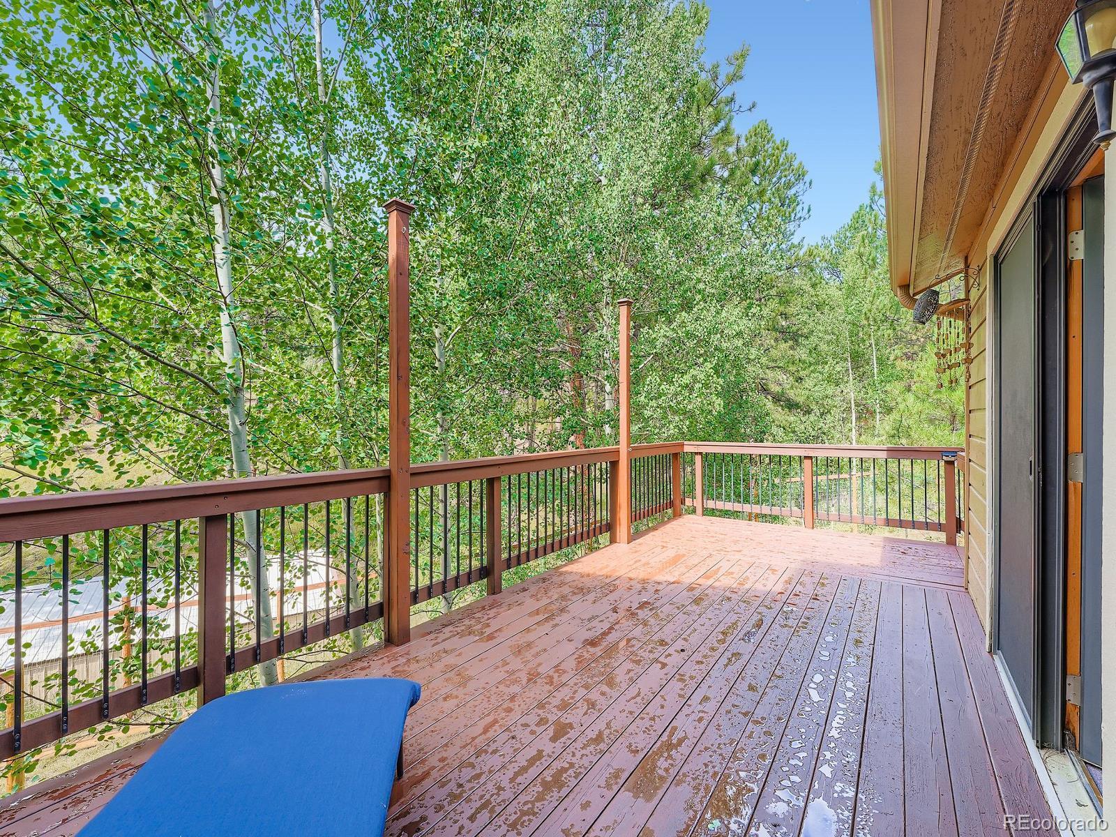 A Storybook Haven in Upper Bear Creek on 2.5 Acres Bring all your toys, there’s room for everything here. This mountain home is tucked away in the heart of Upper Bear Creek, where sunlight pours through tall aspens and the air smells of pine and adventure, sits a home that has been waiting for you. It’s a place where weekends start with coffee on a sunlit deck and end under a blanket of stars, far from HOA rules and city noise, yet just a short drive to town. Your journey begins on the long lower driveway, where your 30-foot RV fits perfectly under its breezeway, complete with 30-amp outlets and its own dump station. Maybe your boat rests beside it, or your trailers, or that project you’ve been meaning to finish in the heated workshop. The hum of possibility fills the air, outlets line the outbuildings, and there’s a covered nook just right for your ATVs or motorcycles. South-facing drive to the main house — set back from the road. Step inside, and light greets you at every turn. The open living and dining spaces glow through the large windows, framing the hills and treetops beyond. The rock fireplace begs for winter evenings with a mug of something warm. The main-floor primary suite is your retreat, bright and spacious, with a walk-in closet and private deck with Aspen-filled views. Upstairs, two generous bedrooms offer quiet escapes, each with its own walk-in closet and mountain views. Downstairs, a flexible space with a Murphy bed can be a guest room, workout space, or studio, whatever your story calls for. Outside, the fenced yard is ready for pets to roam, with a dog door straight from the garage. Recent updates, a newer HVAC system boiler and hail-rated roof (2022), new carpet, fresh exterior paint, and a swamp cooler, mean peace of mind for years to come. And when adventure calls, you’re just minutes from Evergreen, or the trails, rivers, and open sky of Mt. Blue Sky Wilderness. This isn’t just a house, it’s the next chapter of your Colorado story