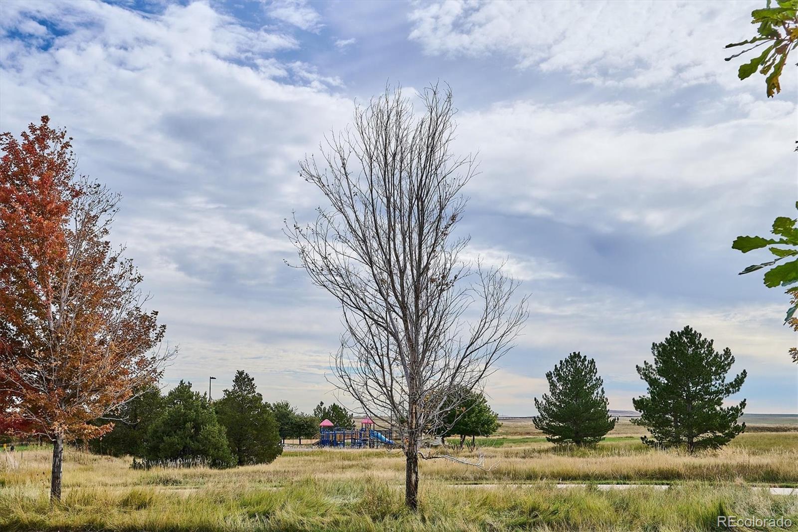 Discover the perfect blend of comfort and convenience in this beautifully designed ranch-style condominium. The front porch is the perfect spot to relax and enjoy views of the park. Thoughtfully crafted with open, spacious rooms and high ceilings, this home offers a light-filled layout ideal for both relaxing and entertaining. Step inside and enjoy upgraded finishes throughout—bringing a touch of elegance to every corner including LVP flooring in the living areas and granite counters in the kitchen along with stainless appliances including a convection oven. From the modern kitchen to the inviting living areas, every detail has been designed for style and functionality. The spacious great room is open to the dining area and kitchen and large windows taking in the greenbelt and park views. There is also plenty of room in the great room to create an office area. The primary suite includes a spacious bath with double vanity and a generous walk-in closet. A secondary bedroom is great for guests or functions equally as a den/office and a full bath is conveniently located across the hall. Convenience features include easy one level living with no steps, central AC, an oversized garage with storage closet, garage door opener and a large laundry/mud room as well as a back patio area perfect for grilling. The exterior of this home was painted in September 2025. Located directly across from a scenic park, you’ll enjoy stunning views, walking trails, and green space just outside your front door—perfect for an active lifestyle or simply unwinding in nature. The Great Plains community offers many clubs and activities such as a book club, social nights, men’s breakfast and ladies lunch that you can enjoy. Nearby shopping and restaurants and easy access to E-470 make this an ideal location. With the ease of low-maintenance living, you’ll have more time to enjoy the things that matter most.