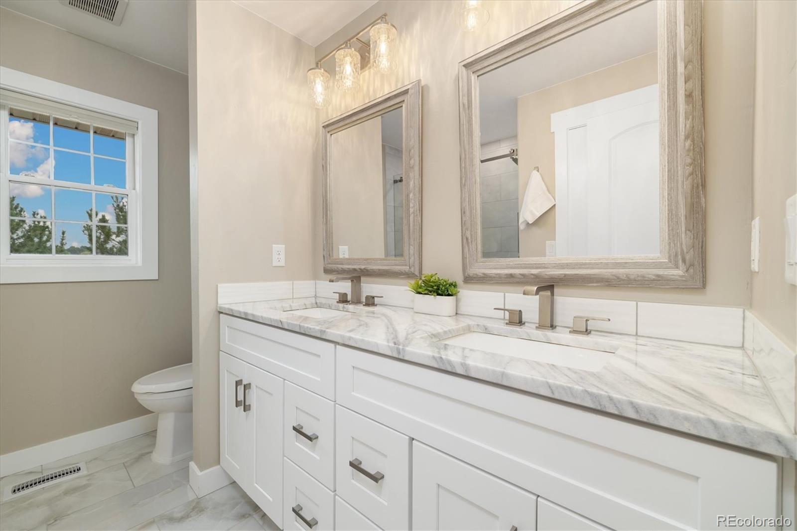 Country living meets city convenience on this 1.1+ acre property in unincorporated Jefferson County, just 20 minutes to Boulder or Downtown Denver! Over $130,000 in upgrades in the last 3 years including chef's kitchen with crown moulding, dual gas oven, pot filler, hidden coffee bar and quiet close cabinets & drawers. Luxury vinyl flooring newly installed throughout main floor. The inviting living room has a cozy gas fireplace and extra sitting area. Upstairs you will find the oversized primary suite with dual closets & spa like bathroom...Free-standing Jetted tub, large shower with dual showerheads & heated floors. Two more bedrooms (one is currently used as an office with glass door), updated Full Secondary Bathroom, and 2nd floor laundry with washroom sink, complete the upstairs. The finished walkout basement offers multi-generational or rental potential with wet bar, 2 bedrooms & updated bathroom. Back deck off kitchen and flagstone patio off lower level give you abundant outdoor entertaining space. Electrical has already been installed for your hot tub! HVAC and water heater all replaced in the last 2 years. 3 Car Garage + shed will give you room for all your toys! Pre-inspected with sewer scope done & 1-year home warranty provided.