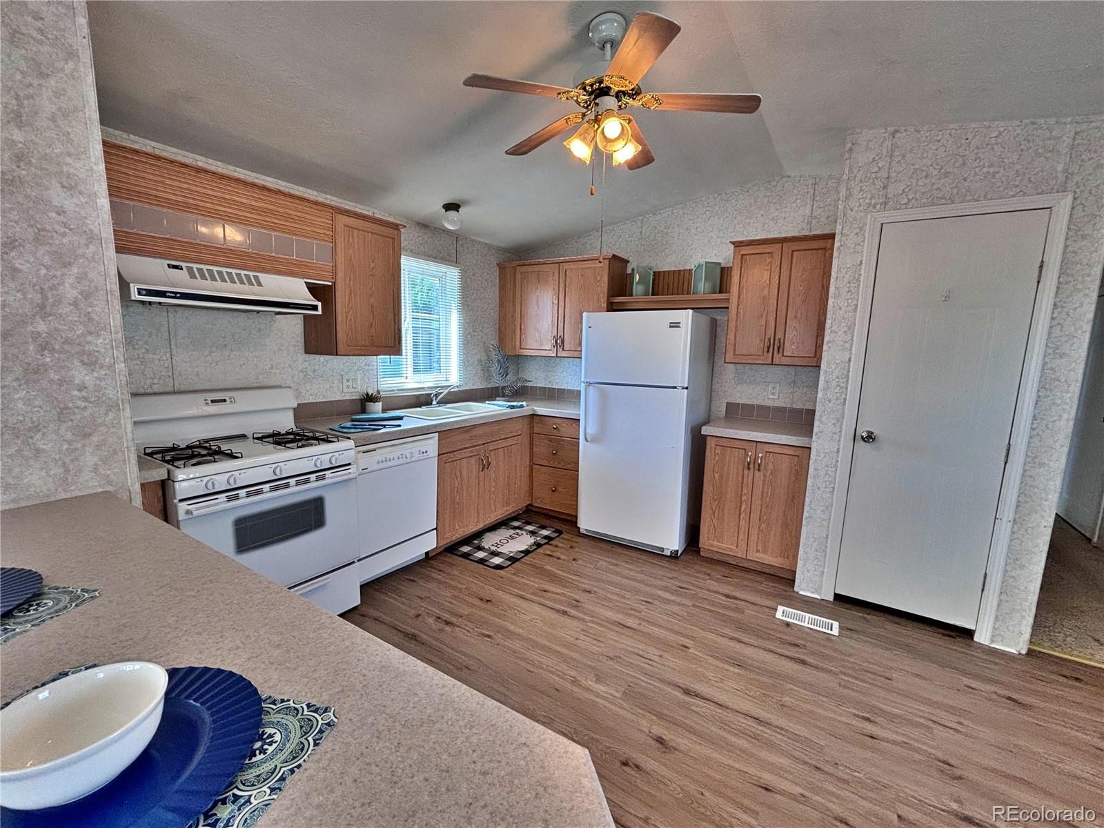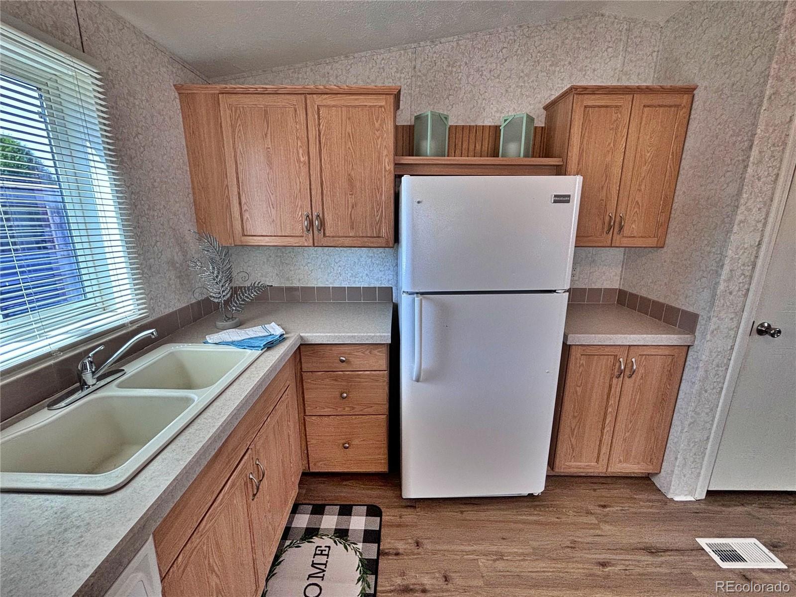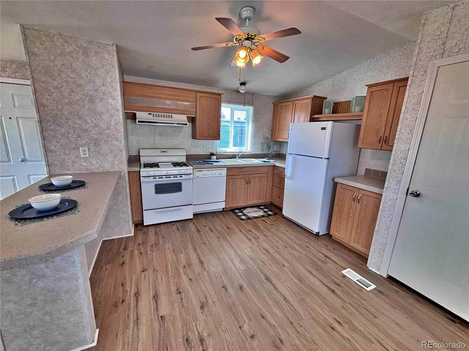 Check out Lot 6 in The Meadows Mobile Home Park! This 2003 manufactured home offers a comfortable and spacious layout with 2 bedrooms and 2 bathrooms. The living room and kitchen feature pitched ceilings, giving the home an airy feel. The eat-in kitchen includes all white appliances, a ceiling fan, and plenty of storage with built-in wood cabinets. The laminate flooring adds a modern touch, extending into the newly remodeled first bathroom, which includes a large vanity. The second bathroom is equipped with a walk-in shower and sleek glass doors. Natural light pours into the dining room through triple window panels, creating a warm and inviting atmosphere. The home sits on a fully fenced-in lot, complete with a shed for extra storage and two off-street parking spaces. With dimensions of 60x16, this home is a great find for comfortable living! Park approval is required, and loan options are available upon request. || Please see private remarks regarding Owner Financing --Video Tour here: https://www.youtube.com/watch?v=nMsYCLGvhiw