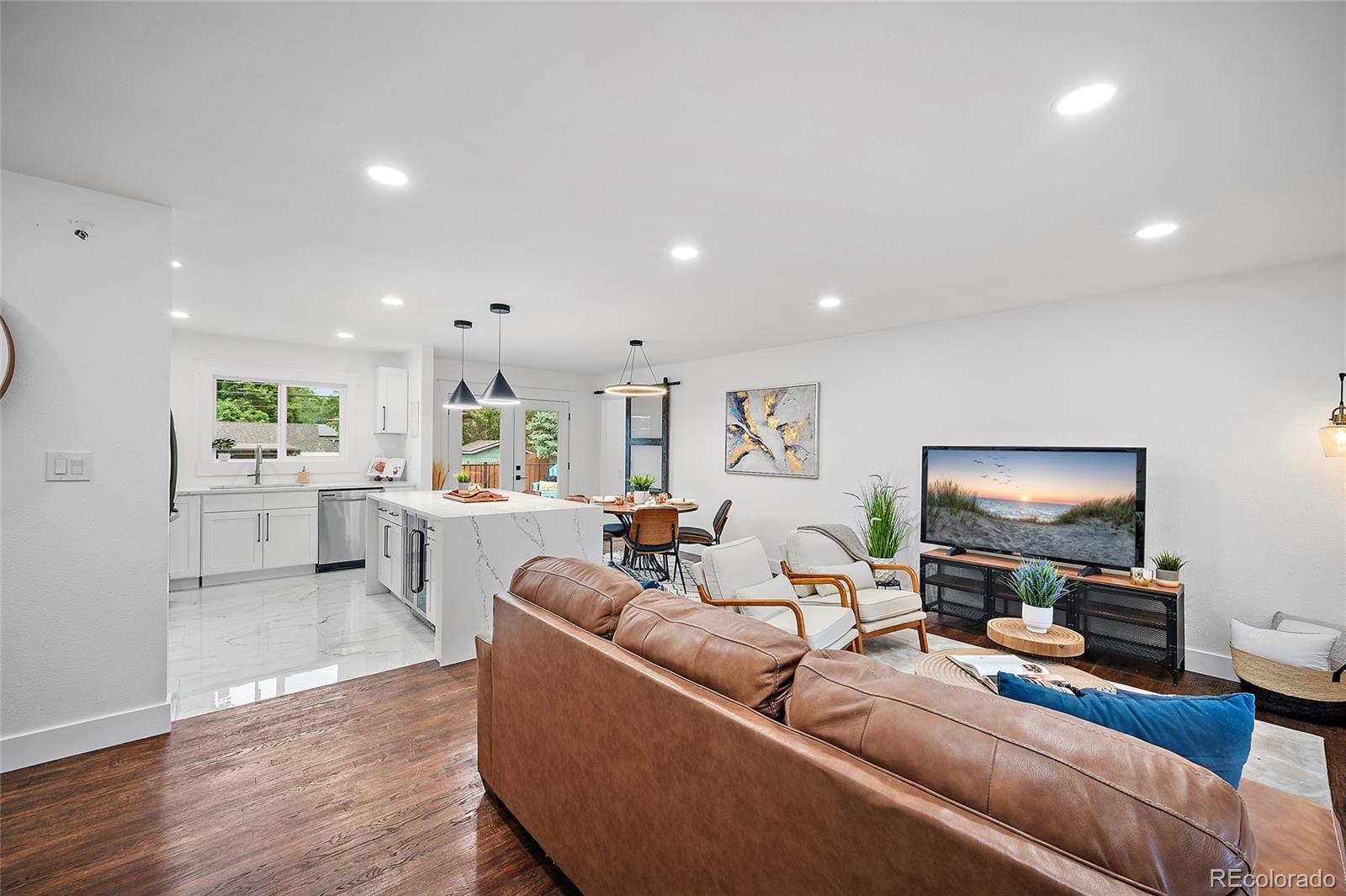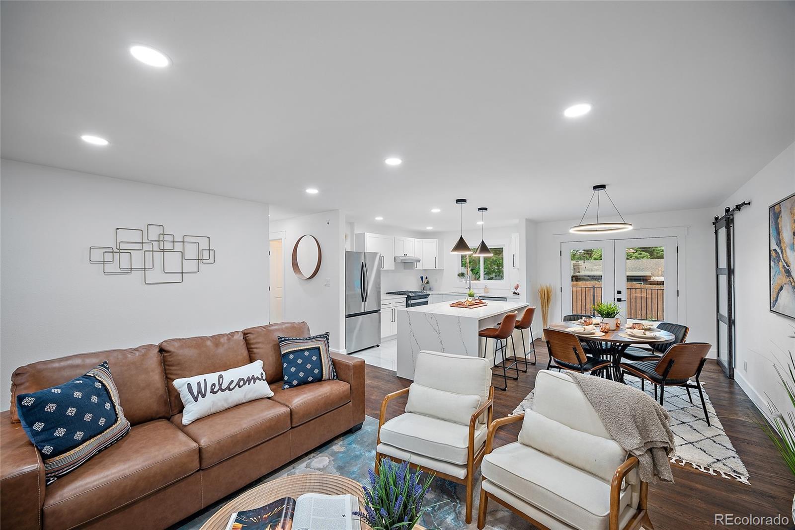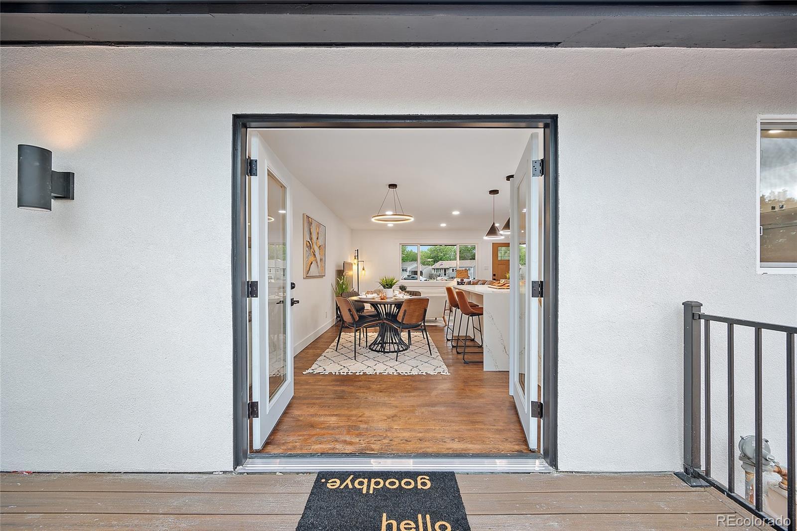 Welcome to your dream home! Thoughtfully reimagined and truly move-in ready. From the moment you arrive, the striking curb appeal sets the tone: new exterior stucco, energy-efficient Pella windows, lush custom landscaping, and a stamped and stained concrete driveway that blends beauty with durability. Step inside and experience a seamless open-concept layout that effortlessly connects the living room, chef’s kitchen, and formal dining area -designed with everyday comfort and entertaining in mind. Richly refinished original hardwood floors add warmth and character, while an abundance of natural light showcases every elegant, designer-curated detail. At the heart of the home is a kitchen that is as functional as it is stunning. Outfitted with brand-new stainless steel appliances, a gas range, built-in wine fridge, premium Kraus sink, and a show-stopping 9-foot Calacatta quartz double waterfall island. This space is built for gathering, sharing, and memory-making. Open the French doors off the dining area to discover your brand-new 16-foot Trex composite deckperfect for morning coffee, evening grilling, or simply soaking up the Colorado sun. The fully xeriscaped backyard is both stylish and low-maintenance, featuring a privacy fence, RV/car parking, and custom double-hinge gates for easy access. A custom barn door leads to the main-floor laundry room, complete with a new washer, dryer, and water heater. Additional upgrades include a brand new air conditioning system and high-efficiency furnace, ensuring year round comfort and peace of mind. Down the hall, you will find three well-appointed bedrooms and a spa-inspired bathroom with a double vanity and custom-tiled walk-in shower, your private retreat to unwind and recharge. Every inch of this home has been designed with care, intention, and modern living in mind. This a reinvention of what home can truly feel like! Come see for yourself, you won’t want to leave.