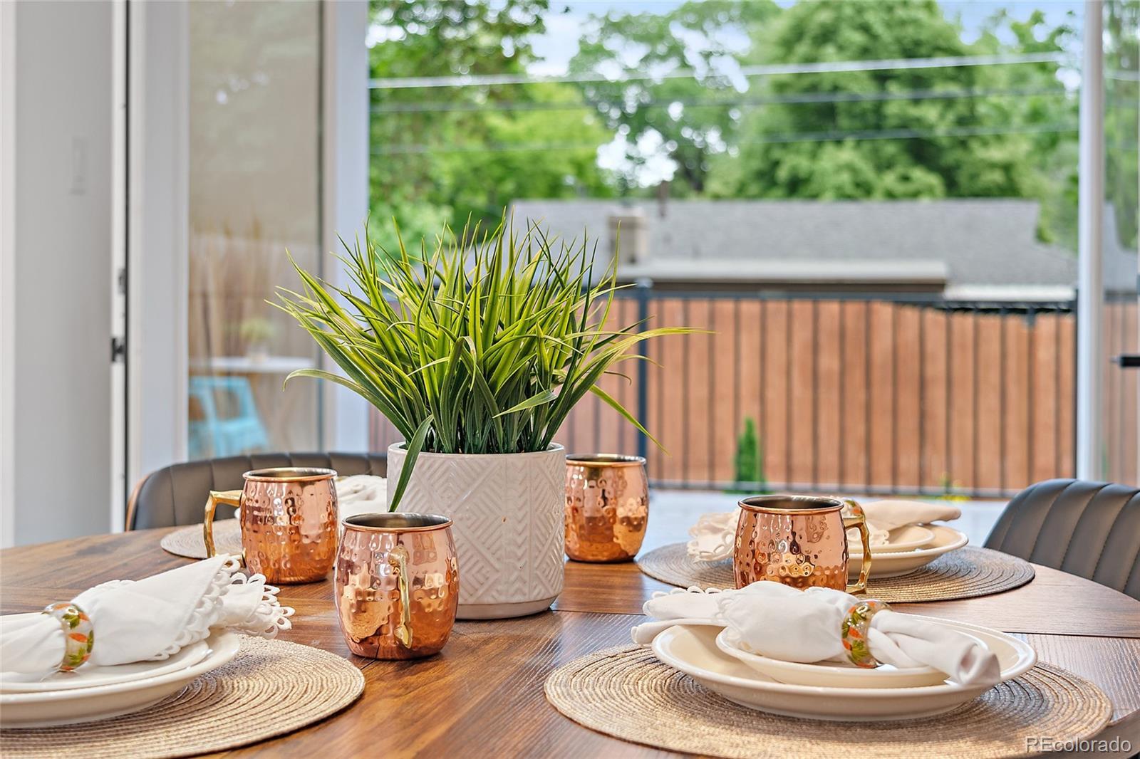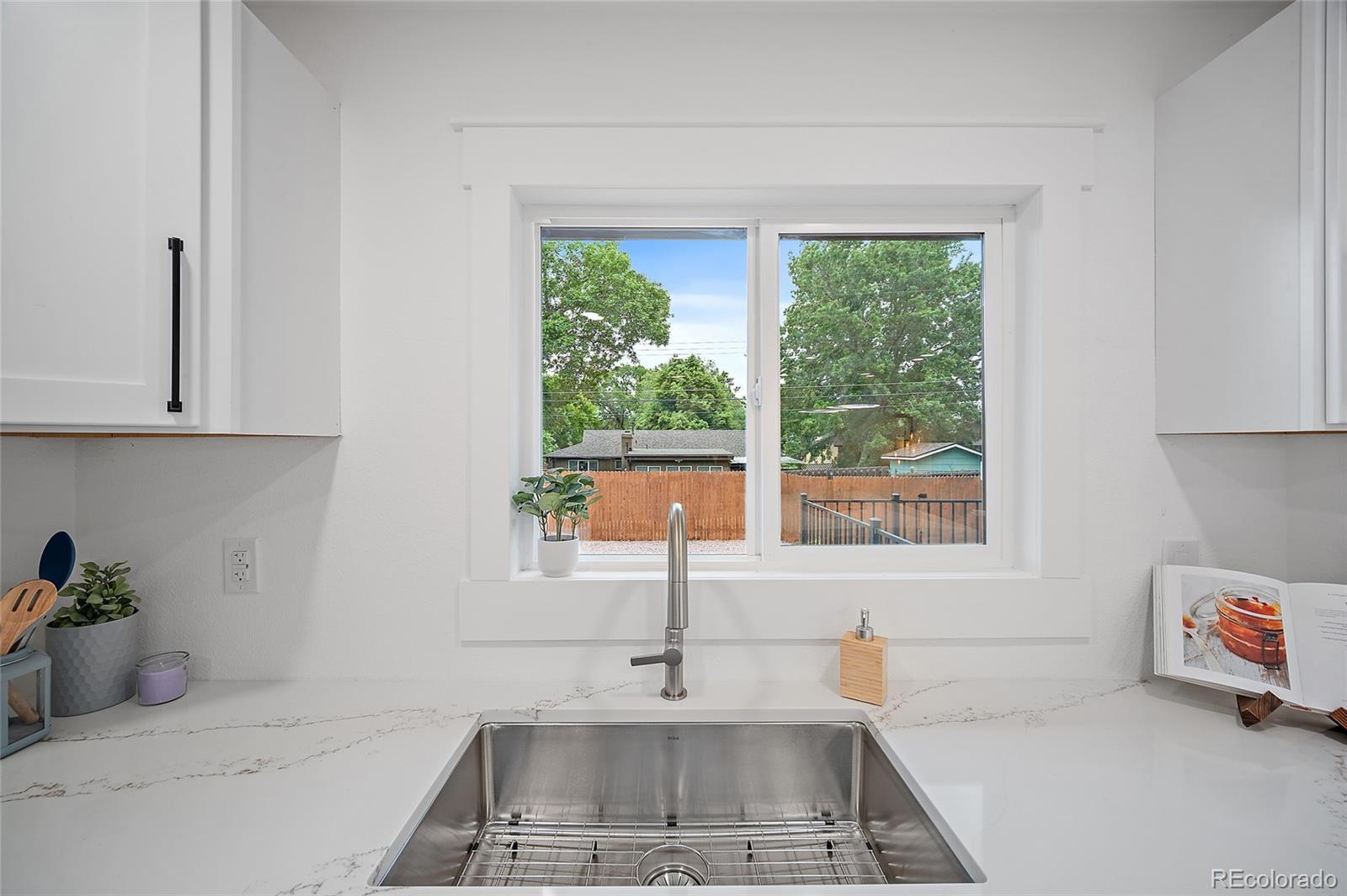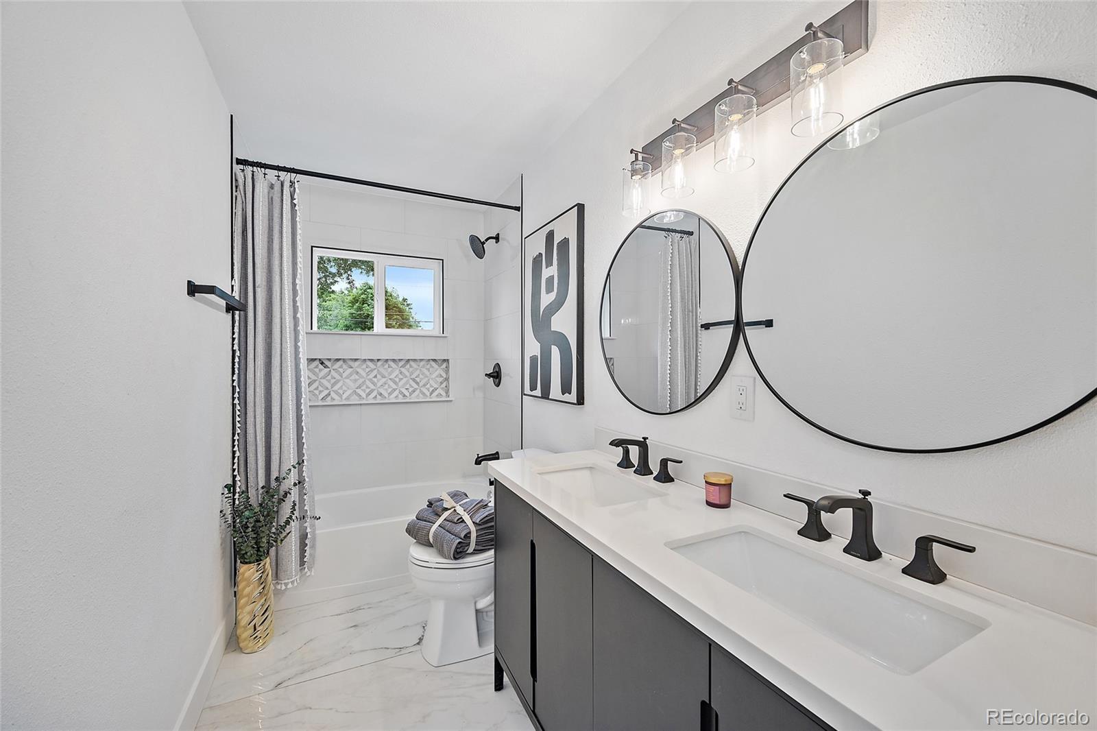 Welcome to your dream home! Thoughtfully reimagined and truly move-in ready. From the moment you arrive, the striking curb appeal sets the tone: new exterior stucco, energy-efficient Pella windows, lush custom landscaping, and a stamped and stained concrete driveway that blends beauty with durability. Step inside and experience a seamless open-concept layout that effortlessly connects the living room, chef’s kitchen, and formal dining area -designed with everyday comfort and entertaining in mind. Richly refinished original hardwood floors add warmth and character, while an abundance of natural light showcases every elegant, designer-curated detail. At the heart of the home is a kitchen that is as functional as it is stunning. Outfitted with brand-new stainless steel appliances, a gas range, built-in wine fridge, premium Kraus sink, and a show-stopping 9-foot Calacatta quartz double waterfall island. This space is built for gathering, sharing, and memory-making. Open the French doors off the dining area to discover your brand-new 16-foot Trex composite deckperfect for morning coffee, evening grilling, or simply soaking up the Colorado sun. The fully xeriscaped backyard is both stylish and low-maintenance, featuring a privacy fence, RV/car parking, and custom double-hinge gates for easy access. A custom barn door leads to the main-floor laundry room, complete with a new washer, dryer, and water heater. Additional upgrades include a brand new air conditioning system and high-efficiency furnace, ensuring year round comfort and peace of mind. Down the hall, you will find three well-appointed bedrooms and a spa-inspired bathroom with a double vanity and custom-tiled walk-in shower, your private retreat to unwind and recharge. Every inch of this home has been designed with care, intention, and modern living in mind. This a reinvention of what home can truly feel like! Come see for yourself, you won’t want to leave.