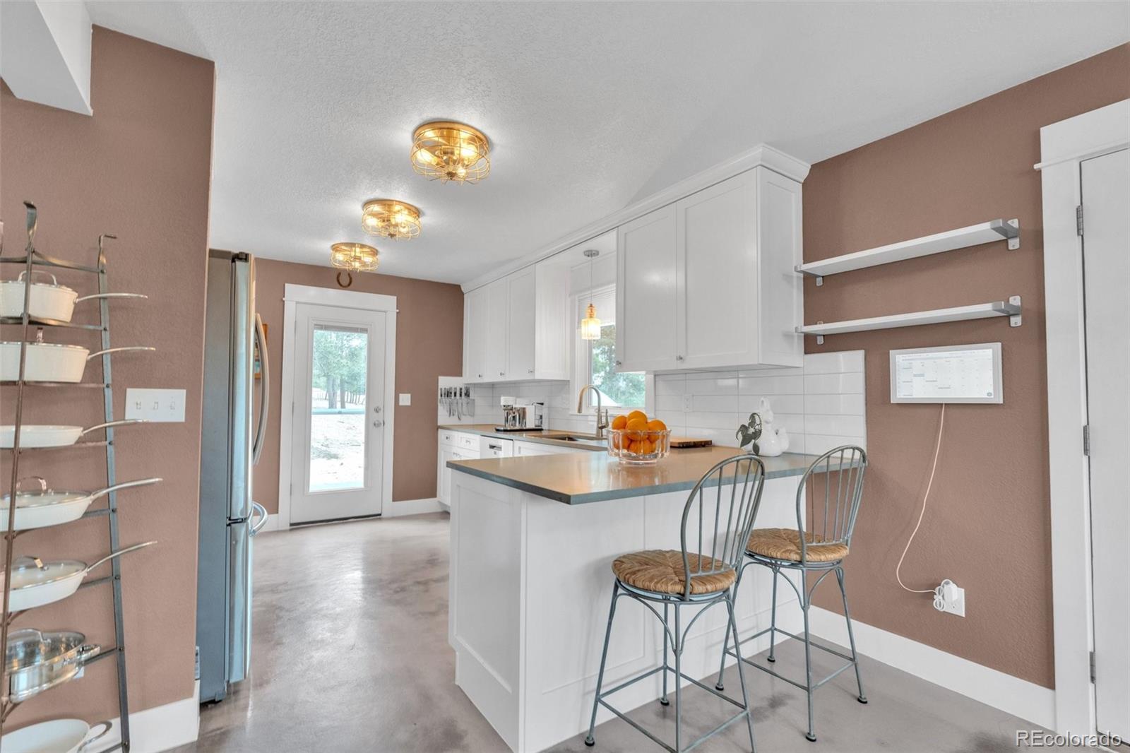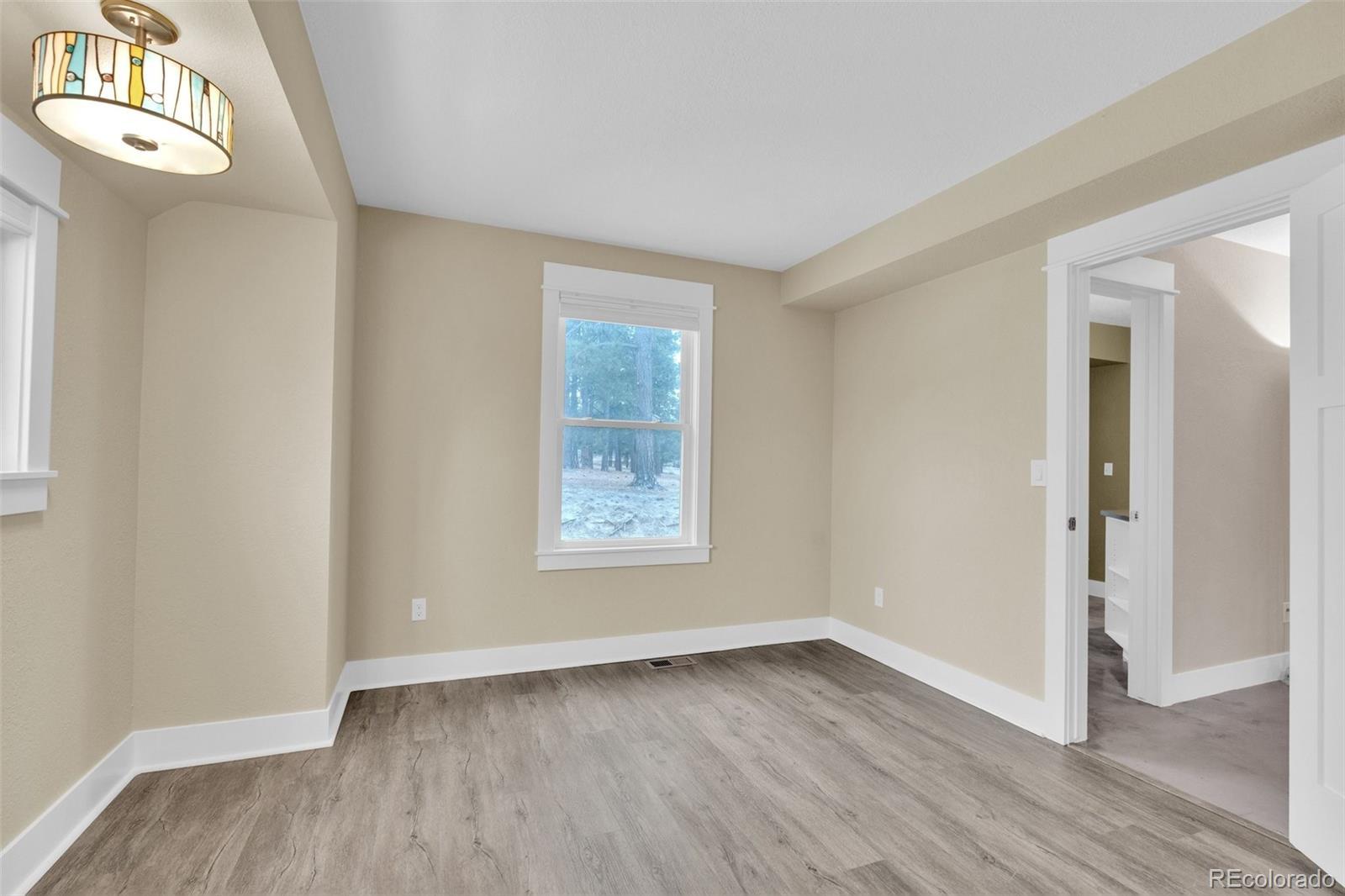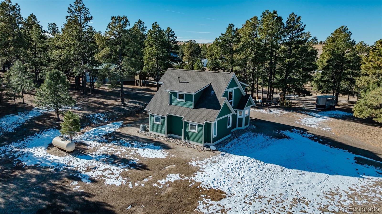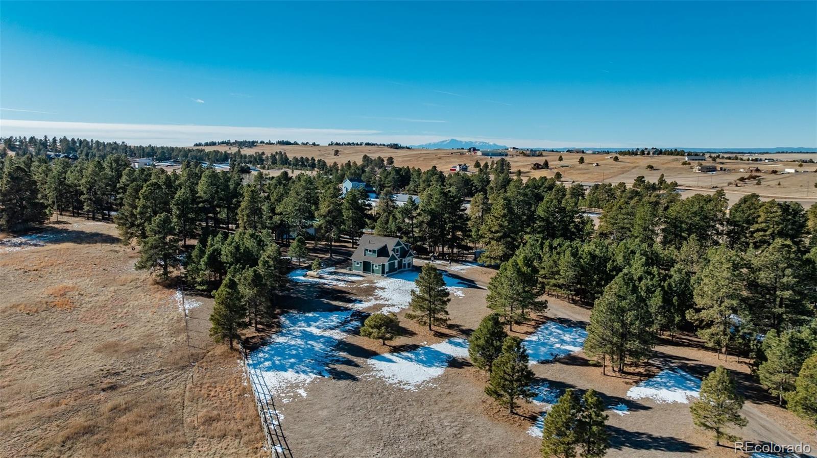 This darling home in the pines is the one you don't want to miss! Five beautiful acres, a massive finished shop, and a quaint home in the trees. The minute you step in the door, you can see and feel the love these owners have for their home. Every possible update completed, every detail tended to. The warm, classic designs throughout will outlive any trend that will eventually come and go. Three bedrooms, two bathrooms, and an open concept kitchen and living area with easy to clean and care for flooring throughout. Head upstairs to the master retreat! This word is thrown around a lot in real estate, but this is a true retreat! Spacious, ultra private, and elegant. The entire property is fenced and there is a pen with a loafing shed perfect for small livestock. No HOA, no covenants, and a stones throw to Elizabeth. The location is prime, it has the privacy of rural living, but just a couple of miles to HWY 86. Kiowa zip code, pricing, and lower taxes, but the benefit of the Elizabeth school district! Schedule your showing for this one before it's too late!