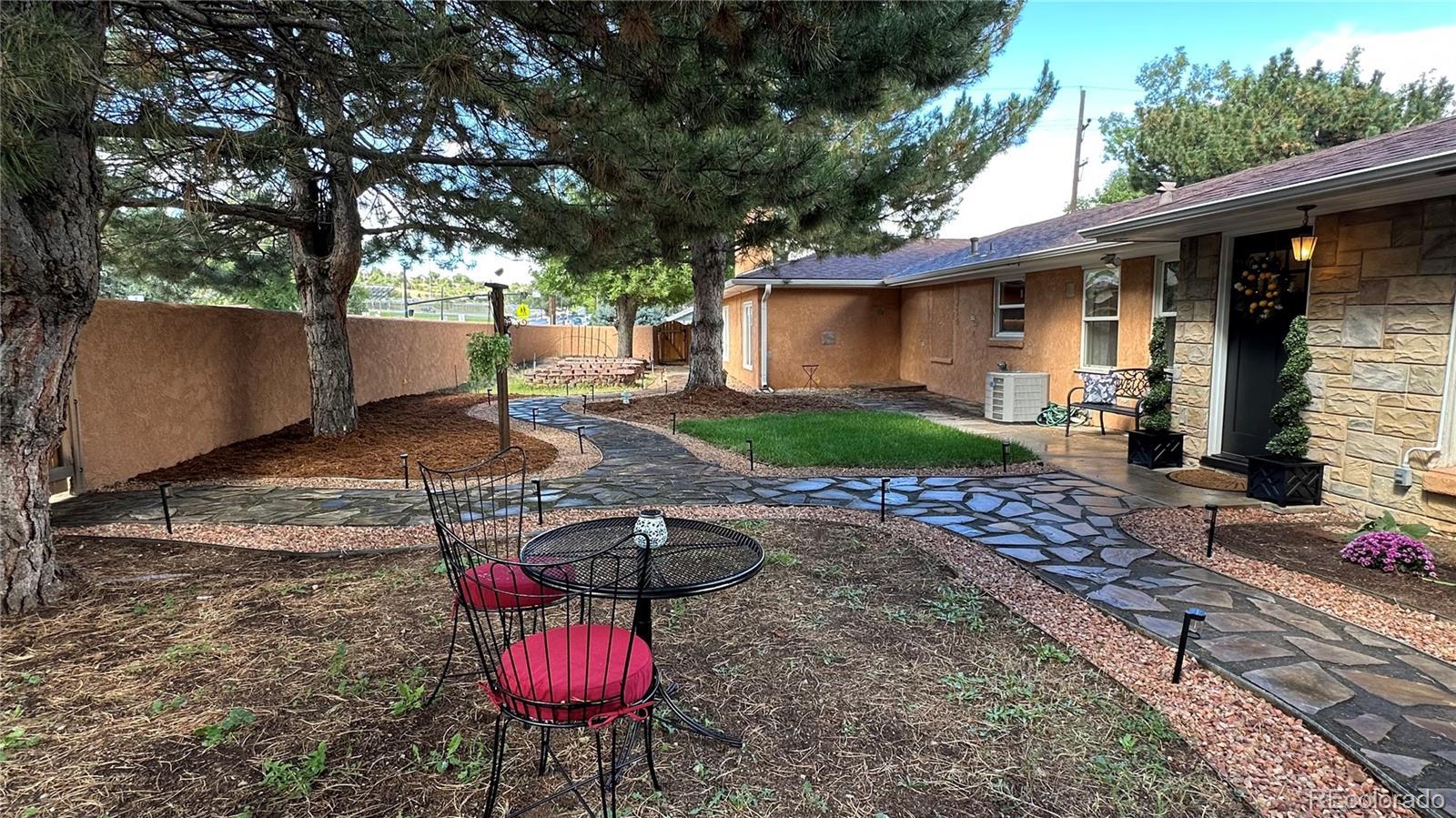 Welcome to this beautifully-updated Skyway home, offering main level living for multiple generations. This turn-key residence offers an exceptional blend of 1948 charm and quality with modern comforts and conveniences. You will enjoy thoughtful updates throughout, from the custom gourmet kitchen to luxurious touches like toasty bathroom floors and en suite laundry in the primary bedroom. Set on an extra-large and private lot with nearly as many features as the house.... automatically-watered raised garden beds, a expansive composite deck, relaxing spa, wandering pathways and gardens and plenty of room for your personal additions (fresh eggs anyone?). This rare combination of features provides comfort and flexibility like nothing else in 80906. Updates include high-end kitchen and bathroom remodels, electrical service, HE furnace, water heater, water supply line, composite deck.
