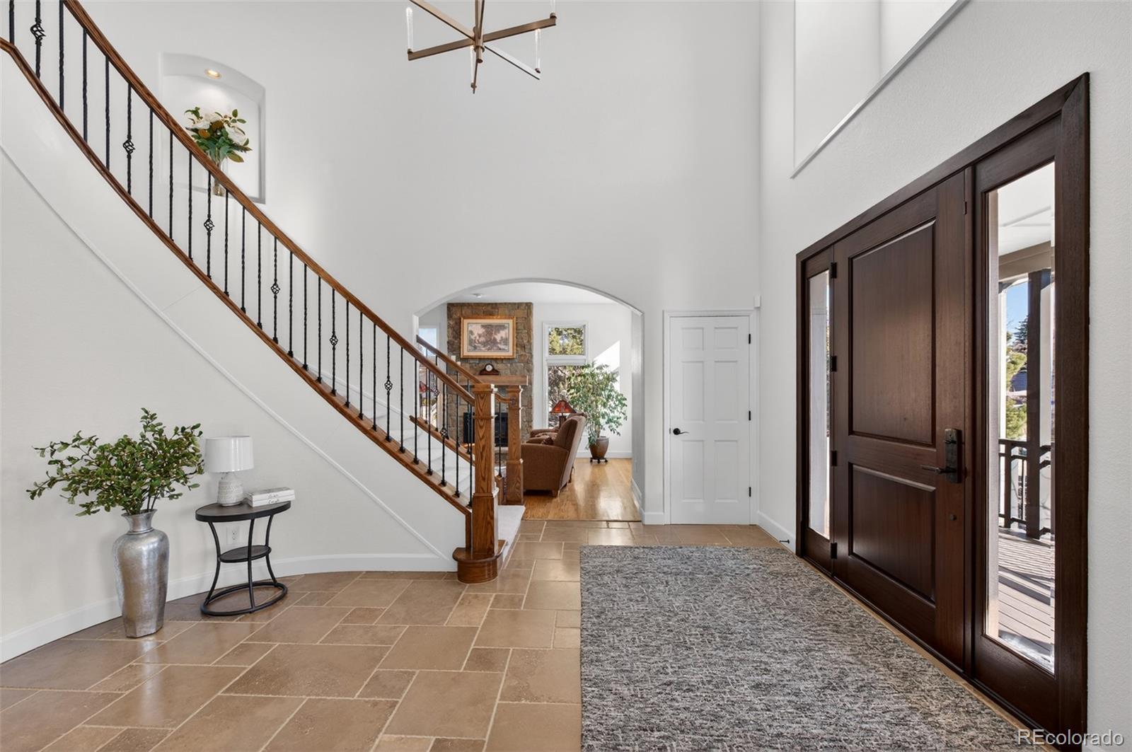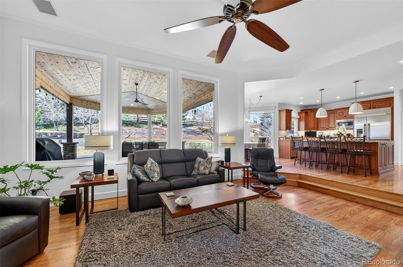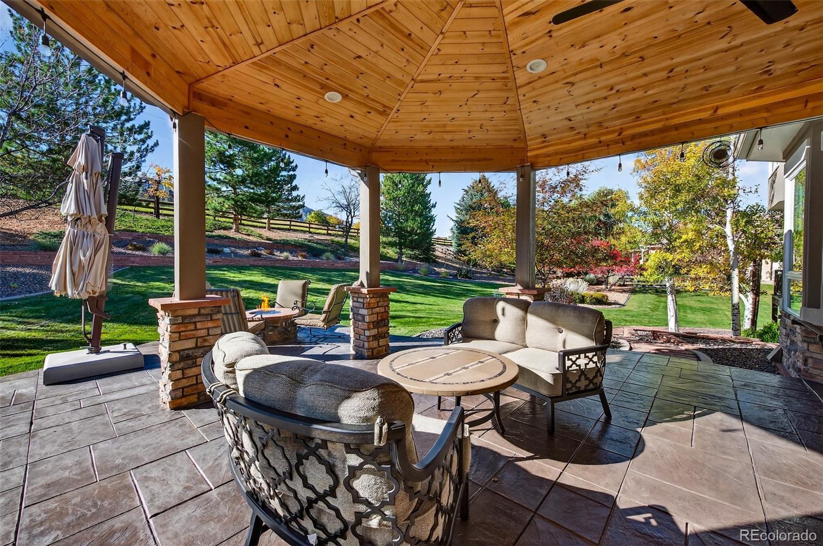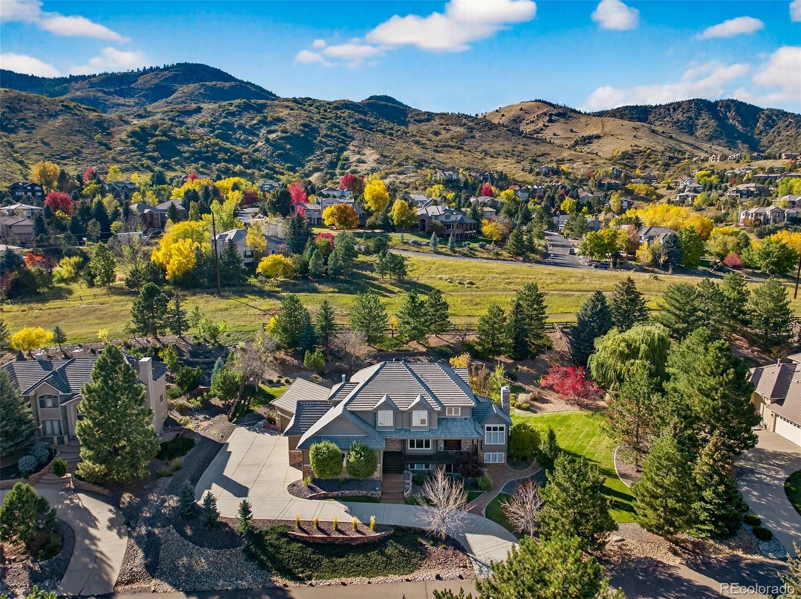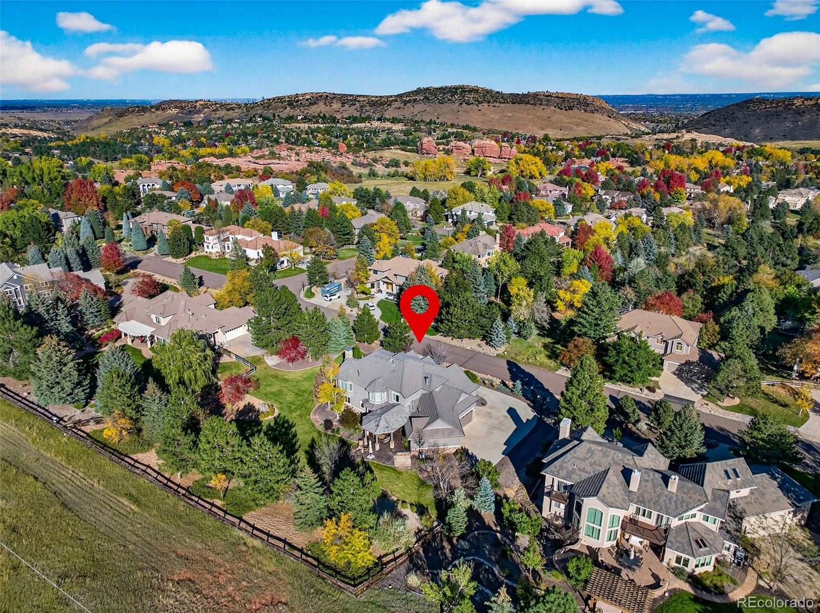 Welcome home to this stunning custom residence in the prestigious North Ranch at Ken Caryl Valley. Backing to a serene greenbelt with sweeping views, this exceptional property offers nearly 6,000 square feet of beautifully designed living space and an impressive five-car garage. The impeccably maintained floor plan is both elegant and functional. The main level showcases formal living and dining rooms, along with a distinguished study featuring its own balcony and fireplace. The chef’s kitchen is thoughtfully appointed with top-of-the-line appliances, double ovens, two pantries, a butler pantry with a beverage refrigerator, breakfast bar seating, and a sunny eat-in area. The adjoining family room is warm and inviting, highlighted by a stunning stone gas fireplace. An oversized laundry and mud room adds exceptional convenience and storage. Upstairs, a separate staircase leads to a luxurious primary suite complete with a spa-inspired ensuite bath and large walk-in closet. Three additional bedrooms and two well-appointed bathrooms. The light-filled walk-out lower level expands the home’s versatility, offering a large bedroom, dedicated gym, workshop, abundant storage, and a second family room with a gas fireplace — ideal for entertaining, hobbies, or multi-generational living. The outdoor living space is equally impressive, featuring a large covered stamped-concrete patio, a gas fire pit, and a flat, private yard that backs to an open greenbelt with beautiful views. A separate concrete pad with electrical is already in place for a future hot tub, creating the perfect setting for relaxing Colorado evenings. With its premier greenbelt setting, breathtaking views, expansive layout, and impeccable care, this Ken Caryl home truly has it all. Residents enjoy premier community amenities including three pools, miles of interior trails, 4,800 acres of private open space, tennis and pickleball courts, an equestrian center, and numerous parks and playgrounds.