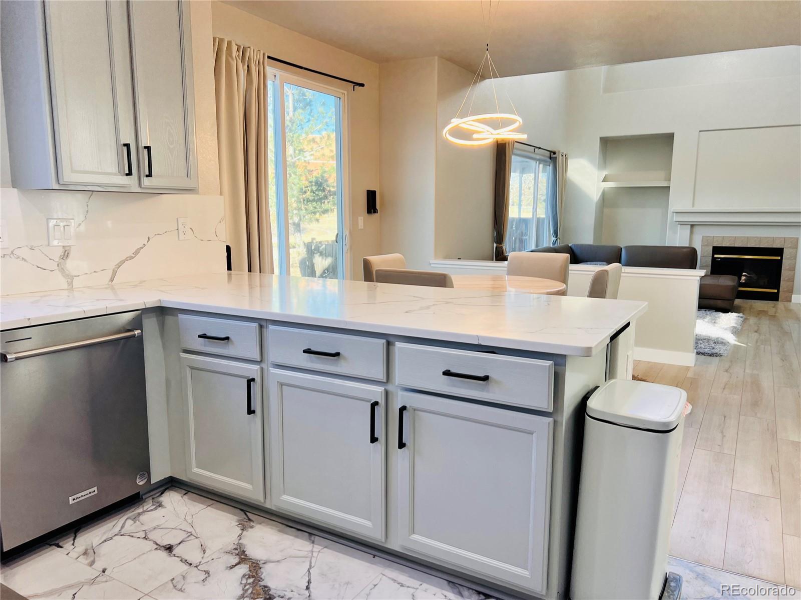 Welcome to this beautifully updated two-story residence in the highly sought-after Grant Ranch community of Littleton, Colorado. Offering 3 bedrooms, 3 bathrooms, and an open, light-filled floorplan enhanced by soaring ceilings, this home combines modern elegance with thoughtful design for comfortable everyday living. Step onto the inviting covered front porch and enter a spacious main level featuring a formal living room, dining room, gourmet kitchen, cozy family room with gas fireplace, convenient powder room, and oversized laundry room. The stunning remodeled kitchen boasts all-new stainless steel appliances, sleek quartz countertops, matching quartz backsplash, and updated fixtures—perfect for culinary enthusiasts. Upstairs, the oversized primary suite impresses with breathtaking mountain views and a fully remodeled en suite bathroom showcasing high-end finishes, including a digital lighted mirror. Two additional bedrooms share a completely updated full bathroom. Luxury vinyl plank flooring flows throughout the first and second levels, complemented by fresh paint for a move-in-ready feel. The unfinished lower level is roughed-in and framed for a future bedroom, closet, bathroom, and recreation room—offering excellent potential to add personalized space and equity. Outdoor living shines with a newer expansive concrete patio ideal for entertaining or relaxing amid Colorado's stunning weather, plus direct backyard access to serene walking trails for ultimate privacy. A tandem 3-car garage provides ample storage and parking. Nestled in the resort-style Grant Ranch community, enjoy exclusive amenities including a clubhouse, swimming pool, tennis courts, lakes, parks, and miles of trails—all while being moments from shopping, breweries, restaurants, and gyms.