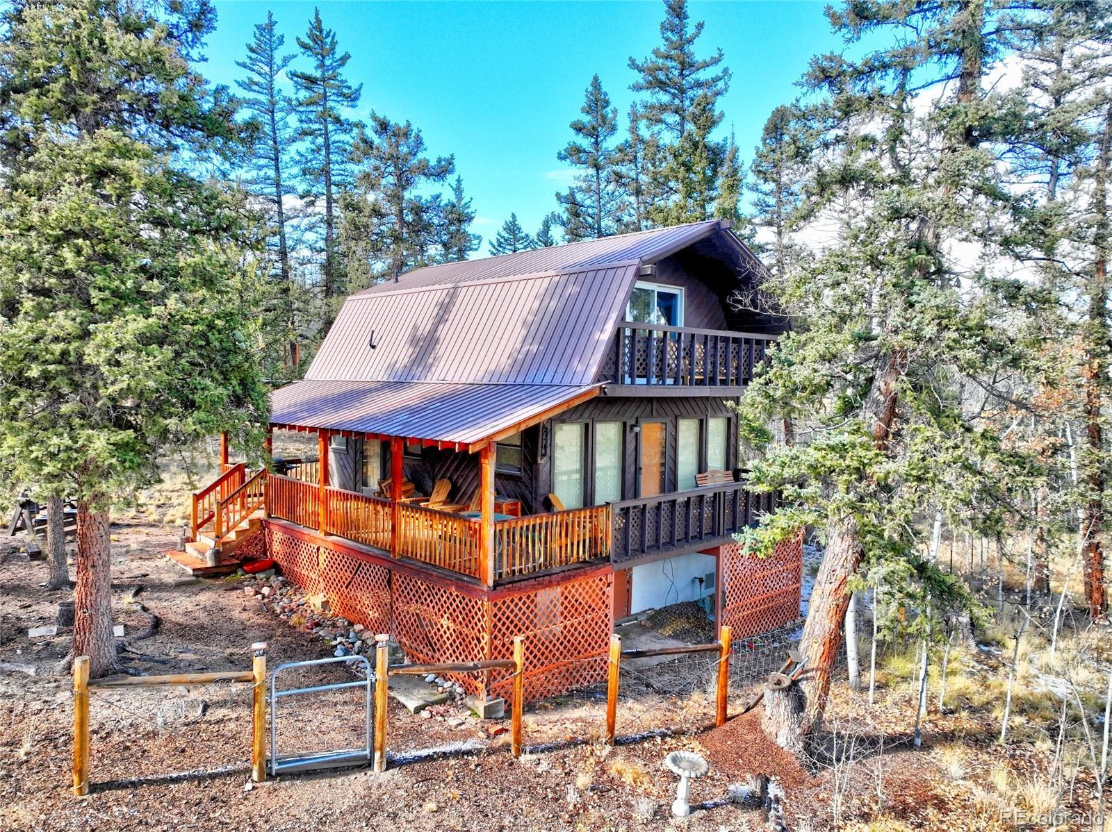 Beautifully maintained mountain getaway cabin on 2 forested acres, with the opportunity to expand — three adjoining 2-acre lots are also available, giving you the option to own up to 8 total acres of pristine Colorado mountain property surrounded by towering pines and aspens. This inviting cabin is the perfect mix of comfort, privacy, and outdoor adventure. The lush forest setting offers both beauty and seclusion, with meandering trails right on the property and even a kids’ play tree house tucked among the trees — a magical spot for little explorers or a cozy perch for taking in the peaceful mountain views. Included is a guest camper for additional space and exclusive access to the Tarryall Fishing Club, offering over 17 miles of privately stocked river fishing for the avid fly-fishing enthusiast, plus three stocked ponds perfect for relaxed family days by the water. Located just minutes from Pike National Forest, you’ll have easy access to endless opportunities for hiking, ATVing, hunting, and exploring. The property is only 30 minutes to Fairplay for shopping and dining, and under an hour to Breckenridge, where you’ll find world-class skiing, snowboarding, and year-round recreation. Inside, the cabin features a wood stove, high-speed internet, a private deck off the upstairs family room, and a large wraparound deck on the main level — perfect for soaking in the crisp mountain air and watching wildlife wander through the trees. A metal roof and fully fenced area around the cabin provide durability, security, and room for pets or privacy. Peaceful, private, and surrounded by forest beauty — this mountain retreat is the perfect place to unwind, explore, and make lifelong memories. A must-see!