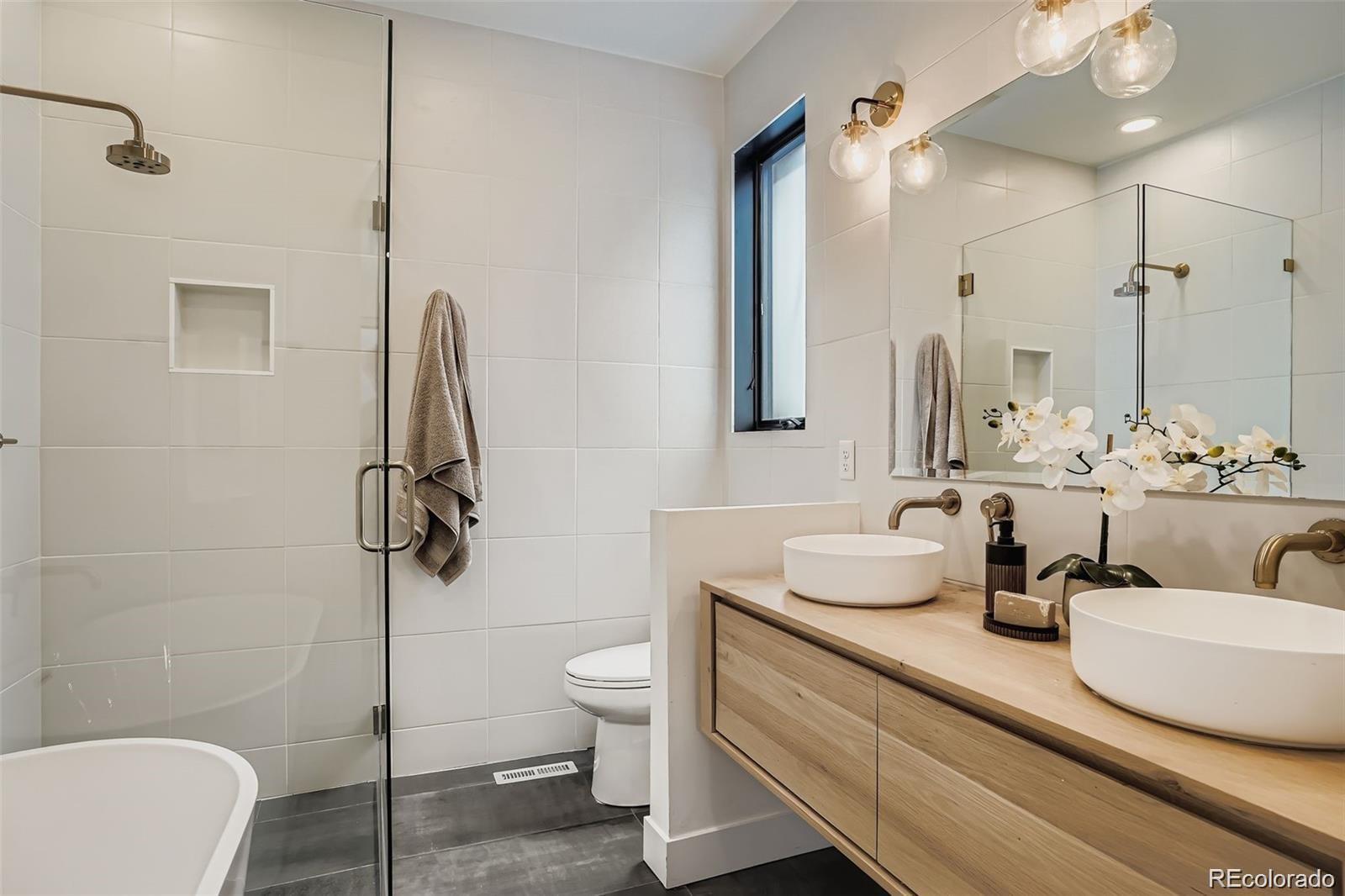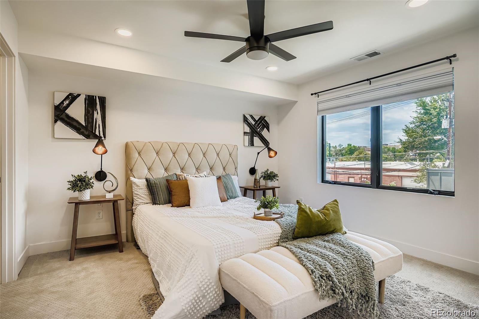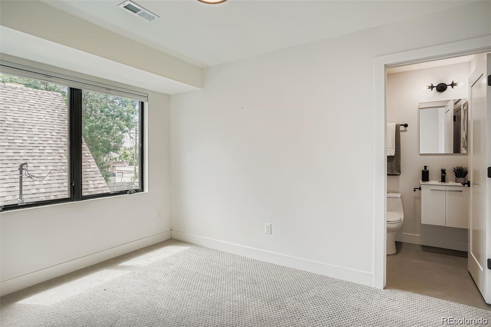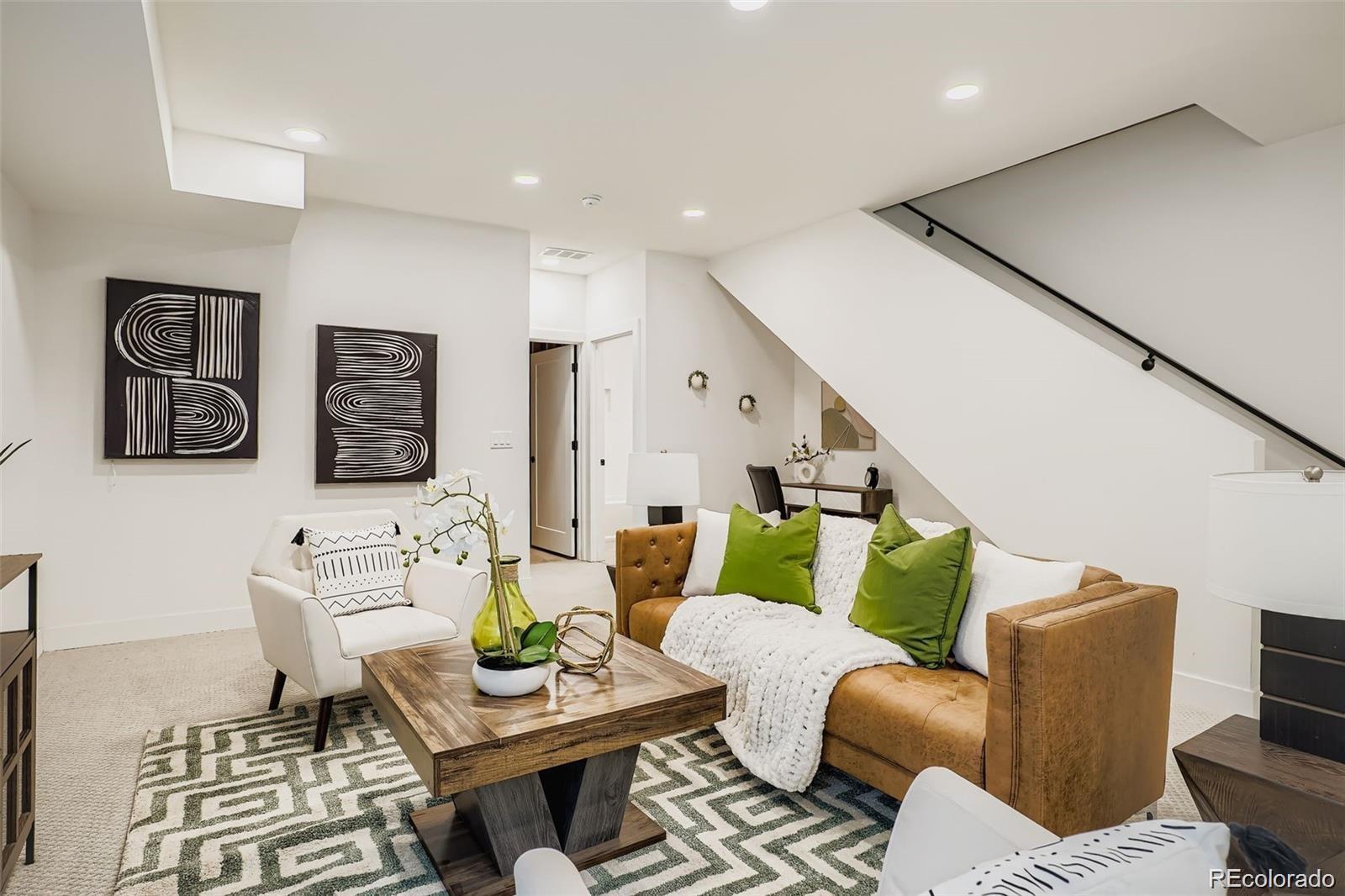 Stunning contemporary Sunnyside duplex directly across from La Raza Park (in the middle of a major renovation), offering park-front living with walkable Denver lifestyle. This light-filled modern home features an open-concept floor plan, floorto-ceiling windows, and skylights that flood the space with natural light. The main level is built for entertaining with a chef’s kitchen—quartz countertops, large island, stainless appliances, high-efficiency induction cooktop, pot filler, undermount sink, and abundant storage + prep space. Also on the main floor: a main-floor bedroom + ensuite 5-piece bath + walk-in closet, perfect as a main-level primary suite or guest setup. Upstairs includes a second primary suite, plus an additional bedroom and bath, and a loft/office flex space with park and city views—ideal for work-from-home. The third level delivers a private retreat with a wet bar and west-facing balcony for sunsets. The finished basement offers tall ceilings, two egress windows, a large rec room, guest bedroom, full bath, and extra storage—great for a media room, gym, or playroom. Outside, enjoy a private low-maintenance backyard leading to a 2-car detached garage. Upgrades buyers search for: oak hardwood floors, custom lighting, modern metal railings, multi-zone heating & cooling, tankless water heater, and seller-owned solar panels (average utilities ~$100/month). Green-built / energy-efficient and steps to Sunnyside coffee shops, restaurants, and Traverse Fitness—this is modern Denver living with space, style.