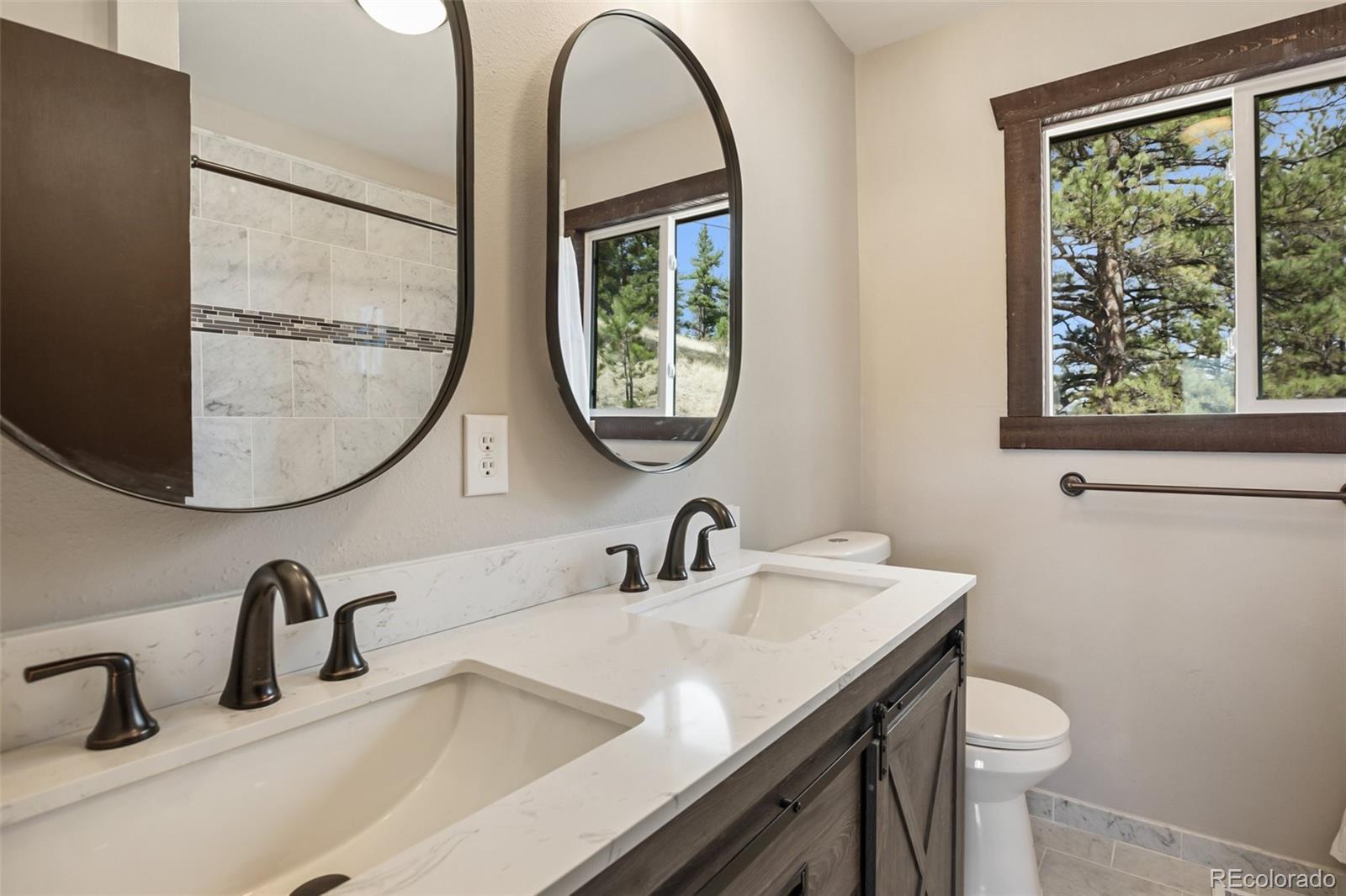 This cozy 3-bedroom, 3-bath home in Central Colorado masterfully blends modern upgrades with rustic charm, making it an ideal retreat for families, hobby farmers, hunters, fishermen, or anyone seeking serenity. Nestled near Lake George, Florissant, Divide, and Woodland Park on 35 Acres with easy access to Pike National Forest’s trails, it’s perfect for outdoor enthusiasts. The property features fenced pastures with frost-free hydrants, a 1.2 gpm well feeding an underground cistern and an updated septic system. A private lower-level suite with separate entry, new LVP flooring, plush carpet, and a stunning tiled shower with marble countertop is perfect for a mother-in-law or caretaker. The main floor, the heart of the home, boasts upgraded appliances, granite countertops, new flooring, new vinyl windows, and a large sliding glass door opening to a wrap-around deck with new composite decking—ideal for entertaining or enjoying Pikes Peak sunrises and hawk-filled skies. A wood fireplace with custom stone adds warmth, while the master bedroom, just off the kitchen, features a walk-in closet, new en suite bath, carpet, and windows. The upper level offers a quiet bedroom and bath, perfect as a meditative sanctuary, with new carpet and windows. Additional amenities include a new exterior electrical panel, gas furnace, private road, gravel pit, gravel trailer, dog run, and carport. This property is a rare opportunity to own a move-in-ready mountain hobby farm with room to grow and explore. What’s holding you back?