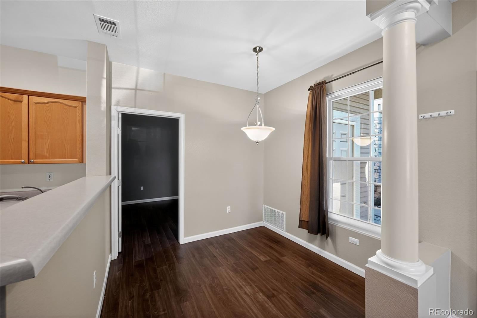 Very well maintained and truly move-in ready, this 2-bedroom, 2-bath corner-unit condo offers 1,012 square feet of comfortable and functional living space in a desirable Aurora location. Being a corner unit, the home enjoys added privacy and abundant natural light throughout. The open and inviting living area is accented by neutral colors and updated flooring, creating a modern yet warm atmosphere that suits a variety of décor styles. The thoughtfully designed layout includes a private primary suite with its own bathroom, providing an ideal retreat at the end of the day. The second bedroom and full bath are well-sized and perfect for guests, a home office, or additional living flexibility. In-unit laundry adds everyday convenience, while plenty of storage throughout ensures everything has its place. Recent improvements enhance both comfort and efficiency, including new windows throughout, new bottom-up/top-down cellular shades, central air conditioning, and stainless steel appliances in the kitchen, complemented by a new garbage disposal. The unit also includes a dedicated carport space (#10), offering protected parking just steps from home. Offered vacant and ready for immediate occupancy, this condo presents an excellent opportunity for owner-occupants or investors alike. Ideally located near shopping, dining, parks, public transportation, and major commuter routes, this well-cared-for home delivers convenience, comfort, and value in one complete package.