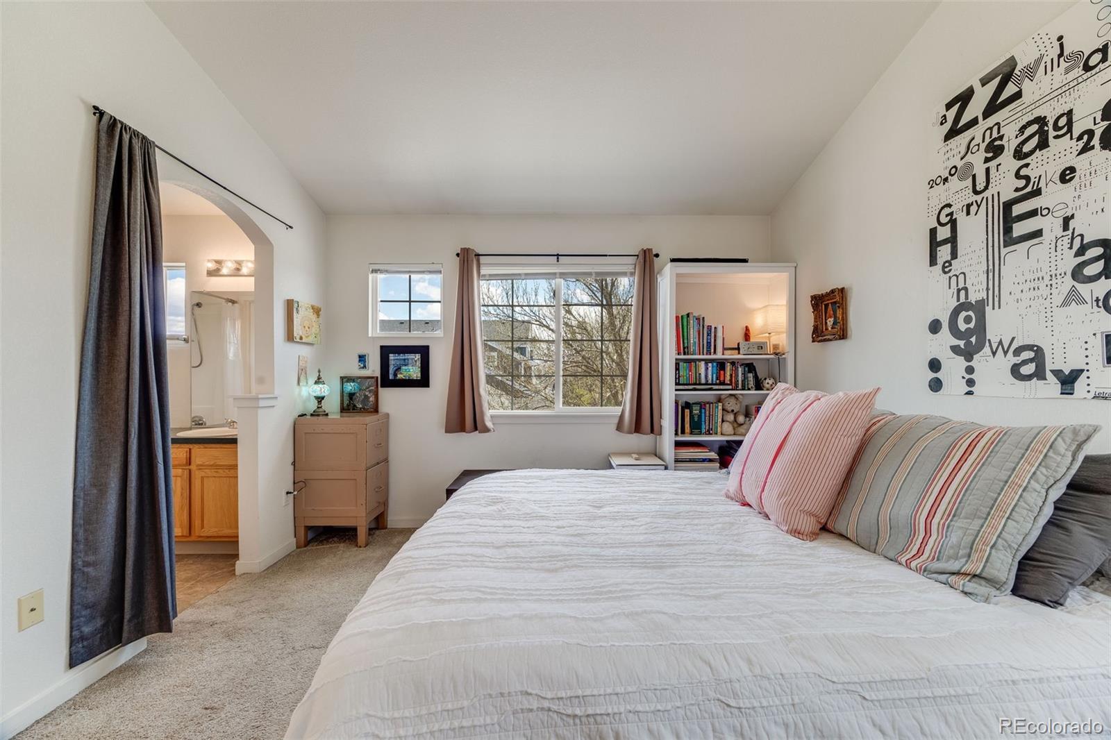 RARE END CORNER UNIT - Charming townhome located on an a-cul-de-sac with green area and only 1 neighbor. New flooring and interior paint, well cared for appliances and quaint covered front porch with fenced front yard. Finished 3rd bedroom with remodeled full bathroom in basement and 2 upstairs bedrooms with en suite bathrooms. Extra storage insulated attached 2-car garage and easy access to restaurants, shopping and highways to Boulder, Denver and Longmont. DON'T MISS THIS OPPORTUNITY!