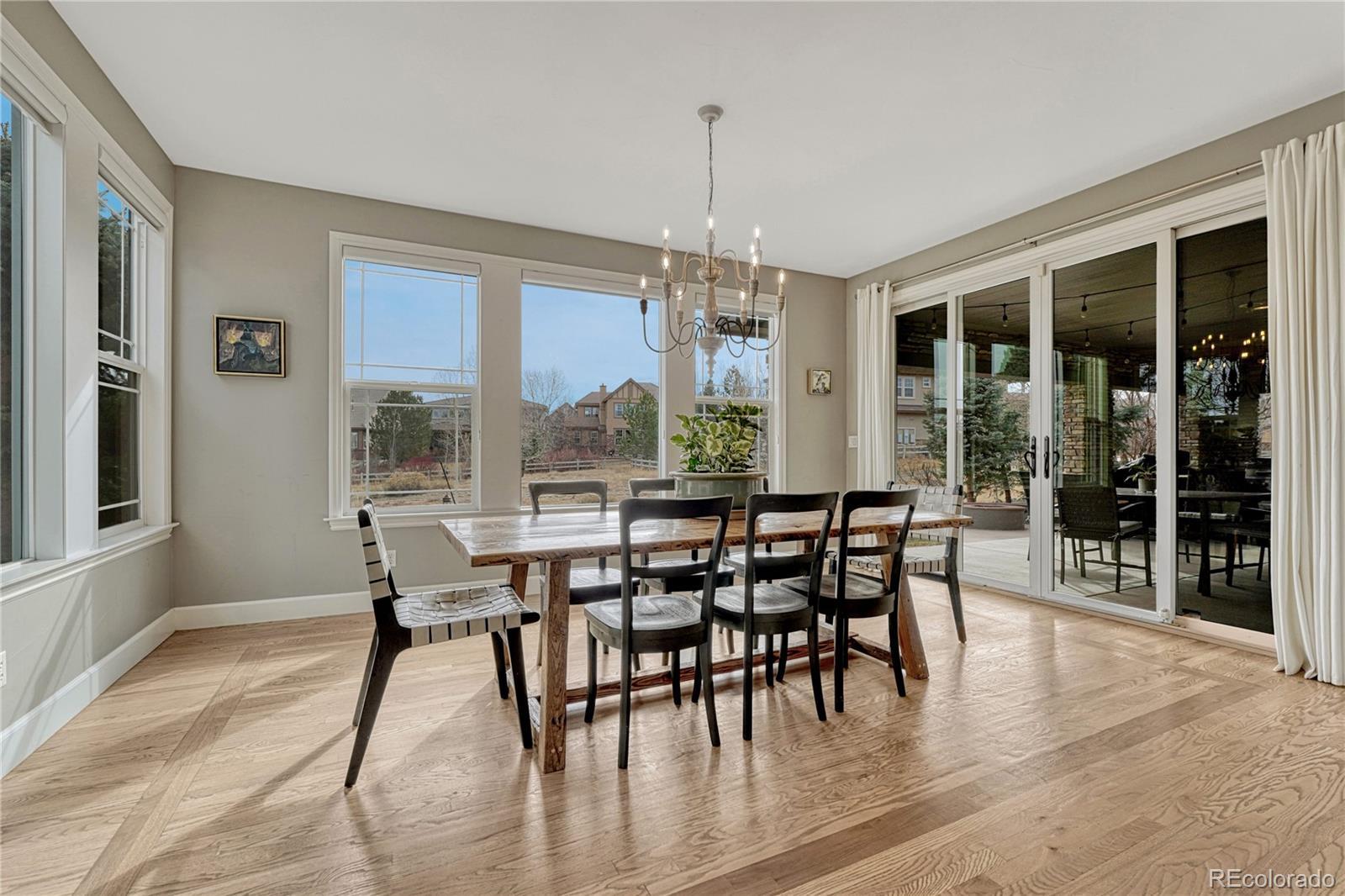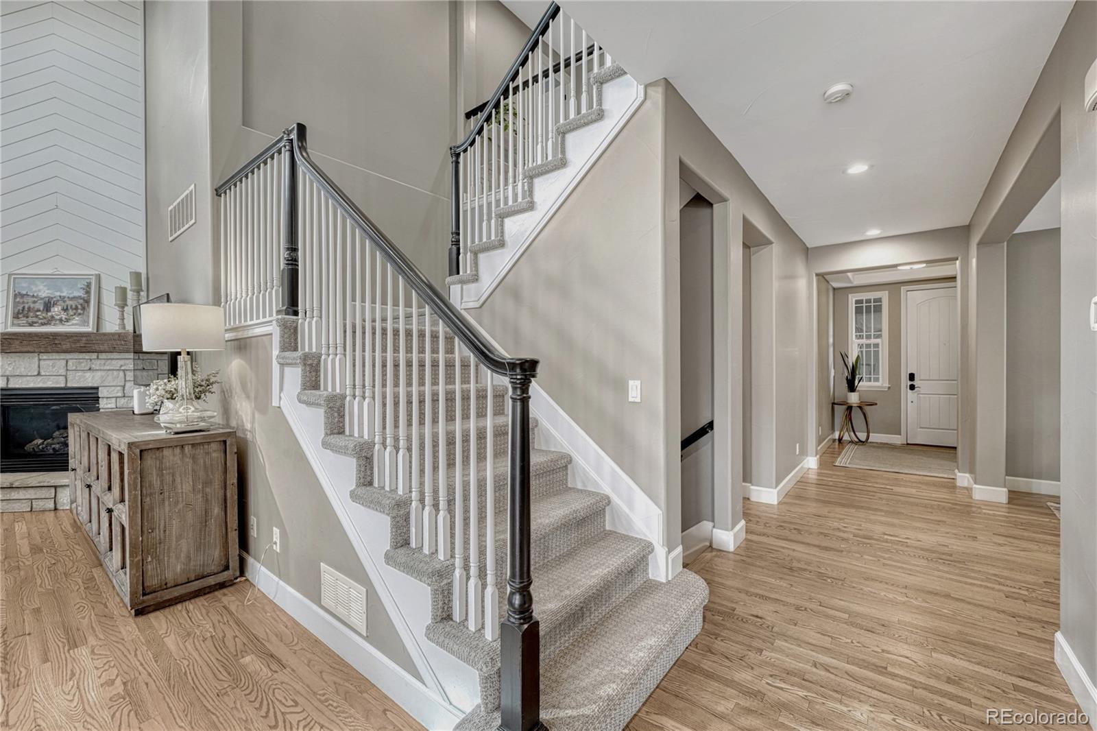 ** Professional Photography will be available on 02/25 ** Set within the gates of the highly desired BackCountry neighborhood, this Serenity Star home embodies elevated Colorado living, where refined design meets an unparalleled lifestyle. Tucked on a quiet cul-de-sac in one of the community’s most mature enclaves, the home backs to green space, offering rare privacy while remaining moments from Highlands Ranch amenities. From the moment you enter, the home exudes sophistication, light, and thoughtful detail. A dramatic two-story great room serves as the architectural centerpiece, with expansive windows filling the space with natural light and a striking stone fireplace anchoring the room. The adjacent kitchen flows seamlessly into a generous breakfast nook, perfect for daily living or entertaining. The former formal dining room has been transformed into an intimate sitting salon with a white wood fireplace and artisan tilework. Main-level finishes include hard-surface flooring, smooth troweled walls, updated lighting, and refreshed kitchen, laundry, and bath surfaces. A private guest suite with full bath which can also serve as an office, an elegant powder room, and a functional laundry space complete the main level. Upstairs, four bedrooms and three baths are arranged with intention. The primary suite offers a serene retreat, both connected and secluded, while the three secondary bedrooms are thoughtfully positioned down the hall. The finished lower level expands the home for recreation and relaxation, featuring two additional bedrooms, a dual-vanity bath, a family room, and a wet bar with island. A large recreation area accommodates games or gatherings, and an unfinished room provides space for a fitness area. With seven bedrooms and six bathrooms, this home offers the ultimate BackCountry lifestyle—private trails, resort-style amenities, and a seamless connection to nature.