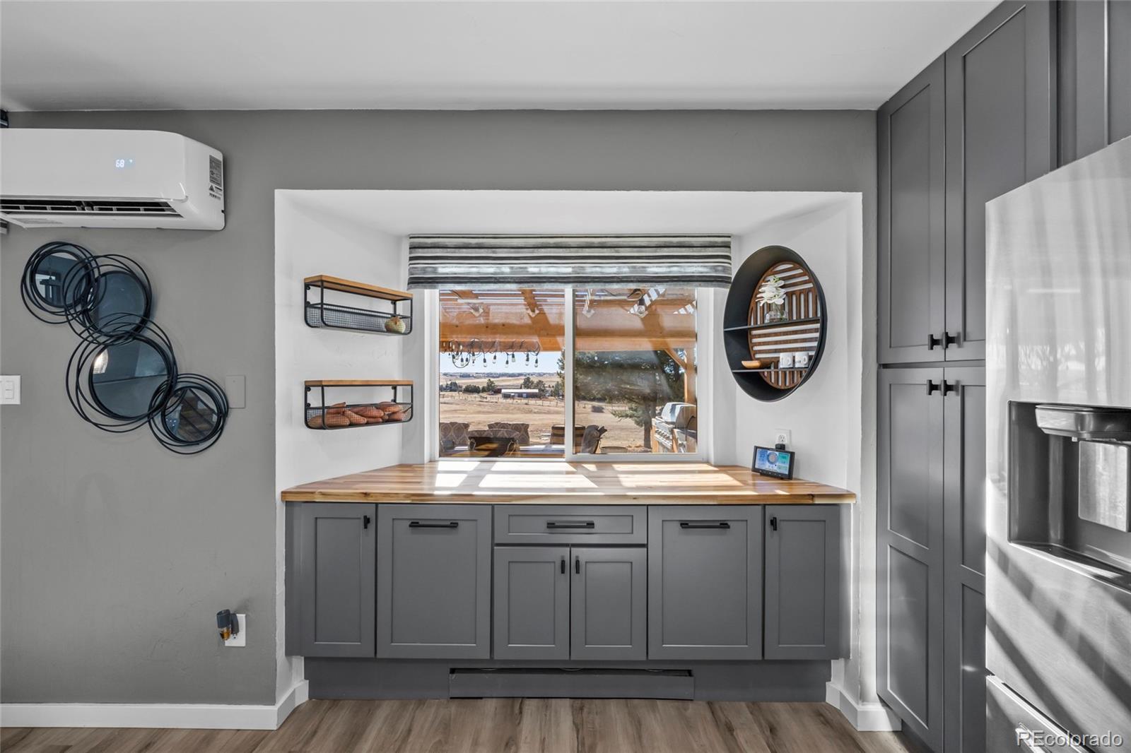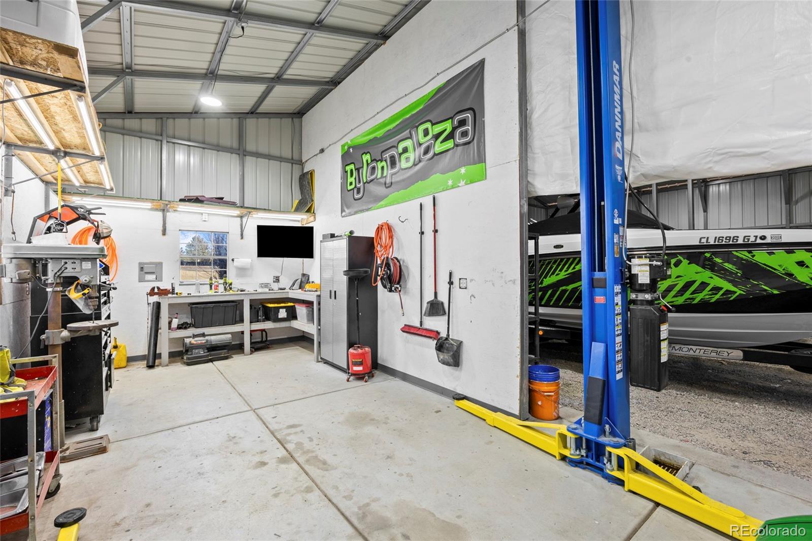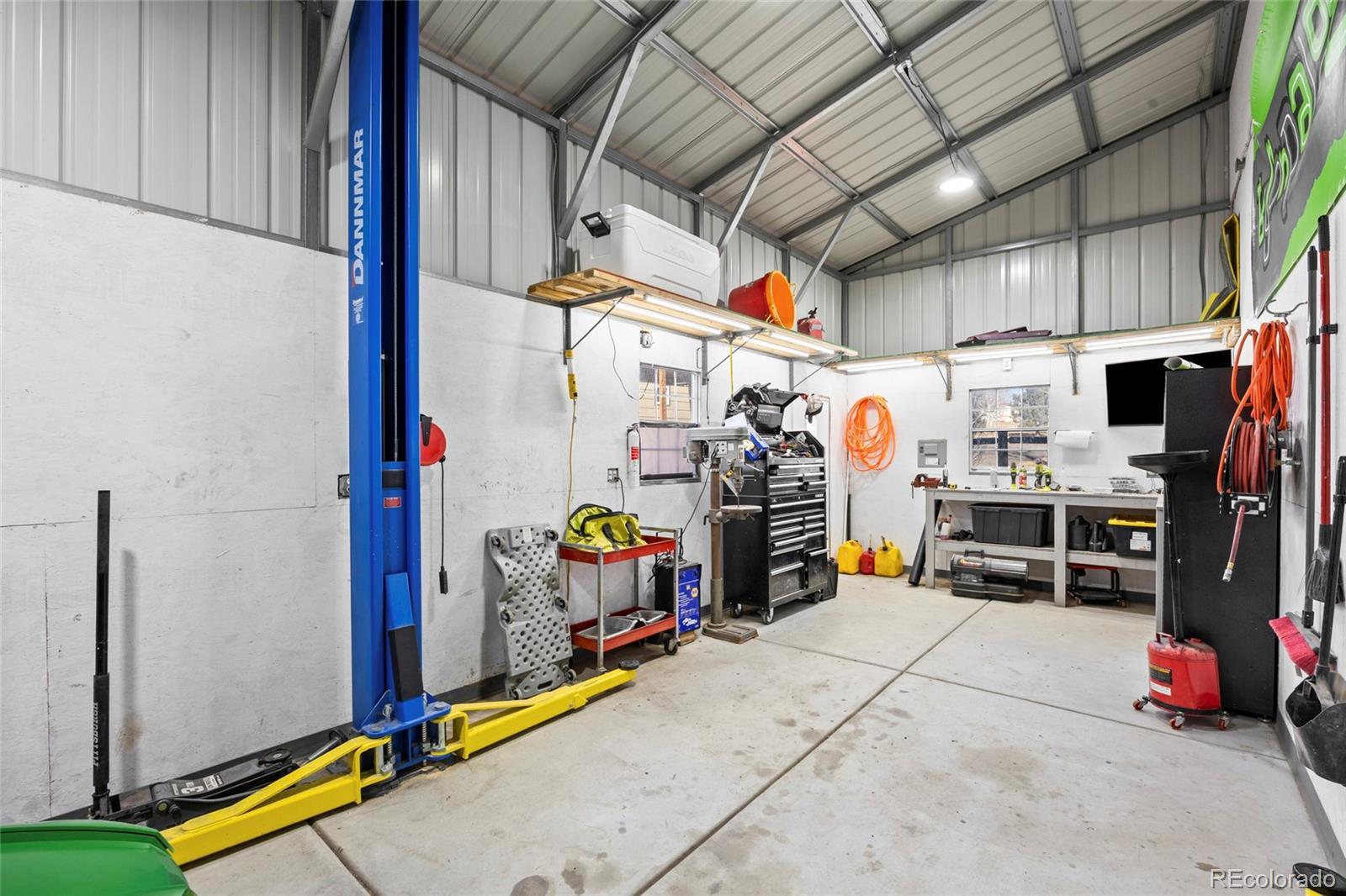 Immaculate, fully remodeled 4-bedroom, 3-bath home on 5 acres just 15 minutes from downtown Parker and Southlands area, offering breathtaking Pikes Peak mountain views!! This turn-key acreage property has been completely updated inside and out. The main level features a bright living room with extended LVP flooring and a stunning remodeled kitchen with quartz countertops, new cabinetry, tile backsplash, pantry with pullouts, butcher block counter with built-in pet feeding station, stainless steel appliances, modern open shelving, breakfast bar, and eat-in dining. Step outside to an expansive outdoor living space with covered pergola and outdoor kitchen, complete with gas plumbed grills and perfect for entertaining. The upper level showcases an oversized primary suite with private balcony to enjoy the serene views, spa-inspired bath with dual sinks, dual-head walk-in shower, and a custom walk-in closet that's anyone's dream. The lower level offers a cozy family room with updated stone fireplace, plus a bedroom and renovated ¾ bath. A finished basement adds two additional bedrooms with newer egress windows and shared ¾ bath. There's a convenient mudroom, separate laundry with utility sink, and abundant storage throughout. Ideal for RV owners, car enthusiasts, or home-based businesses, the property includes an oversized attached 2-car garage, detached 2-car garage, 2,250 sq ft metal RV/outbuilding with included 10K 2-post car lift, and a 780 sq ft barn with water and electricity—bring your horses or chickens! The property includes an RV dump and RV power hookups as well. Other features include two mini-split cooling units, new stucco and paint, newer windows and roof, new well pump, hot tub hookups and partial fencing with exception to a small section of the front of the property. Furniture and equipment may be included - call the listing agent for more info. A rare opportunity for Colorado country acreage living with NO HOA and close to town!