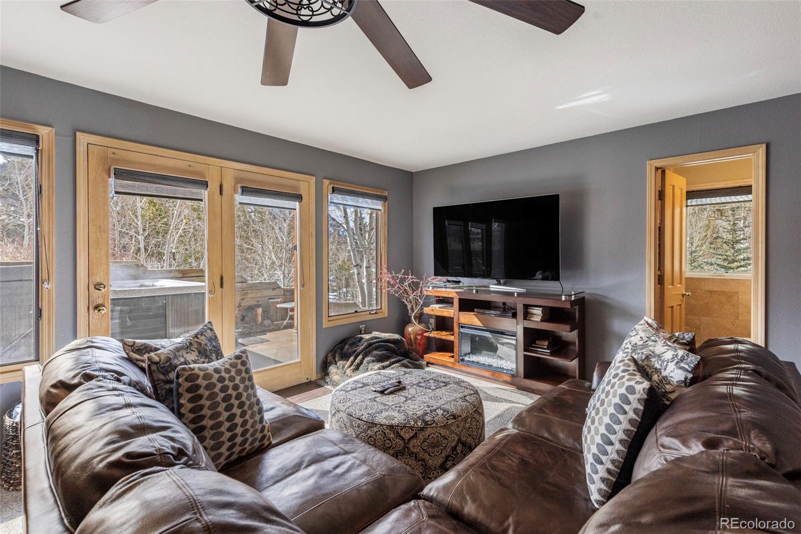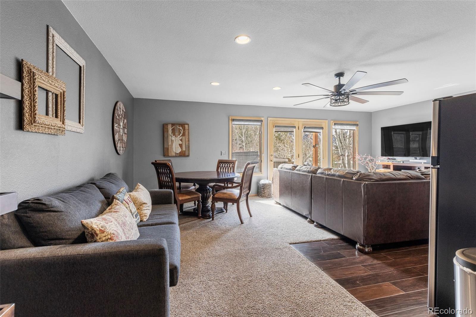 Stunning views of Mount Royal fill the wall of windows in this sunny-side Frisco duplex/townhome. Offering 4 bedrooms plus a loft, vaulted ceilings, and abundant natural light, the open living area flows to a large deck with panoramic mountain views. The lower level features a bedroom with a wet bar and a private patio, ideal as a guest suite or second living area. Complete with a 2-car attached garage and an unbeatable location near Main Street and trails, this is mountain living at its best. Town of Frisco has a 1% transfer tax.