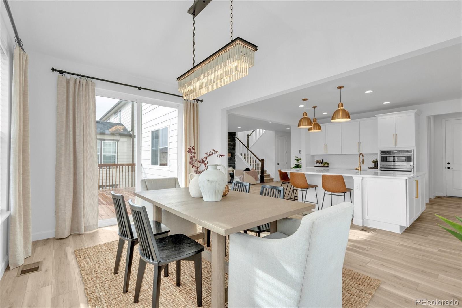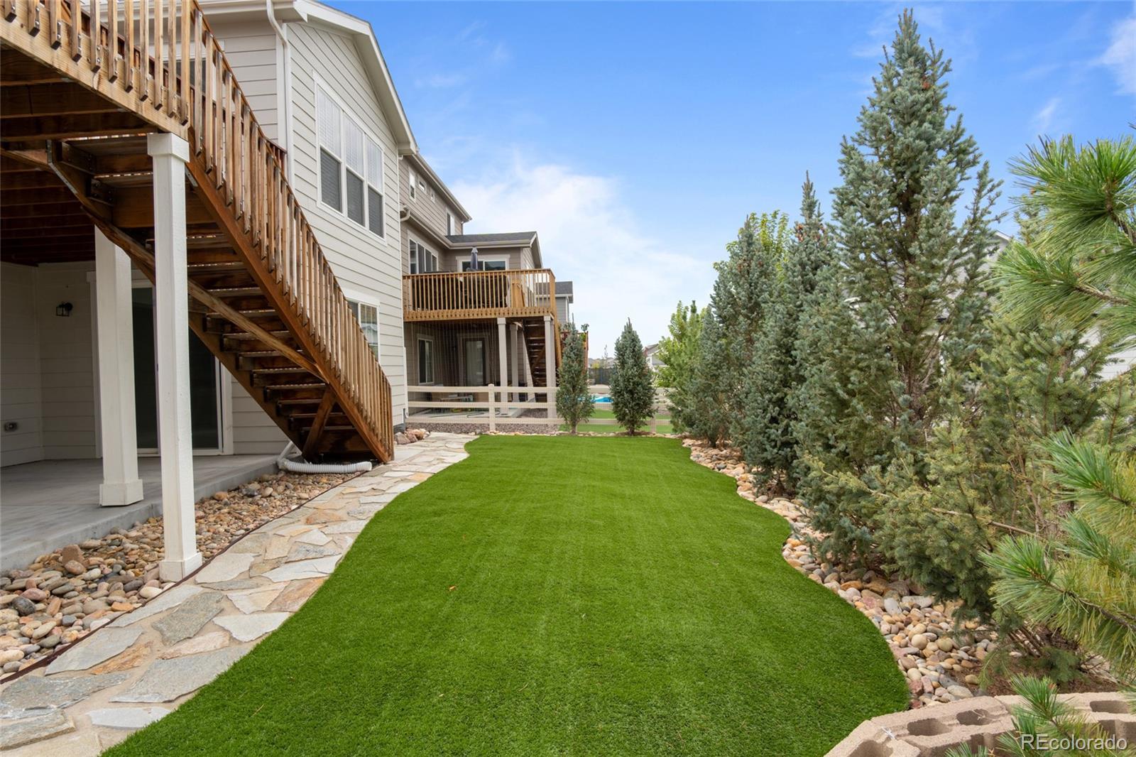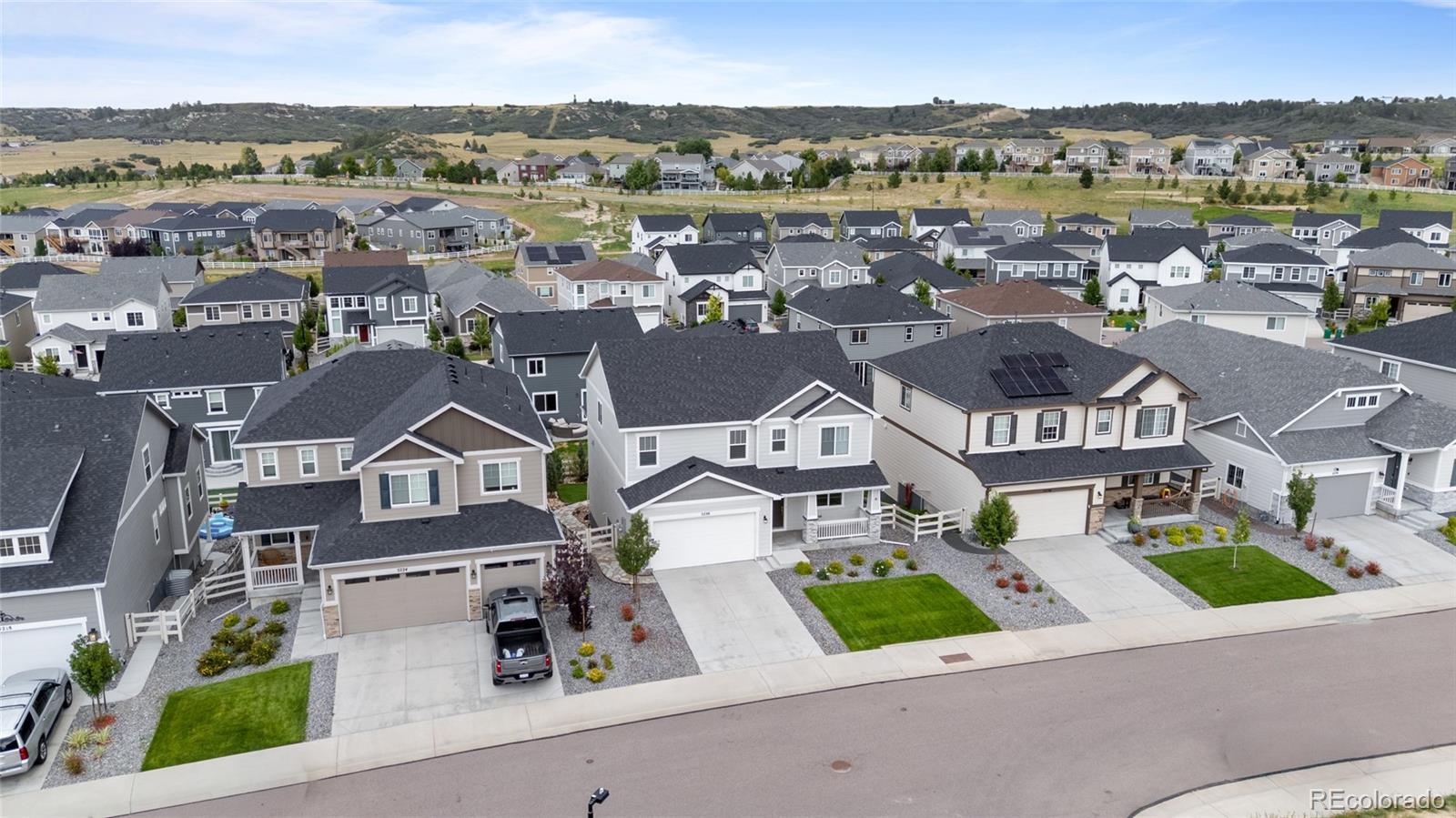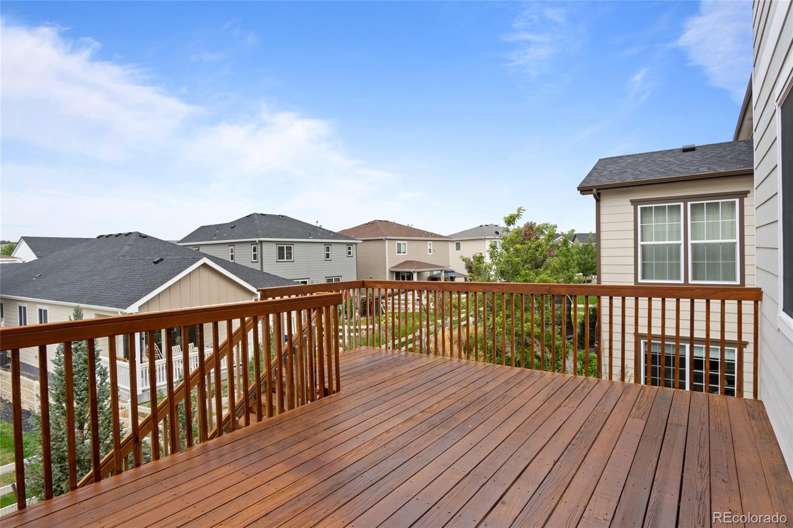 5230 Ditmars Lane offers space, privacy, and high level finish in a move in ready home with thoughtful upgrades throughout. This 5 bedroom, 4 bathroom property presents a functional layout, strong natural light, and consistent care across every level. The large gourmet kitchen features generous prep space, abundant cabinetry, and a large eat in dining area, with open flow into the main living spaces suited for daily living and entertaining. Luxury vinyl plank flooring adds durability and style across the primary areas. A dedicated office with French doors provides a quiet, enclosed workspace ideal for remote work or study. The fully finished walk out basement expands usable square footage with flexible space for guests, media, fitness, or multi generational living. Outdoor living stands out with a beautifully stained deck overlooking the landscaped backyard. Mature evergreen trees are thoughtfully placed to create privacy and a peaceful setting, giving the yard an established, park like feel. Location adds daily lifestyle value with nearby regional park access and connected trail systems for walking, running, and biking. Downtown Castle Rock shops, dining, and local amenities sit a short drive away, offering convenient access to restaurants, boutiques, and community events. Exceptionally clean and meticulously maintained, the home shows with a level of care and finish that surpasses many newly built properties. Turnkey condition, strong bedroom count, finished lower level, and established landscaping make this one worth a close look.
