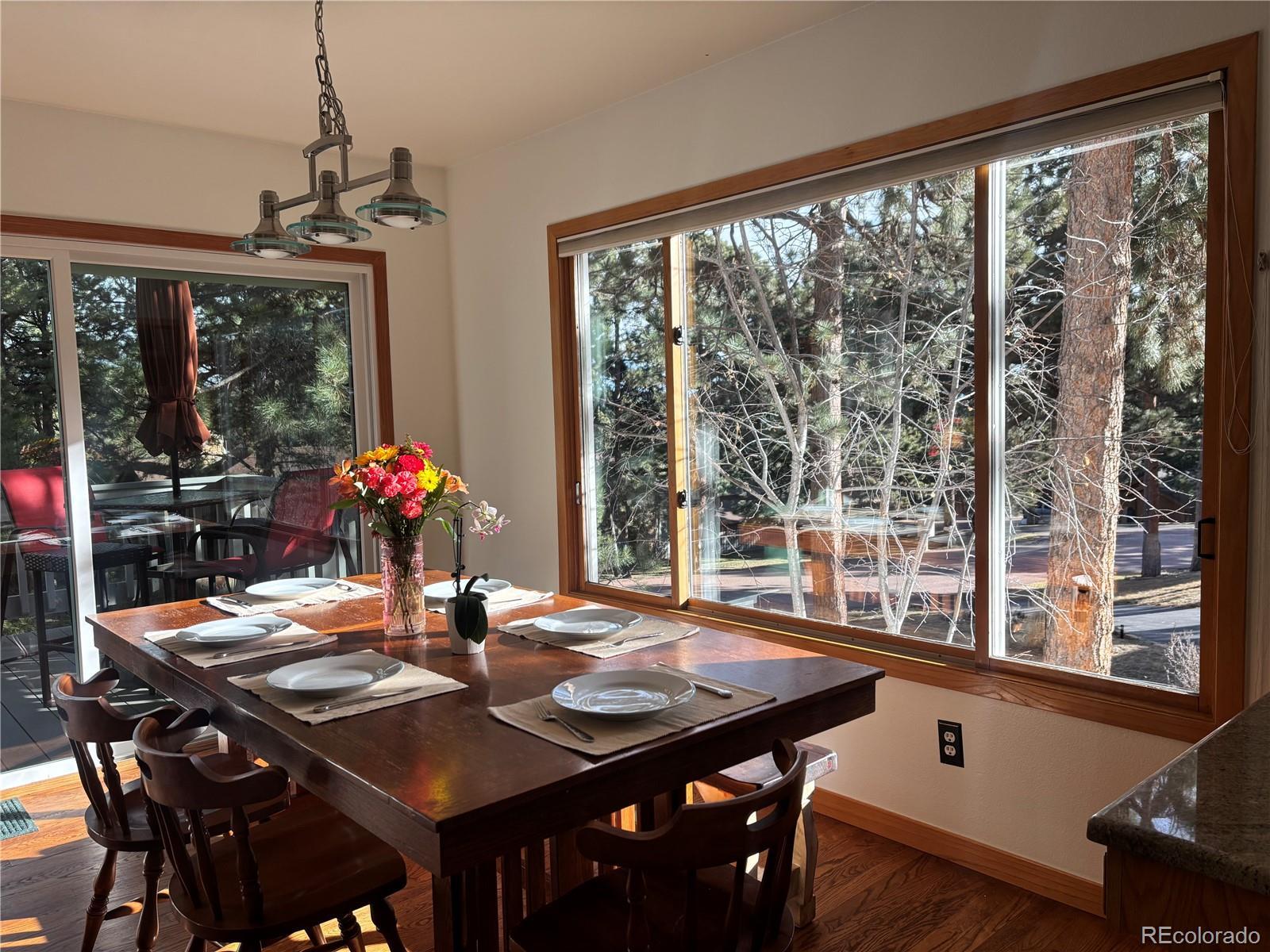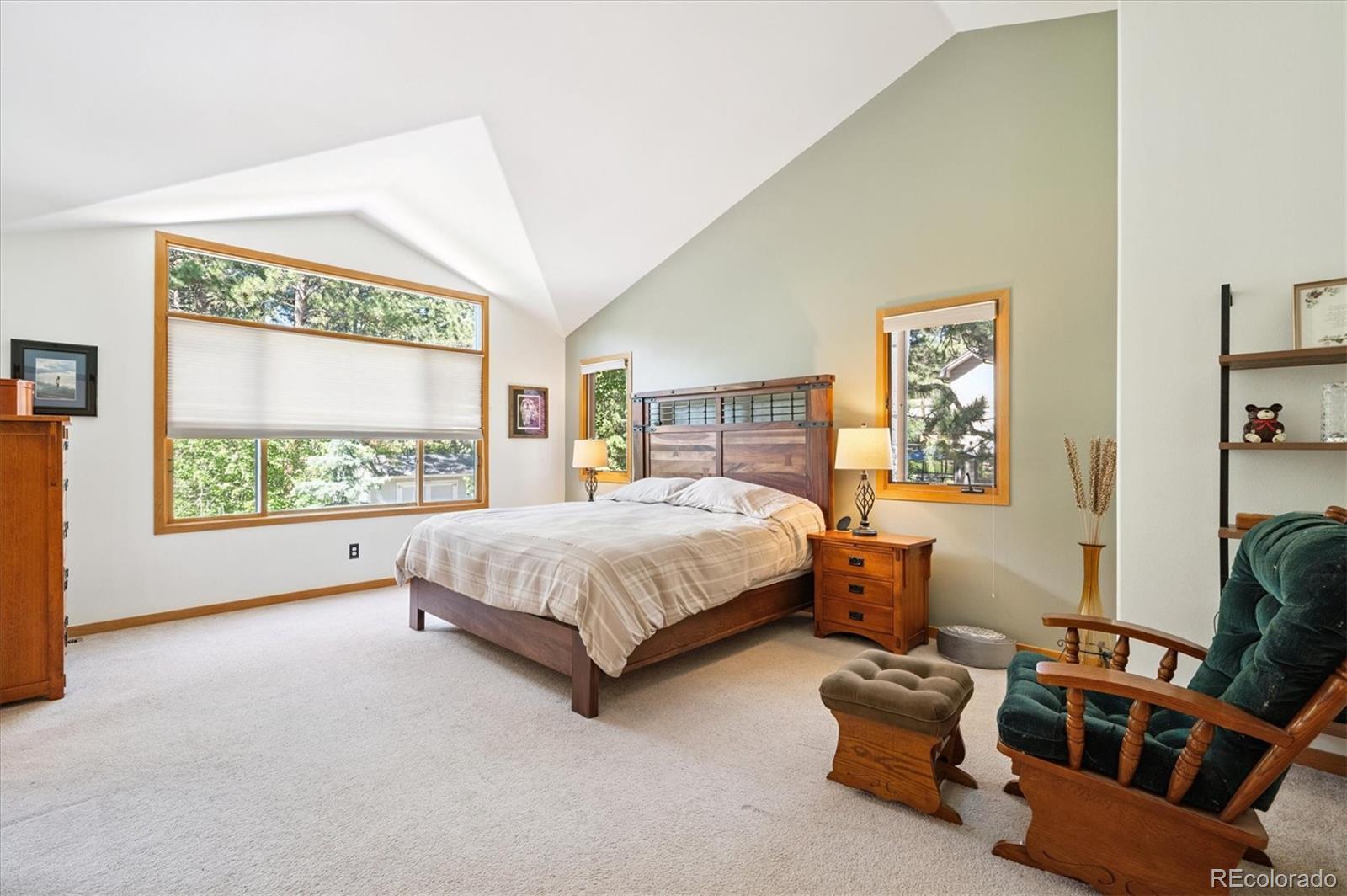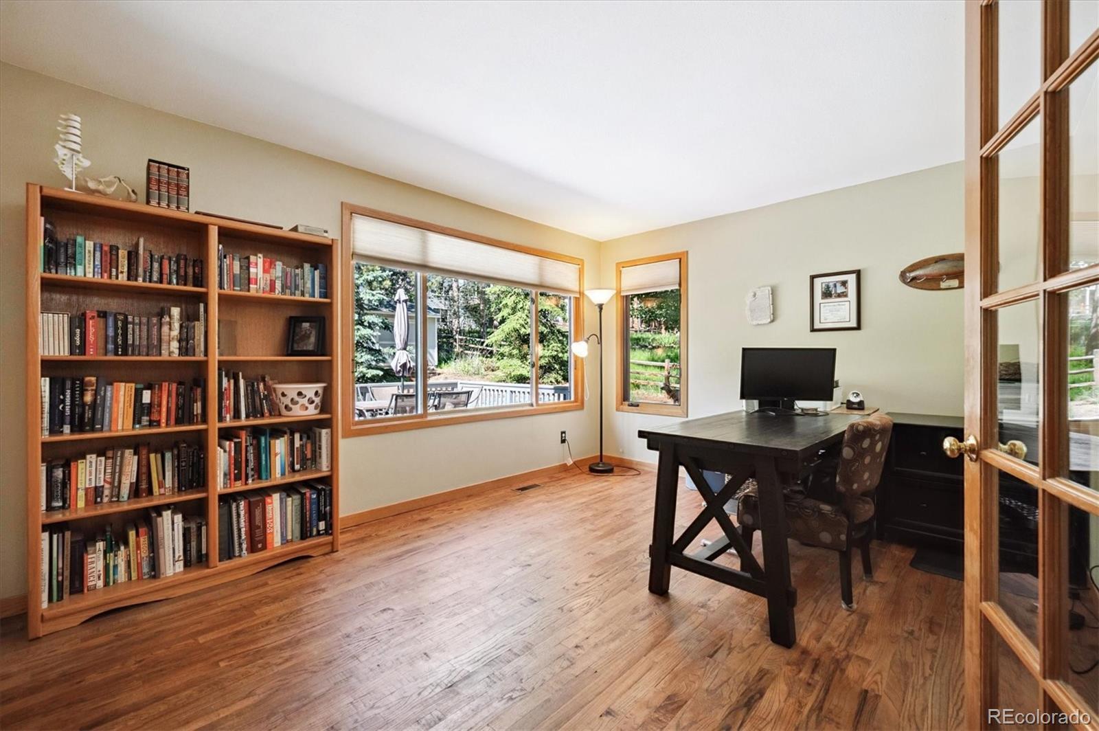 Just Reduced for exceptional value in Evergreen home. We’ve just reduced the price to create unbeatable value for the savvy buyer, imagine cozy winter nights by the fireplace and hosting festive gatherings in your new mountain home. Enjoy the Evergreen Experience! Welcome to Hiwan, a picturesque and well-established neighborhood nestled in the foothills of the Rocky Mountains. Known for its scenic beauty and rustic charm, Hiwan boasts architecturally distinctive homes surrounded by towering pines and winding roads. With a cul-de-sac location and well-respected schools this stunning Genesee-built home offers 3,800 square feet of finished living space where mountain serenity meets modern convenience. Ideally located near the Hiwan Golf Course, the home offers easy access to both outdoor adventures and community amenities. Ride your bike to Elk Meadow Park for exceptional mountain biking or jump on I-70—just five minutes away—for a smooth commute to DIA, downtown Denver, or world-class ski resorts. Inside, you will find vaulted ceilings, abundant natural light, hardwood floors, and two cozy gas fireplaces. The kitchen features a sunlit eat-in nook, perfect for casual meals, while the formal dining room and adjacent deck make entertaining a breeze. A main-level office offers flexibility for remote work, and the upper-level primary suite is a true retreat with a vaulted ceiling. Upstairs, the laundry room adds everyday convenience. The finished basement includes two spacious bedrooms with egress windows, a large recreation room, and a full bathroom—perfect for guests or multigenerational living. Out back, a large deck with a hot tub invites you to relax under the stars. Just off the kitchen, an additional deck provides the ideal spot for summer BBQs. Complete with a three-car garage (3rd stall for that golf cart) and a coveted storage shed, this home is mountain living at its finest.