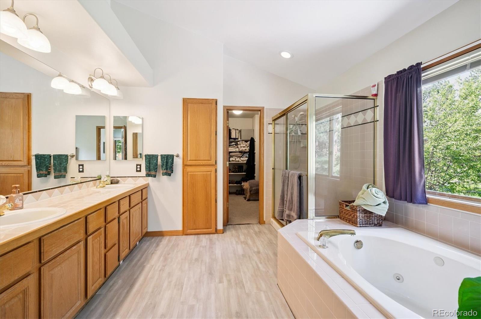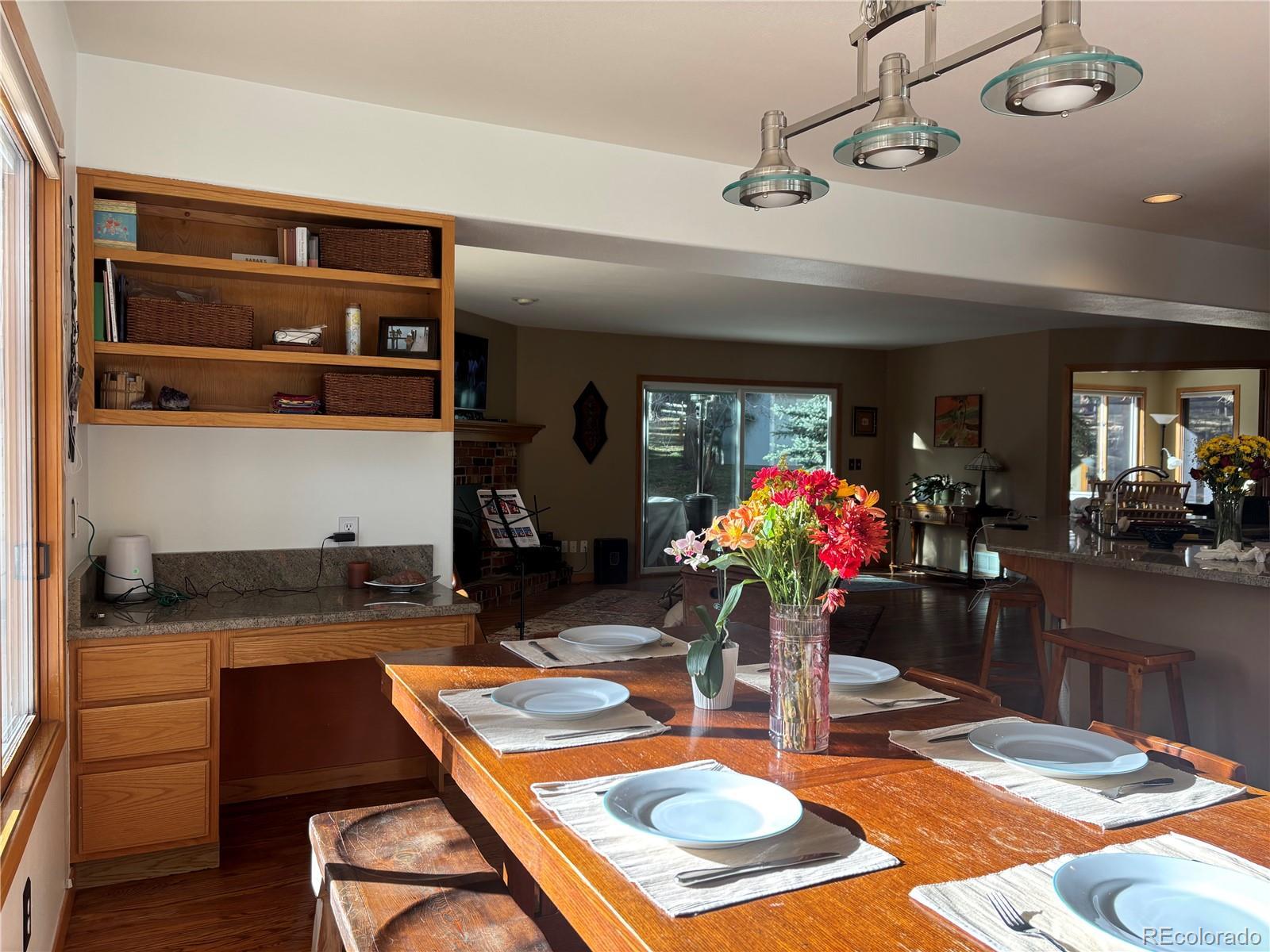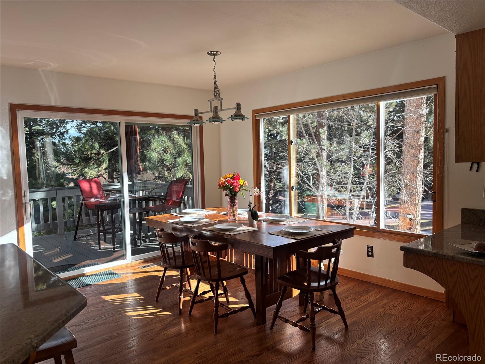 Just Reduced for exceptional value in Evergreen home. We’ve just reduced the price to create unbeatable value for the savvy buyer, imagine cozy winter nights by the fireplace and hosting festive gatherings in your new mountain home. Enjoy the Evergreen Experience! Welcome to Hiwan, a picturesque and well-established neighborhood nestled in the foothills of the Rocky Mountains. Known for its scenic beauty and rustic charm, Hiwan boasts architecturally distinctive homes surrounded by towering pines and winding roads. With a cul-de-sac location and well-respected schools this stunning Genesee-built home offers 3,800 square feet of finished living space where mountain serenity meets modern convenience. Ideally located near the Hiwan Golf Course, the home offers easy access to both outdoor adventures and community amenities. Ride your bike to Elk Meadow Park for exceptional mountain biking or jump on I-70—just five minutes away—for a smooth commute to DIA, downtown Denver, or world-class ski resorts. Inside, you will find vaulted ceilings, abundant natural light, hardwood floors, and two cozy gas fireplaces. The kitchen features a sunlit eat-in nook, perfect for casual meals, while the formal dining room and adjacent deck make entertaining a breeze. A main-level office offers flexibility for remote work, and the upper-level primary suite is a true retreat with a vaulted ceiling. Upstairs, the laundry room adds everyday convenience. The finished basement includes two spacious bedrooms with egress windows, a large recreation room, and a full bathroom—perfect for guests or multigenerational living. Out back, a large deck with a hot tub invites you to relax under the stars. Just off the kitchen, an additional deck provides the ideal spot for summer BBQs. Complete with a three-car garage (3rd stall for that golf cart) and a coveted storage shed, this home is mountain living at its finest.