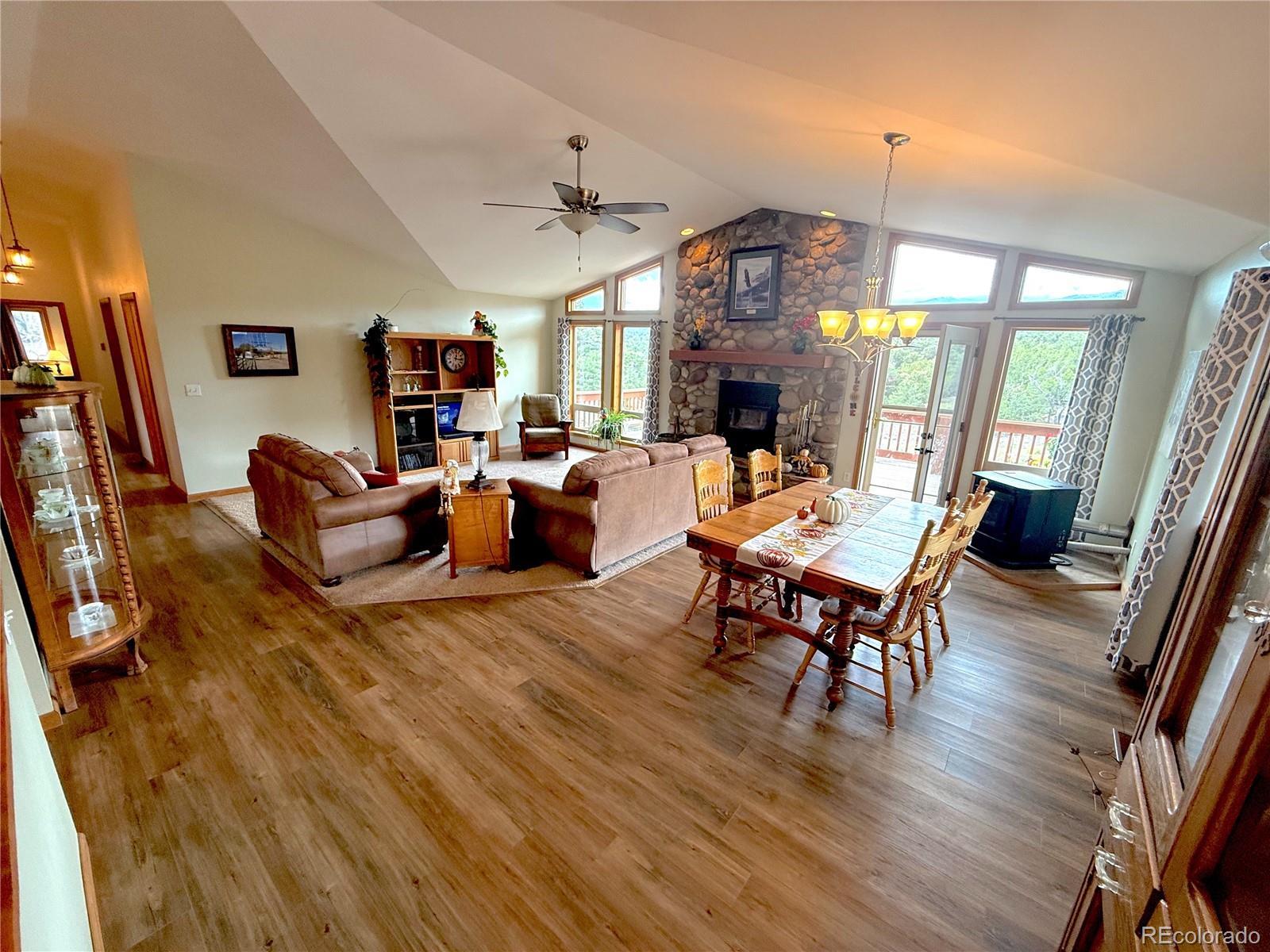 Discover this breathtaking 37.74-acre property, where a harmonious mix of pasture land, rolling hills, and wooded landscapes awaits. Ideal for those looking for land to raise your livestock and animals on, this property provides a domestic well and an expansive environment with corrals already in place for your convenience. Tucked away among the trees, the inviting four-bedroom, three-bathroom residence offers complete privacy while still being conveniently located just off Highway 50. Fencing is done on 3 sides of the property but is open between the neighboring lot. There is a fenced in area for your dogs and little ones in both the front yard and the back. The mostly finished basement features a walkout that presents stunning views of the impressive Sangre De Cristo Mountains. In the winter months, cozy up by the exquisite river rock fireplace, relishing the warmth as you gaze at the snowy mountaintops. The primary bathroom is in the midst of a chic transformation. This is truly a MUST SEE property!! Property Website https://imprv.co/yew282