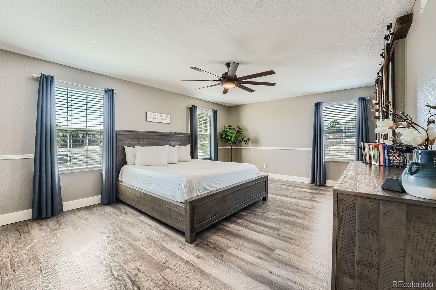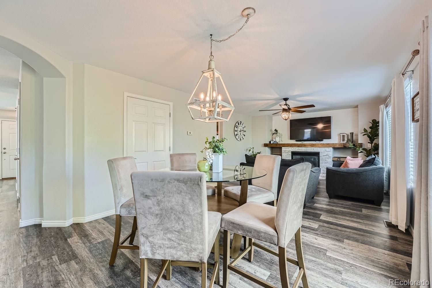 Imagine a home where every detail has been thoughtfully designed to nurture memories for years to come. Located in the beautiful Bradbury Ranch community, this two-story residence offers the perfect balance of comfort, lifestyle, and convenience. As you step through the front door, you’re greeted by a warm, inviting space where sunlight flows through large windows, highlighting the new wide-plank floors that span the entire main level. The heart of the home, the kitchen, is both functional and beautiful. Abundant cabinetry, stainless steel appliances, and expansive countertops make meal prep a breeze. This kitchen is where busy mornings begin and peaceful family dinners end. Adjacent, the cozy family room ensures that no one is ever far from the action, whether it's the kids playing or guests enjoying coffee and conversation. Step outside to a backyard oasis, complete with a newly built Trex deck. String lights twinkle above, creating a magical atmosphere for warm summer evenings. The low-maintenance turf and dedicated pet space make this yard as practical as it is beautiful, all while offering breathtaking mountain views. The fully finished basement offers endless entertainment possibilities. Whether you’re hosting a movie night in the spacious rec room, crafting at the built-in bar, or letting little ones explore their private playroom hideaway, the basement adapts to all needs. A second laundry room, additional bedroom, and bathroom add convenience, perfect for guests or family expansion. The home’s location is unbeatable—just a block from the community pool and a short drive to shopping, dining, and top-rated schools. With easy access to E-470 and I-25, commutes to DTC or DIA are a breeze. This Bradbury Ranch home offers everything you need to build a life of joy, and lasting memories.