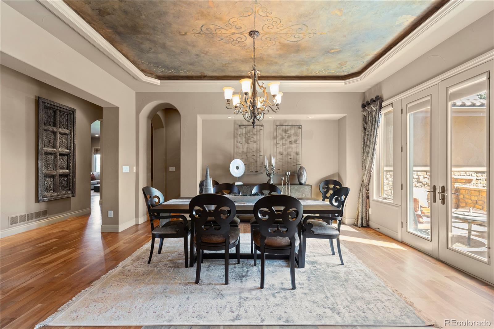 Welcome to an extraordinary estate in the coveted enclave of Estancia Village in East Centennial. This grand masterpiece spans over 8,700 square feet of refined living, blending timeless architecture with modern sophistication. From the moment you arrive, the home commands attention with its stately curb appeal, expansive lot, water features, and meticulous landscaping. Inside, soaring ceilings, custom millwork, and walls of windows bathe each space in natural light, creating an atmosphere of elegance and warmth. The gourmet kitchen is a chef’s dream, featuring professional-grade appliances, a spacious island, and seamless flow into the formal and casual dining areas—perfect for both intimate gatherings and grand entertaining. The main level also offers inviting living spaces, a private office, and the primary retreat is a sanctuary of its own with a spa-like 5-piece bath, dual walk-in closets, and a private sitting area with a double-sided fireplace. Upstairs, each additional bedroom is generously appointed with en suite baths and designer finishes. The lower level is a destination in itself—complete with a full bar, state-of-the-art theater, private wine chateau, fitness room, and spacious recreation and entertaining areas. Step outside to your personal oasis where expansive patios, lush landscaping, in-ground hot tub and outdoor grill and built-in firepit create endless opportunities for al fresco living. This residence offers a rare opportunity to own one of Estancia Village’s most distinguished homes—where luxury, comfort, and craftsmanship converge. Showings begin Monday, September 22, 2025.