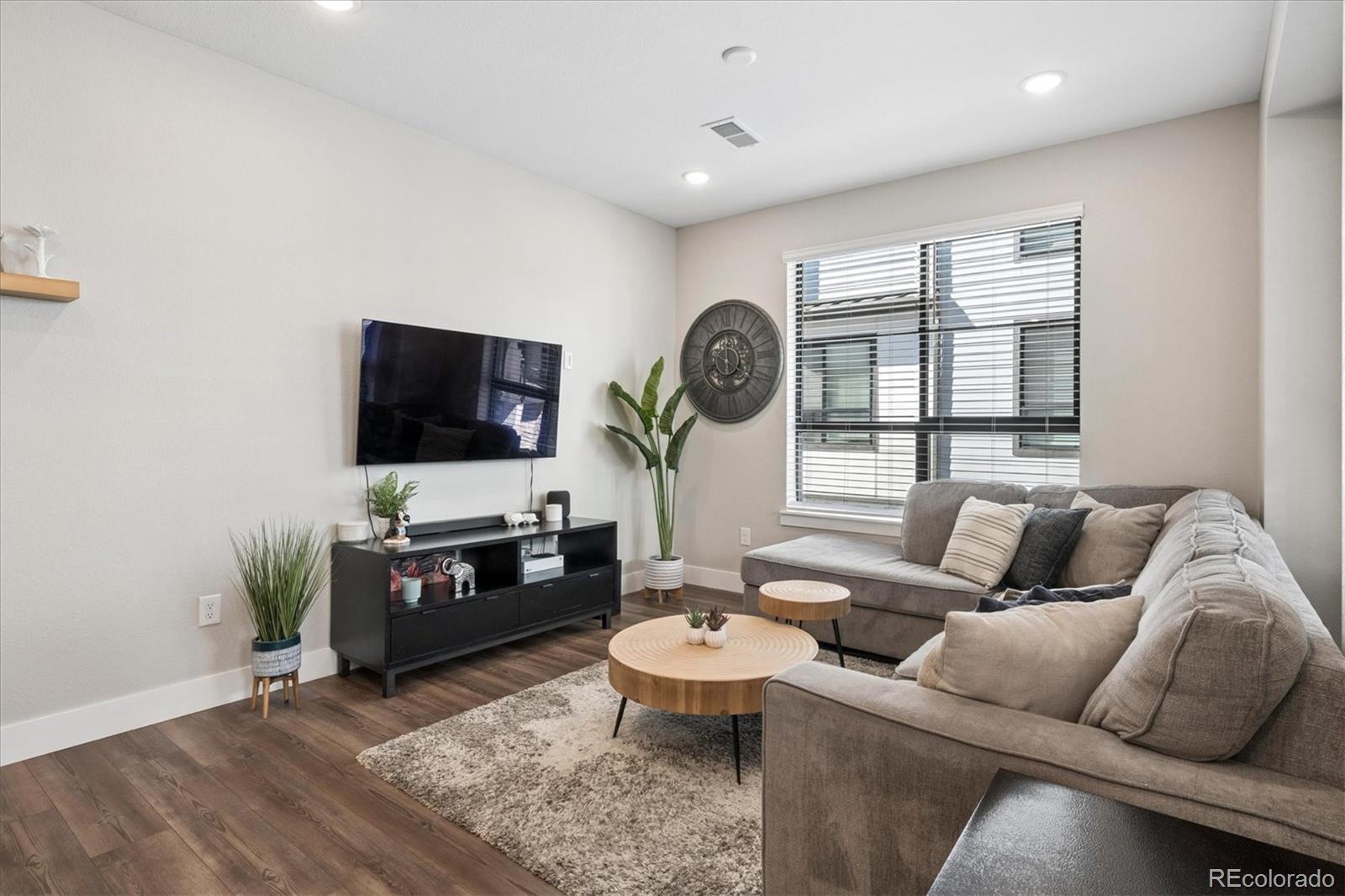 Better-than-new and beautifully upgraded townhome in the highly desirable Virginia Village neighborhood! This three-story floorplan offers 1,291 square feet of modern, low-maintenance living with thoughtful design and premium finishes. Flooded with natural light, step inside to the main level that features a bright, open-concept great room that flows seamlessly to a spacious dining area and contemporary kitchen with an oversized center island, stainless steel appliances, and designer finishes. Sliding glass doors extend the living space outdoors to a generous patio, perfect for relaxing or entertaining. Upstairs, enjoy centrally located laundry access, a secondary bedroom with spacious bath, and a luxurious primary suite with walk-in closet, dual vanities, and walk-in shower. Highlights inside the home include upgraded modern finishes, including window treatments featured in every room, updated ceiling fans, upgraded stair railing and vinyl plank floor. Located within The Hub at Virginia Village, this home offers urban convenience with quick access to Cherry Creek, downtown Denver, and top-tier shopping, dining, and recreation. Community amenities include a dog walking trail, BBQ picnic park, and bocce ball court. With move-in readiness, modern design, and select upgrades, this home blends comfort, style, and prime location perfectly. Don't miss the opportunity to call this home yours!