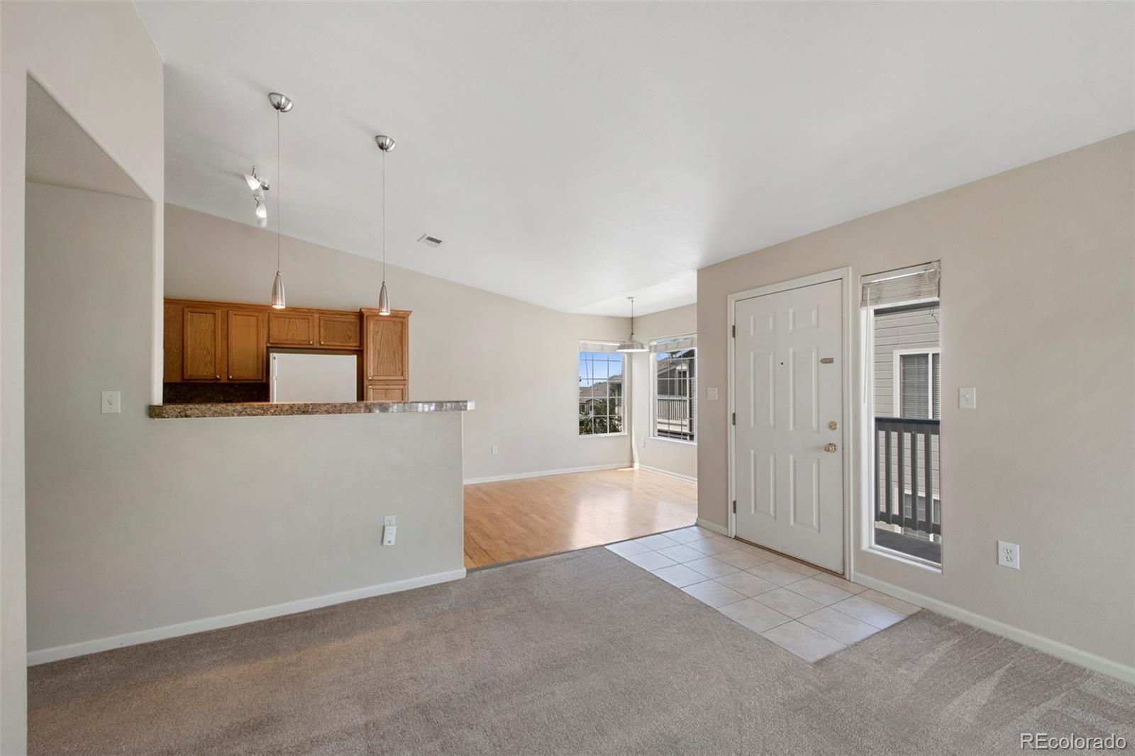 Welcome to your dream condo in the heart of Highlands Ranch! Easy living! No Yard Work! Lock and Leave! This rare 3-bedroom, 2-bath gated community home offers the perfect blend of comfort, style, peacefulness and convenience. Vaulted ceilings and abundant natural light create a bright and airy atmosphere throughout the open-concept living, dining, and kitchen areas—ideal for both entertaining and everyday living. Large Primary Bedroom with your own primary suite. Step outside to your deck and enjoy fresh air and sunshine right at home. The cozy yet spacious layout includes a convenient in-unit laundry and a detached one-car garage (25-H)—no more scraping snow in the winter! Live on the 2nd floor in peace and quiet with no overhead noise. Situated in an unbeatable location, you'll be just minutes from shopping, dining, parks, and all the top-notch amenities Highlands Ranch has to offer along with the amenities that go along with Canyon Ranch (Fitness Center, Gated Pool, Clubhouse) Don't miss this incredible opportunity.