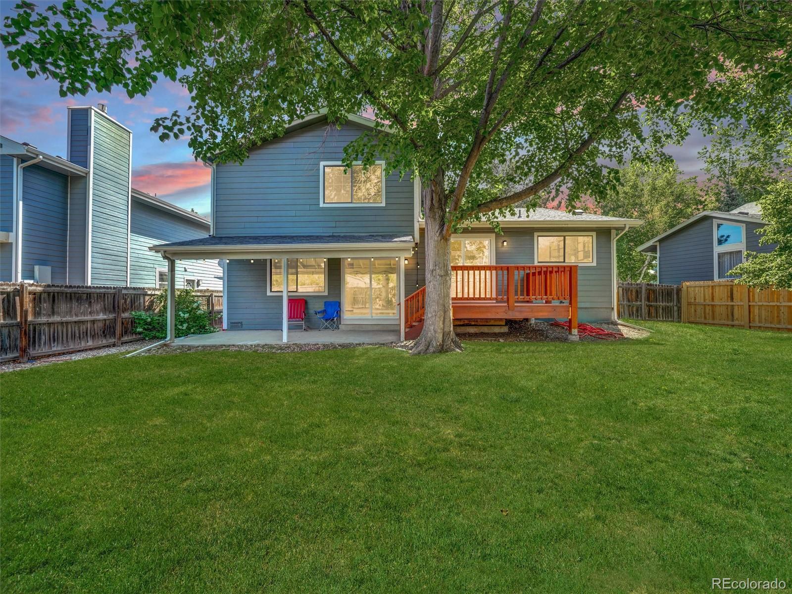 Beautifully remodeled home in prime location - Cherry Creek schools & Reservoir nearby! Discover this stunning, fully remodeled 4-bedroom, 4-bathroom home located just minutes from Cherry Creek Reservoir and within the highly sought-after Cherry Creek School District. Situated on a spacious lot with mature trees and a large, fenced backyard, this property offers both comfort and convenience in a serene setting. Step inside to soaring vaulted ceilings in the living room, dining room, kitchen, and primary bedroom, creating an airy and elegant atmosphere. The beautifully updated kitchen features abundant cabinetry, sleek quartz countertops, and a layout perfect for entertaining. Enjoy cozy evenings by the fireplace in the family room or host gatherings on the deck off the kitchen and the covered patio just steps away. This home is built for modern living with two laundry areas - upstairs and in the fully finished basement - plus an unlimited tankless hot water system. The flooring is a durable and quality waterproof laminate offering the warmth of hardwood and the strength to survive today's busy lifestyle. The insulated and finished garage adds extra comfort and functionality. Extra insulation has been recently blown into the attic for added comfort and energy efficiency. Exterior upgrades include durable Hardy Plank siding, new gutters, and Class 4 hail-resistant shingles for added peace of mind. Best of all, there are NO mandatory HOA fees and NO metro district taxes. A preferred lender is offering an interest rate buy-down, making this home an even more attractive opportunity. Don't miss your chance to own this move-in-ready gem in an unbeatable location!