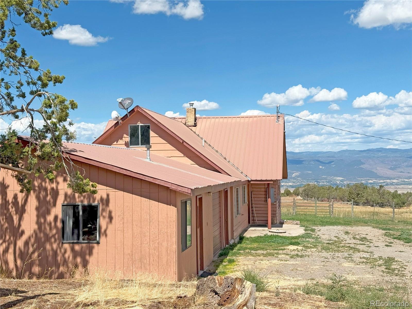 Historic Family Ranch with Irrigated Acreage & Breathtaking Views. First homesteaded by the same family in 1929, this 160-acre ranch offers a rare opportunity to own a piece of Western Colorado history. Nestled among open pasture and stands of trees, the property boasts panoramic views of the West Elks, Grand Mesa, and the dramatic Red Canyon to the south. Property Highlights: *Water & Irrigation: 2,100 shares of Fruitland Mesa irrigation water, 2 Fruitland Mesa domestic water taps, and 1 Cathedral water tap provide excellent agricultural and residential resources. *Main Home: A rustic log cabin with 4 bedrooms, 1 full bath, 1 three-quarter bath, and 1 half bath, blending classic character with modern function. *Attached ADU: One-bedroom, one-bath living space with kitchenette, pellet stove, and electric heating—perfect for guests, extended family, or rental income. *Outbuildings: A spacious shop/garage equipped with 220 power, ideal for equipment, vehicles, or workshop needs. *Wildlife & Setting: Abundant wildlife including elk, deer, and turkeys roam the land. Occasional sightings of bear, bobcat, and mountain lion tracks highlight the untouched natural surroundings. *Lifestyle: Peaceful and private, the ranch is a true retreat where stars shine unobstructed in the night sky. With excellent irrigation resources, open pasture, and room to expand, this property offers exceptional potential for cattle ranching, hay production, or a private mountain getaway.