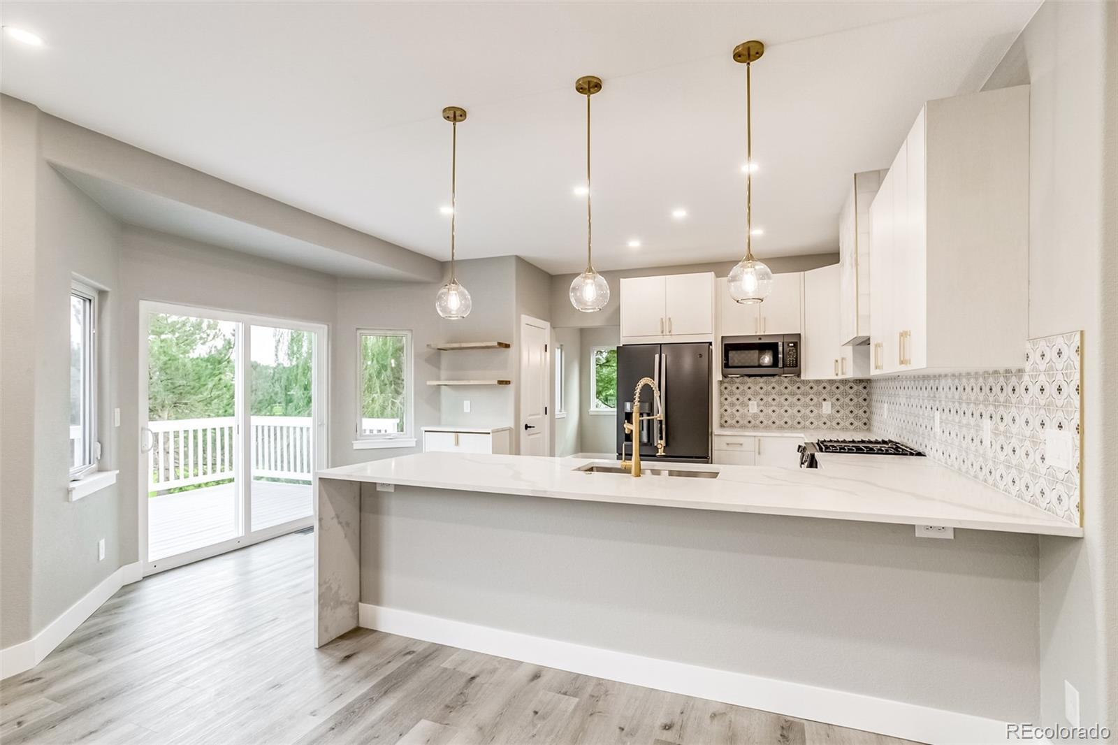Do not miss this beautifully remodeled home on the 12th Hole of the Indian Peaks Golf Course! Thoughtfully updated from top to bottom, this property features tasteful finishes and modern upgrades throughout. Nearly every detail has been refreshed, making it truly move in ready. Step inside to an expansive living room that flows into a formal dining area. Beyond that, you will find a stunning kitchen designed for the home chef, complete with new cabinets, quartz countertops, black stainless steel appliances, and a pantry. The kitchen opens into a comfortable family room featuring a sleek tiled fireplace wall ready for your television. The main floor also includes a flexible office or bedroom space, a three quarter bath, and a convenient mudroom. Upstairs, the generous primary suite offers a well appointed bathroom with a large shower, soaking tub, and a spacious walk in closet. The upstairs laundry room makes everyday tasks a breeze. Three additional bedrooms and a full bathroom complete the upper level. The fully finished walkout basement provides even more living space with an additional bedroom, bathroom, and a stylish wet bar and recreation area. Enjoy evenings on the large back deck that overlooks the expansive yard and the scenic golf course beyond. Tucked away at the end of a quiet cul de sac, this home offers comfort, space, and unbeatable views. Conveniently located near everything Old Town Lafayette and Old Town Louisville have to offer, with easy access to both I-25 and Highway 36. Located within the highly rated Boulder Valley School District.