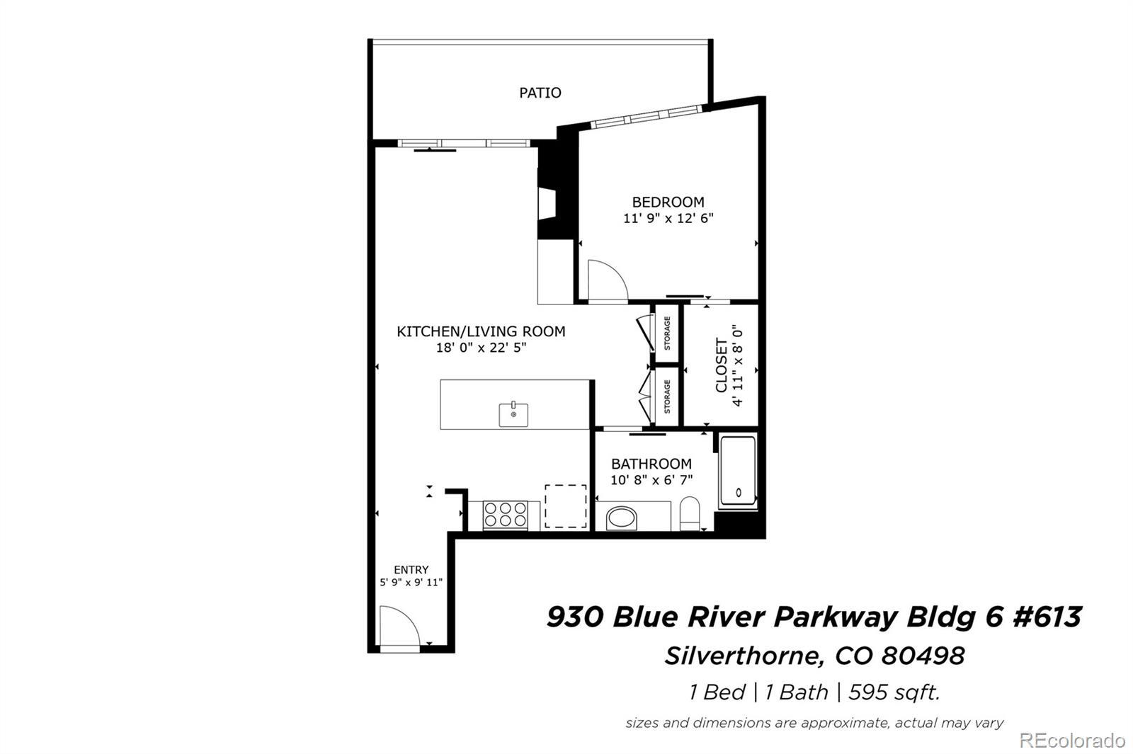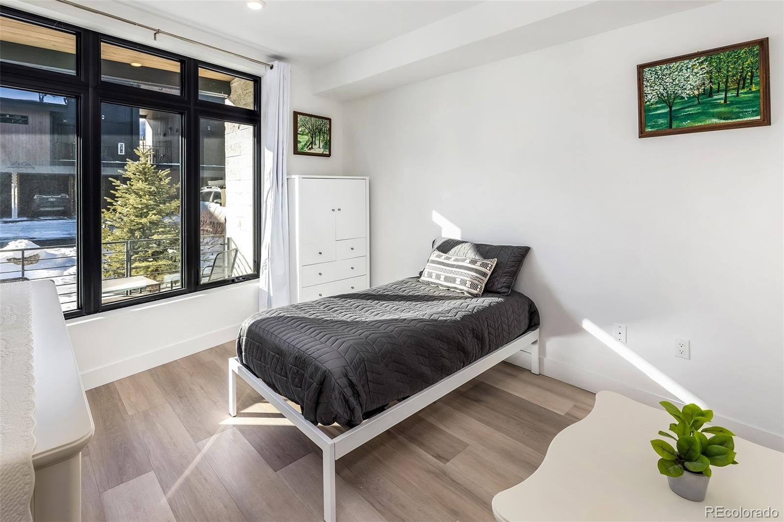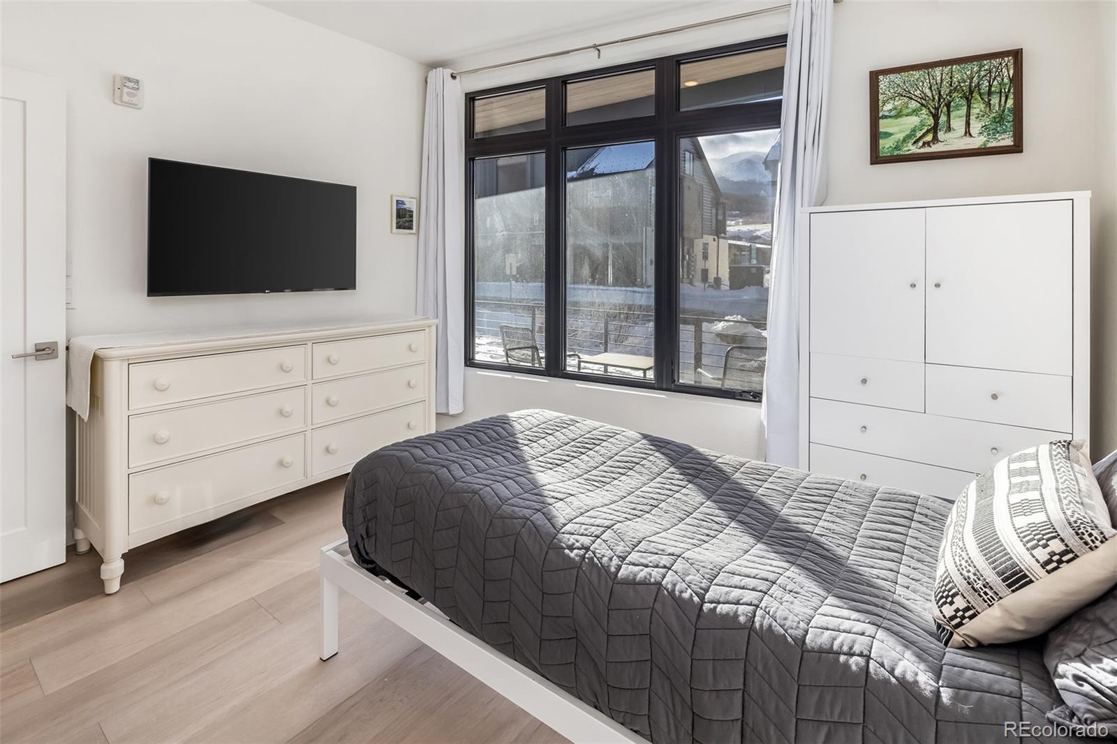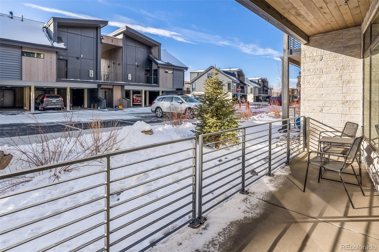 Welcome to the Rockies and your new Summit County basecamp for all your mountain adventures! Built in 2020, enjoy the modern build and finishes throughout this River West Condos. Bright wood floors and white tile contrast perfectly with the dark wood finishes of the cabinets, trim and doors. The waterfall leathered quartz countertops act a show piece in the open concept living and kitchen area. The floor to ceiling stone fireplace add to the modern style finishes, providing a warm and comfortable living area after a long day on the ski hill. Enjoy the spacious bedroom and sizable bathroom, both with matching finishes. Located within the up-and-coming town of Silverthorne, boasting growing downtown and arts culture, this property’s easy access to the bike path connects it to all the town events and county ski resorts. From modern finishes to a prime location, make this River West Condo your next home in the Rocky Mountains!