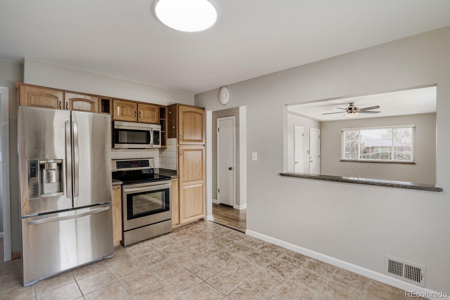 This sprawling ranch is the perfect blend of comfort, style, and peace of mind, all set on a generously sized lot. Step inside to discover newly refinished hardwood floors and a welcoming new front door. The main level boasts a large updated kitchen, Corian countertops, stainless steel appliances, and modern light fixtures. Three spacious, sunlit bedrooms feature fresh paint and updated lighting, while the main level also includes an updated bathroom and a convenient powder bathroom off the largest bedroom. Downstairs, the basement offers a cozy retreat with brand-new carpet, updated lighting, a large family room, a non-conforming bedroom (no egress), and an additional remodeled bathroom. Plus, the newer washer and dryer are included for your convenience. This home is as practical as it is inviting, with major upgrades including a new Class 4 hail-resistant roof (installed in 2026), a newer HVAC system with a humidifier, newer windows throughout, a newer hot water heater, the attic has been resealed and new insulation added, and newer north and south-facing fences. Outside, the backyard is your private oasis, complete with a covered patio off the extra-large two-car garage/workshop, a separate garden area, and a concrete pad perfect for entertaining. The one-car attached garage, along with the two-car detached garage, offers ample space for vehicles, hobbies, or storage, equipped with workbenches, a 220 outlet, a commercial air compressor, a newer garage door opener, and even an additional refrigerator. Conveniently located near major roadways, retail, restaurants, coffee shops, and Progress Park, this home checks all the boxes for modern living. Don’t miss the opportunity to make it yours!