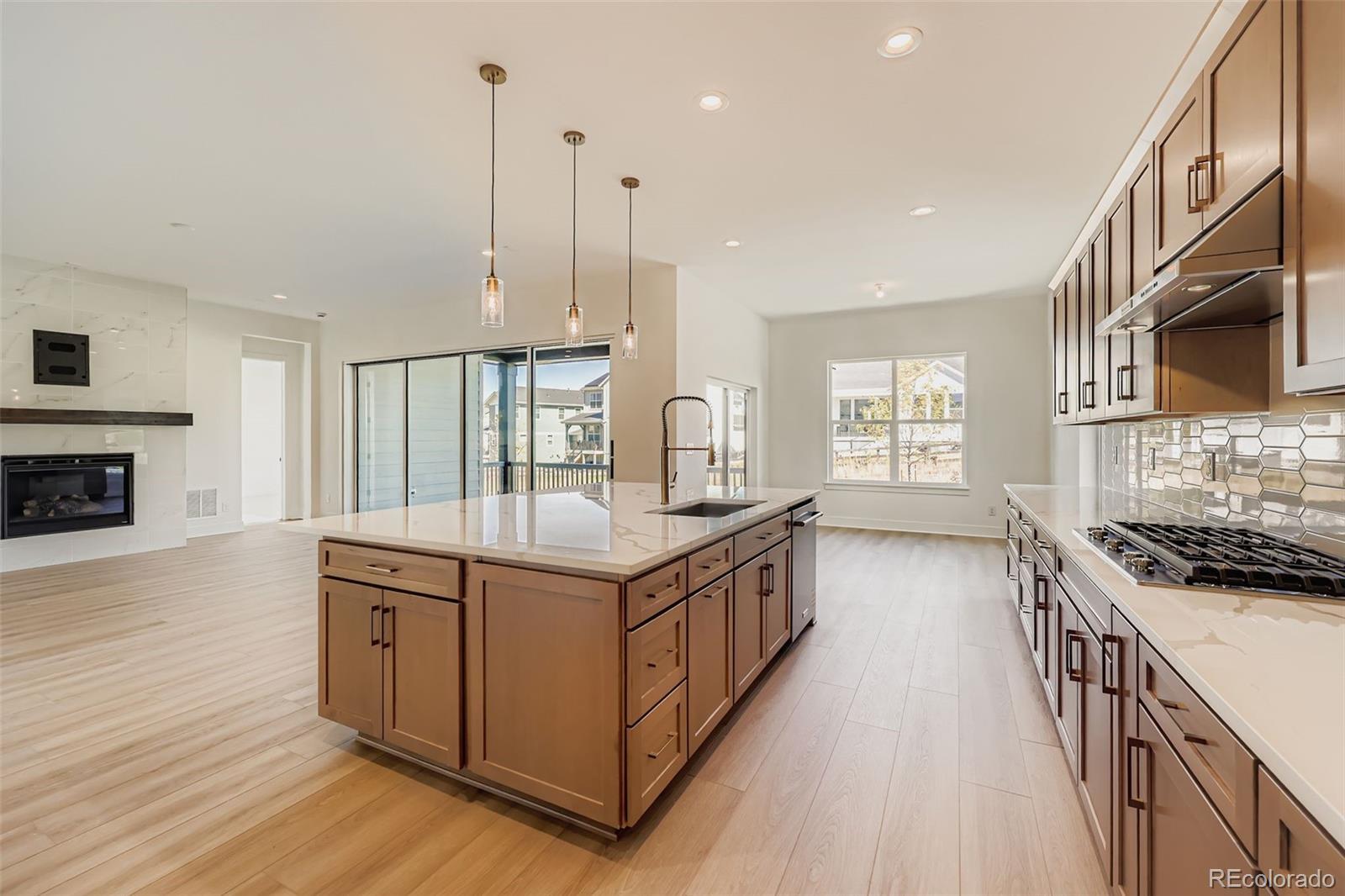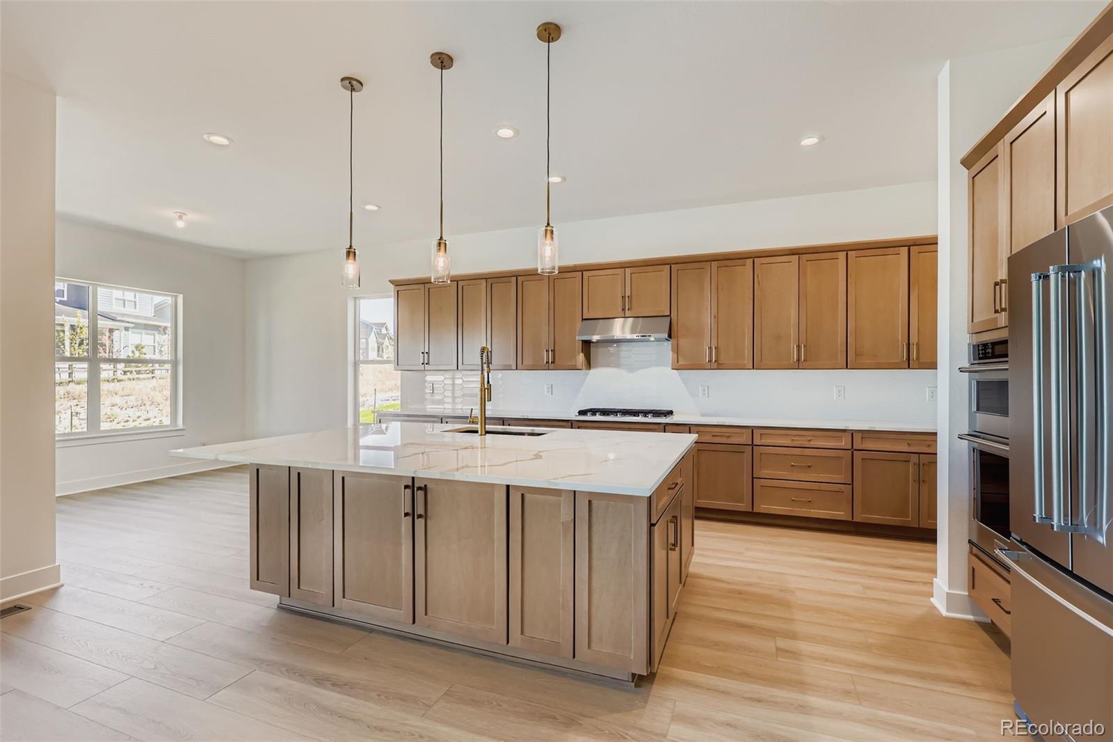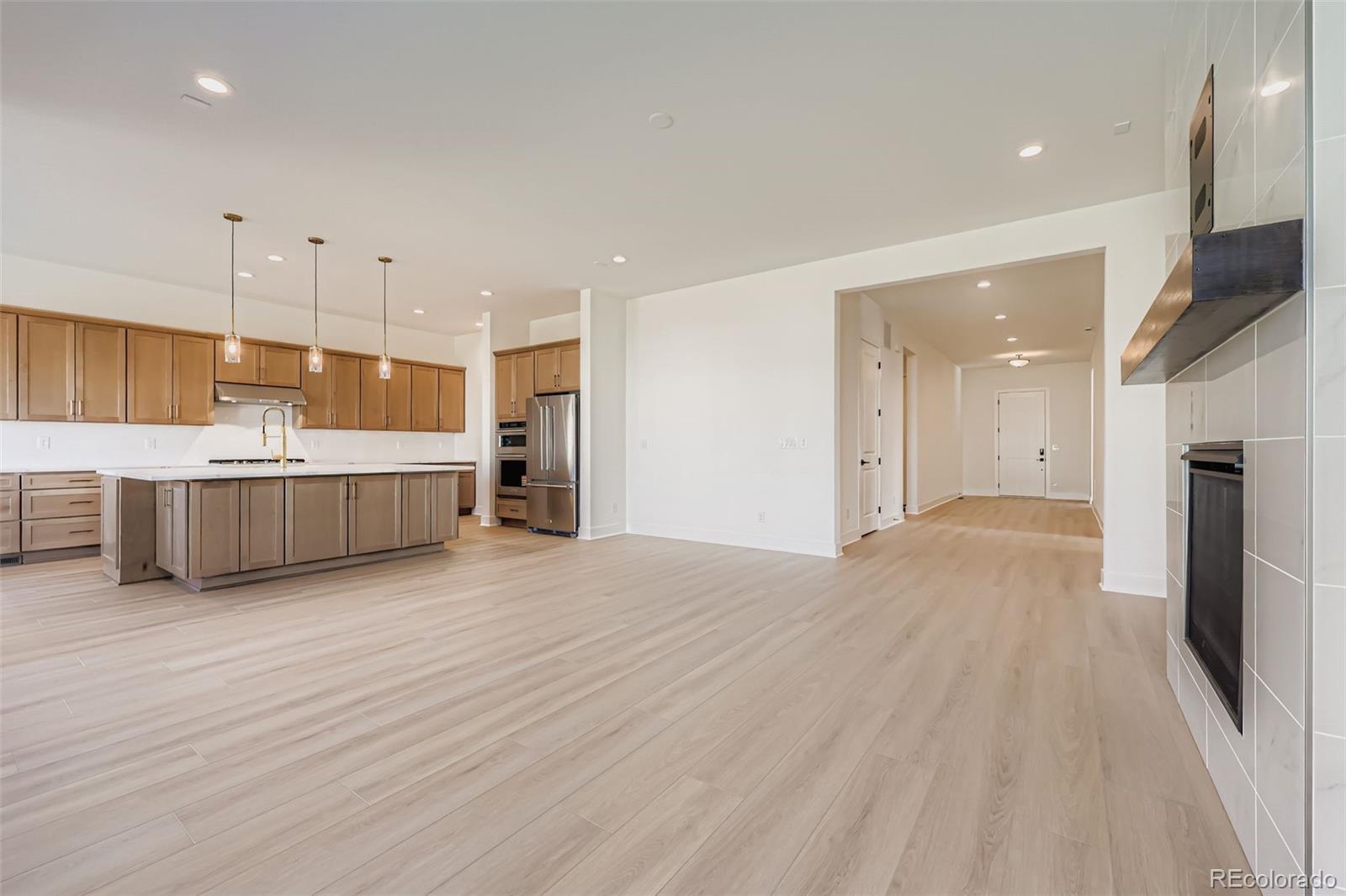A New Toll Brother's Pearl Farmhouse is move-in ready! A lovely ranch style home is situated within walking distance to the Montaine clubhouse. This home has 10' ceilings throughout the main floor. The beautiful kitchen has Biscotti-colored maple-stained cabinets and KitchenAid appliances including a 5-burner cooktop and refrigerator. Entertaining is seamless with the oversized White Quartz island and the multi-stacking slider that leads out onto the extended covered patio. Relax in the Primary spa-like bathroom with a free-standing tub and luxury shower with frameless glass. One of the last few homes to complete the street! Make this home yours today.