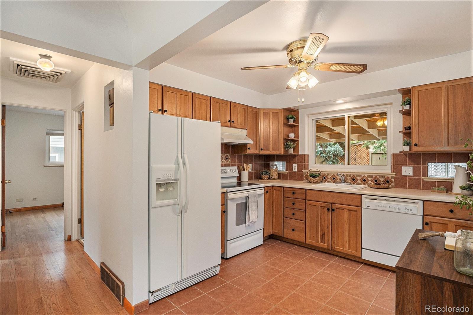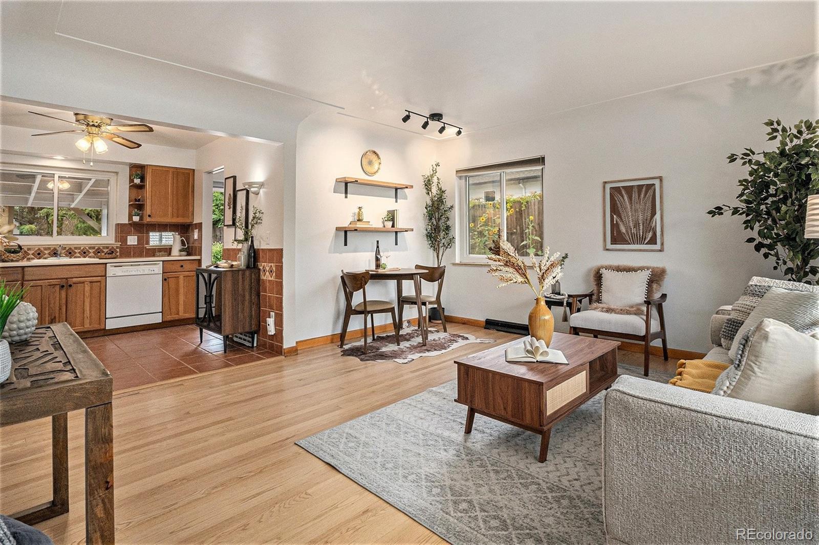 Light pours through updated windows, warming this west-facing 2 bed, 1 bath ranch with a clean, polished feel throughout. The layout flows effortlessly from living to kitchen, grounded by refinished natural wood floors (2023) and fresh paint (2024). The bathroom was recently modernized with new flooring and a sleek vanity (2025), while big-ticket items are already done: including a new roof (2024), updated electrical panel with whole-house GFCI protection (2023), clean sewer line (2025), and upgraded landscaping front and back (2024). Raised planter boxes bring a modern touch to the backyard, alongside alley access, RV parking, and a spacious garage/workshop. Zoned for an ADU, this lot brings both everyday comfort and long-term opportunity. Minutes to downtown Littleton, light rail, Pirate’s Cove, and Cornerstone Park.