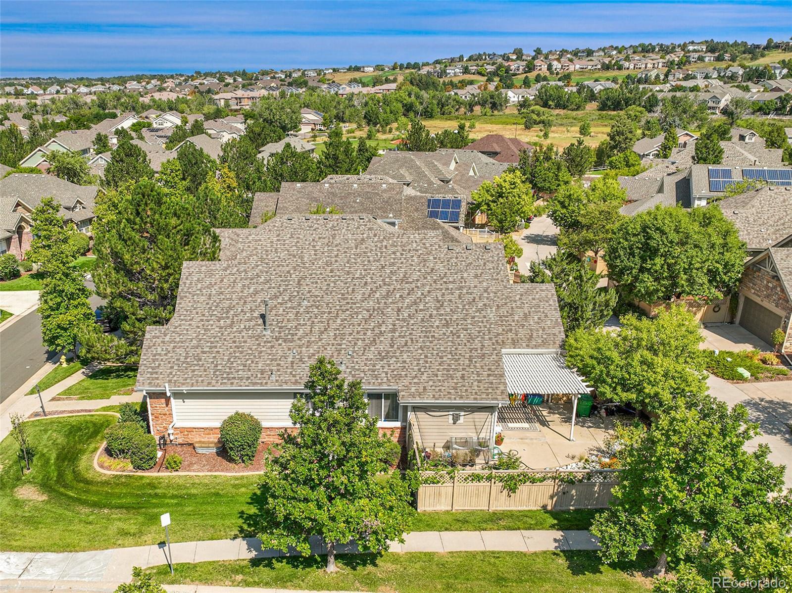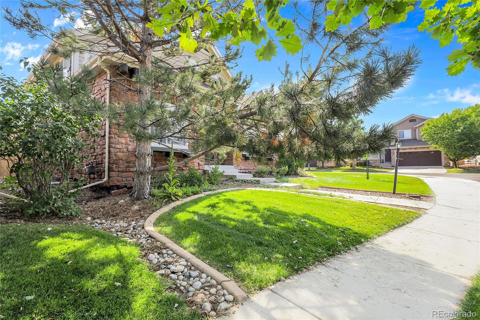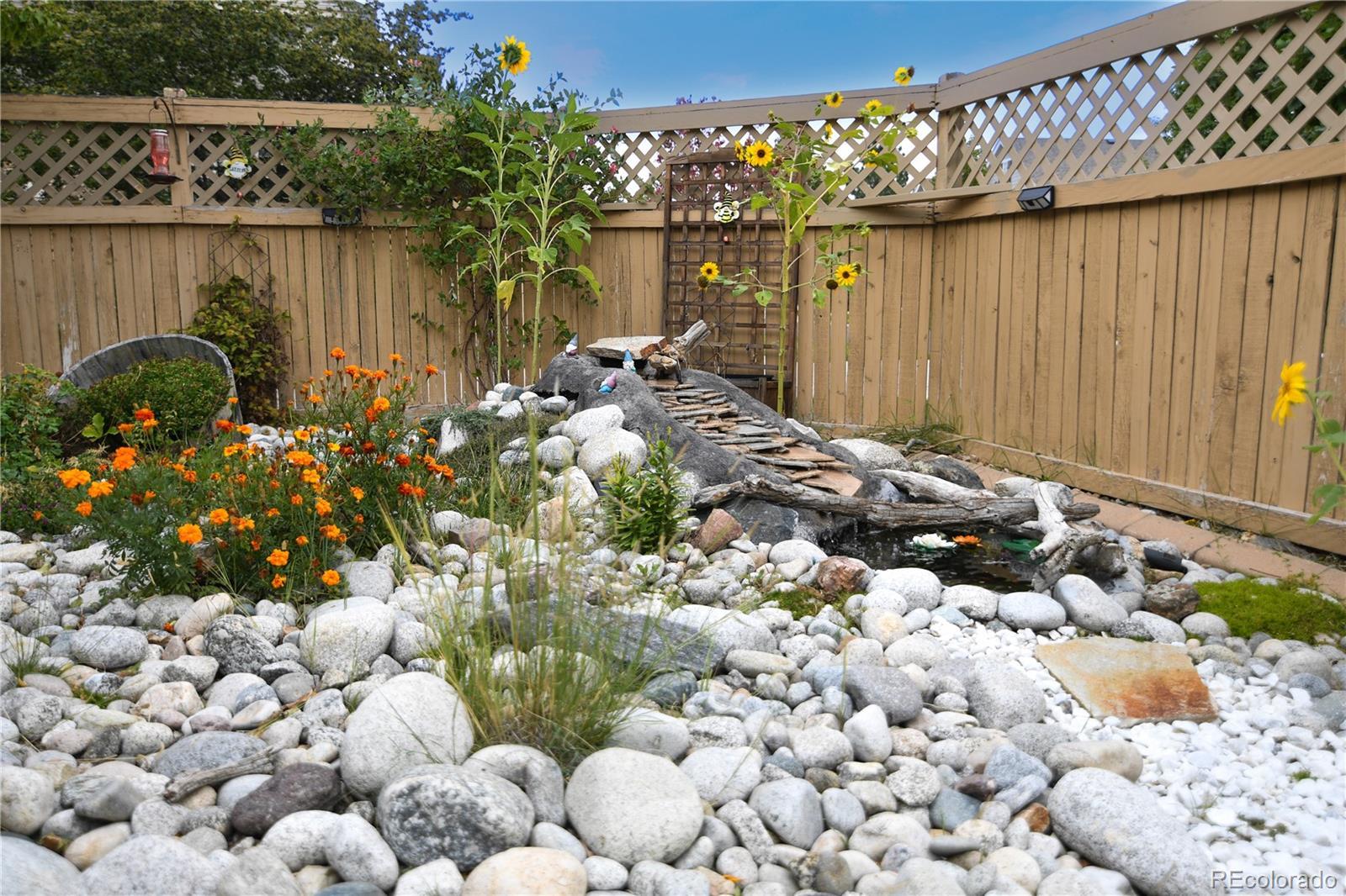 Welcome to this exceptional Saddle Rock residence, where comfort meets timeless style. This beautifully maintained two-story home features a bright, open floor plan with soaring vaulted ceilings and elegant living spaces designed for both relaxation and entertaining. Just off the entry, a spacious French-door office provides the perfect work-from-home retreat. The main-floor primary suite feels like a private sanctuary, featuring a serene layout and customizable storage — the IKEA closet system can easily be removed if one walk-in closet is preferred. The chef-inspired kitchen showcases extended cabinetry, stainless steel appliances, and a sunny breakfast nook that opens to the inviting living room. Tall windows fill the space with natural light and lead to a private patio overlooking a peaceful backyard oasis complete with a cascading waterfall and koi pond — a tranquil escape perfect for morning coffee, outdoor dining, or quiet evenings surrounded by nature. The xeriscaped landscaping ensures year-round beauty with minimal upkeep, while the HOA maintains the front and side lawns, allowing you to spend more time enjoying the neighborhood. A two-car garage and main-floor laundry add everyday convenience. Upstairs, two bedrooms and a full bath create a private retreat for family or guests. The finished basement expands the living space with two additional bedrooms, a 3/4 bath, and a large family room — ideal for movie nights, hobbies, or hosting visitors. Recent updates include a brand-new roof (2025, transferable warranty), furnace (2022), water heater (2021), appliances (2021), washer/dryer (2019), and radon system (2019). Move-in ready and located in one of Saddle Rock’s most sought-after communities, this home combines low-maintenance living, serene outdoor spaces, and an unbeatable location — the perfect blend of comfort, convenience, and charm.