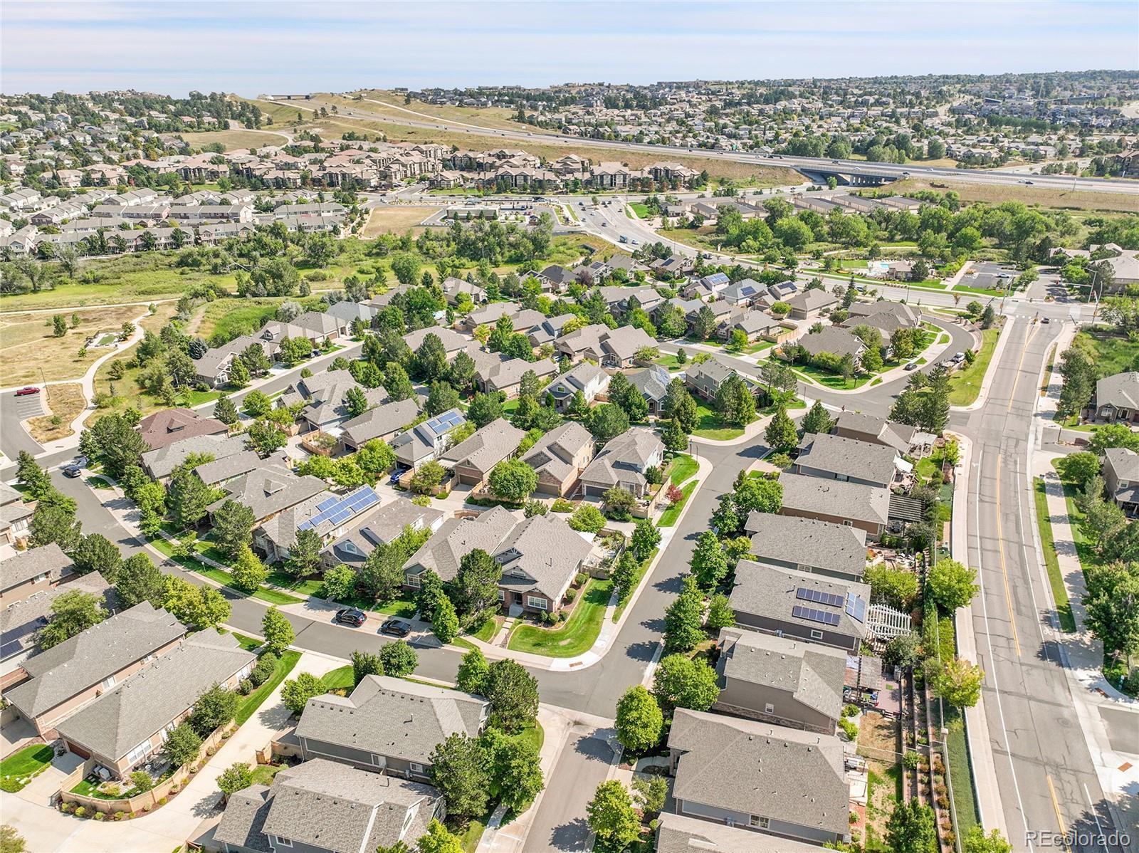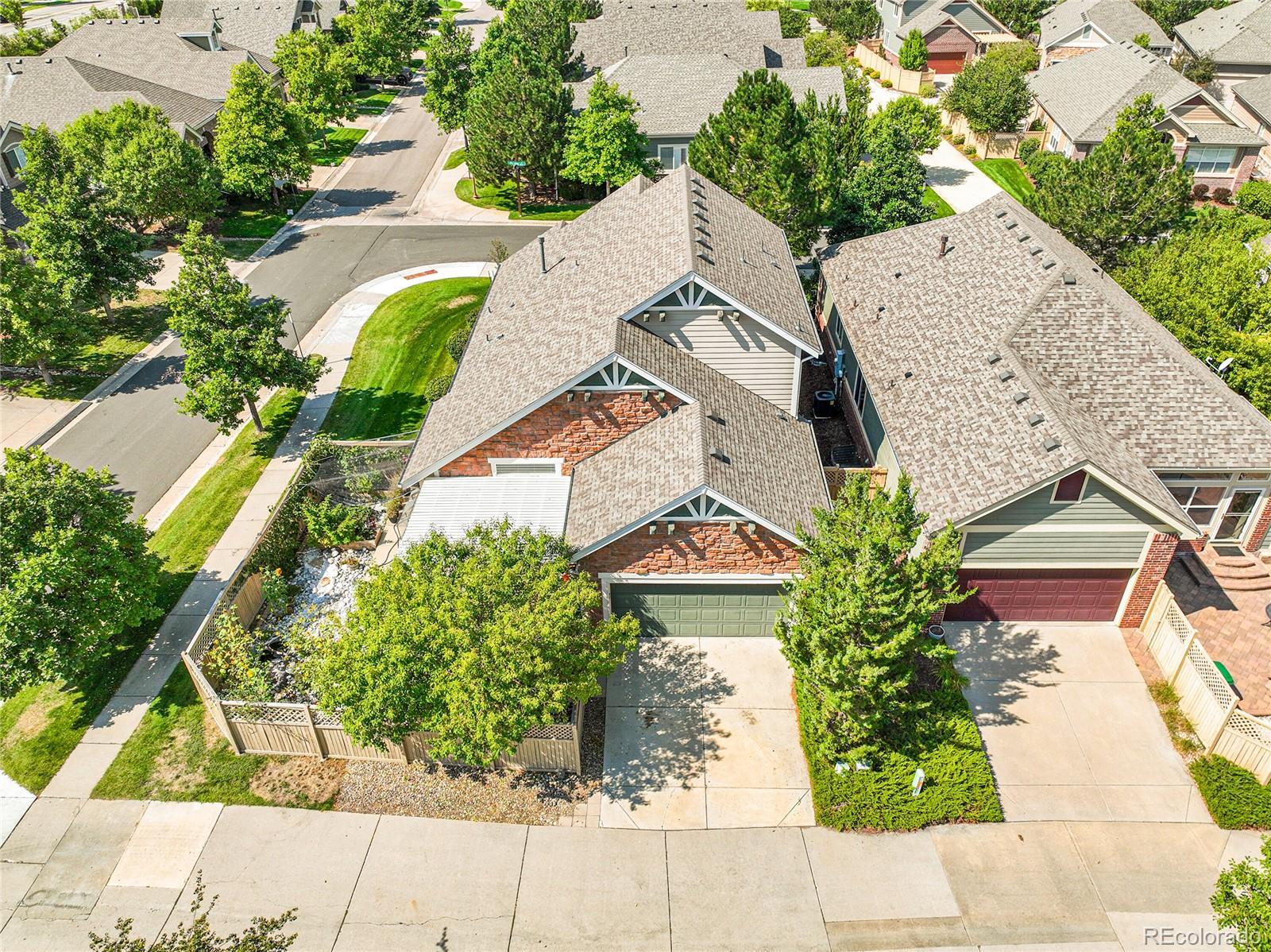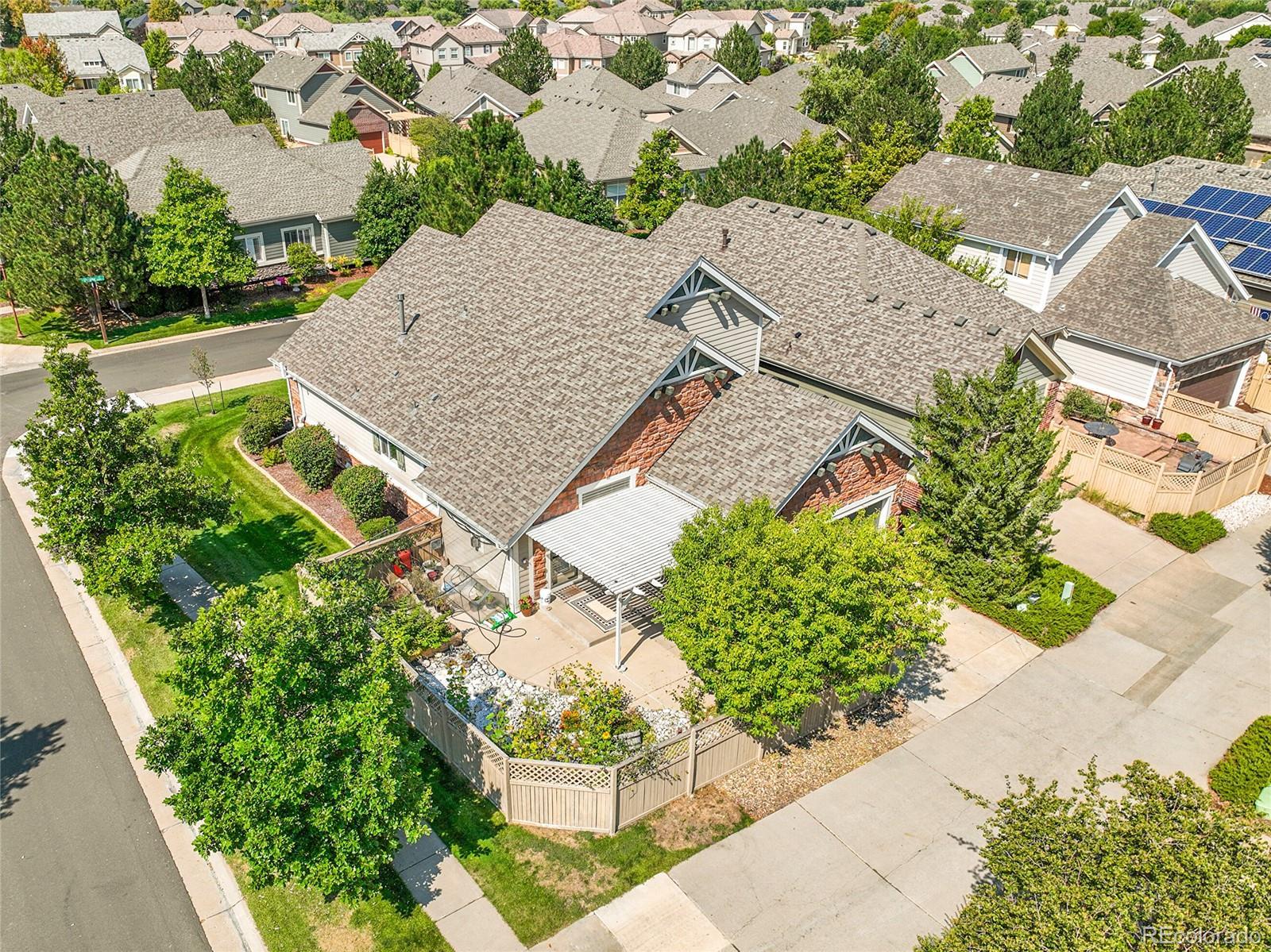 Welcome to this exceptional Saddle Rock residence, where comfort meets timeless style. This beautifully maintained two-story home features a bright, open floor plan with soaring vaulted ceilings and elegant living spaces designed for both relaxation and entertaining. Just off the entry, a spacious French-door office provides the perfect work-from-home retreat. The main-floor primary suite feels like a private sanctuary, featuring a serene layout and customizable storage — the IKEA closet system can easily be removed if one walk-in closet is preferred. The chef-inspired kitchen showcases extended cabinetry, stainless steel appliances, and a sunny breakfast nook that opens to the inviting living room. Tall windows fill the space with natural light and lead to a private patio overlooking a peaceful backyard oasis complete with a cascading waterfall and koi pond — a tranquil escape perfect for morning coffee, outdoor dining, or quiet evenings surrounded by nature. The xeriscaped landscaping ensures year-round beauty with minimal upkeep, while the HOA maintains the front and side lawns, allowing you to spend more time enjoying the neighborhood. A two-car garage and main-floor laundry add everyday convenience. Upstairs, two bedrooms and a full bath create a private retreat for family or guests. The finished basement expands the living space with two additional bedrooms, a 3/4 bath, and a large family room — ideal for movie nights, hobbies, or hosting visitors. Recent updates include a brand-new roof (2025, transferable warranty), furnace (2022), water heater (2021), appliances (2021), washer/dryer (2019), and radon system (2019). Move-in ready and located in one of Saddle Rock’s most sought-after communities, this home combines low-maintenance living, serene outdoor spaces, and an unbeatable location — the perfect blend of comfort, convenience, and charm.